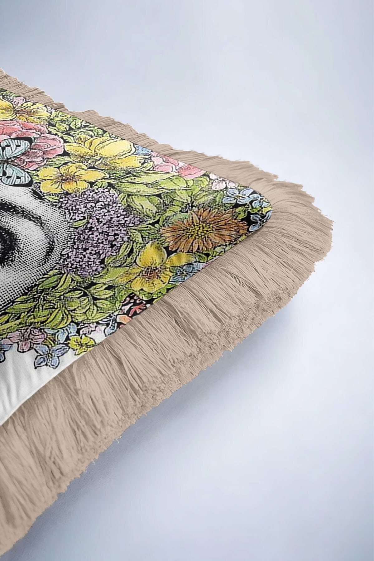Sanatsal Portre Saçaklı Yastık Kılıfı - Çiçekli Vintage Bohem Renkli Püsküllü Kırlent Kılıfı Sanatsal Portre Saçaklı Yastık Kılıfı - Çiçekli Vintage Bohem Renkli Püsküllü Kırlent Kılıfı GRS60 40 x 40