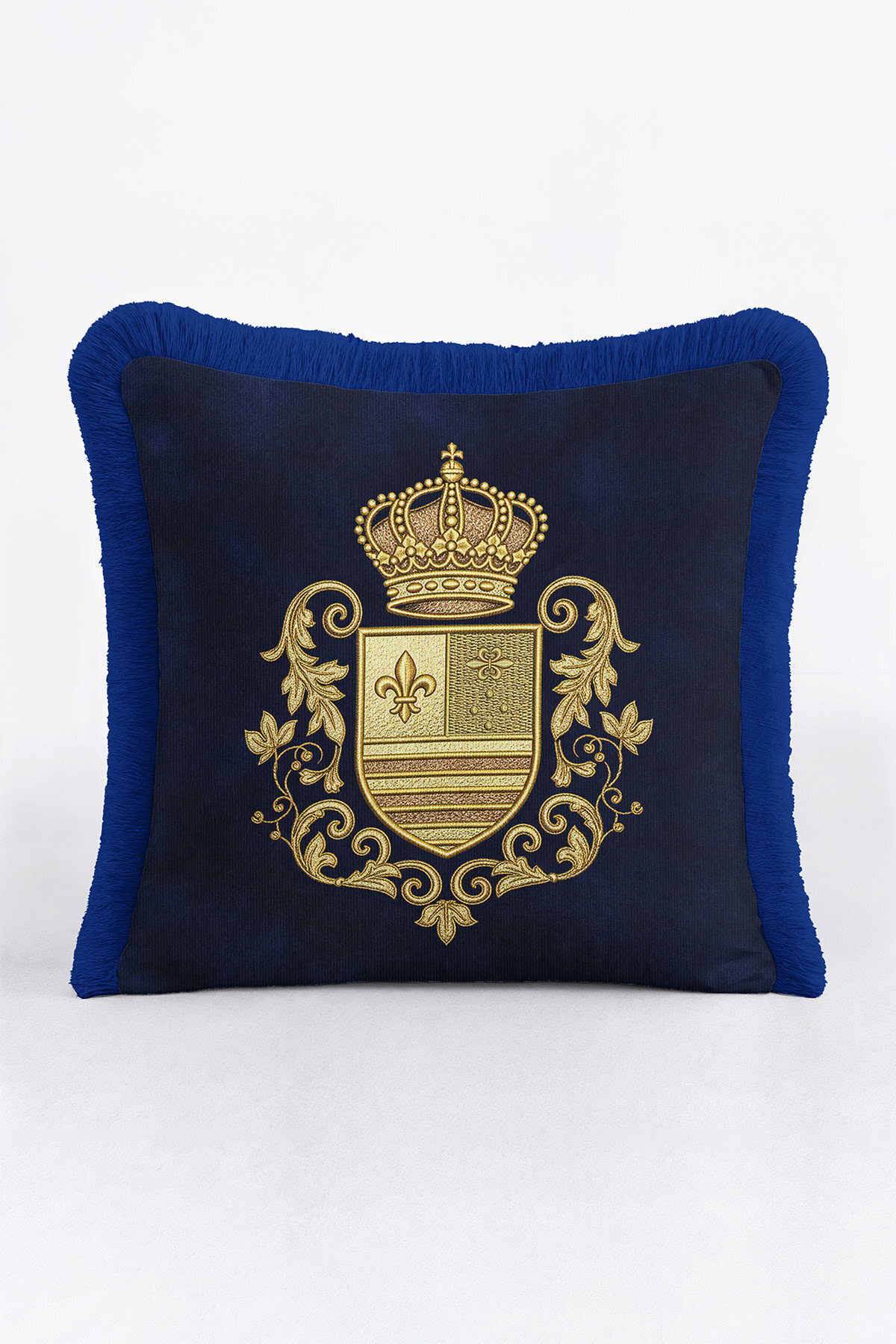 Asil Saray Armalı Lüx Saçaklı Yastık Kılıfı-Mavi Barok Salon Klasik Püsküllü Kırlent Kılıfı Asil Saray Armalı Lüx Saçaklı Yastık Kılıfı-Mavi Barok Salon Klasik Püsküllü Kırlent Kılıfı GRS24 40 x 40