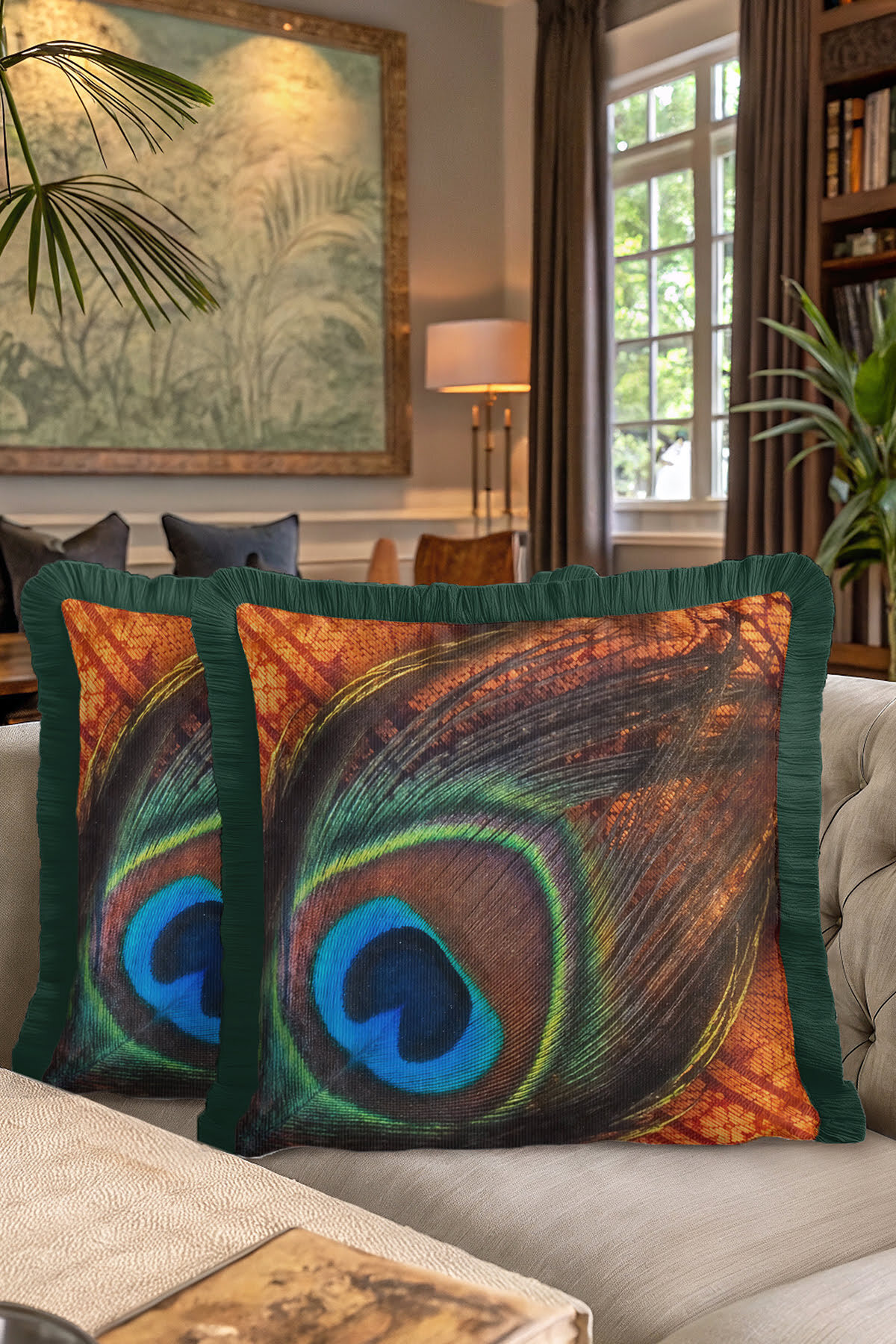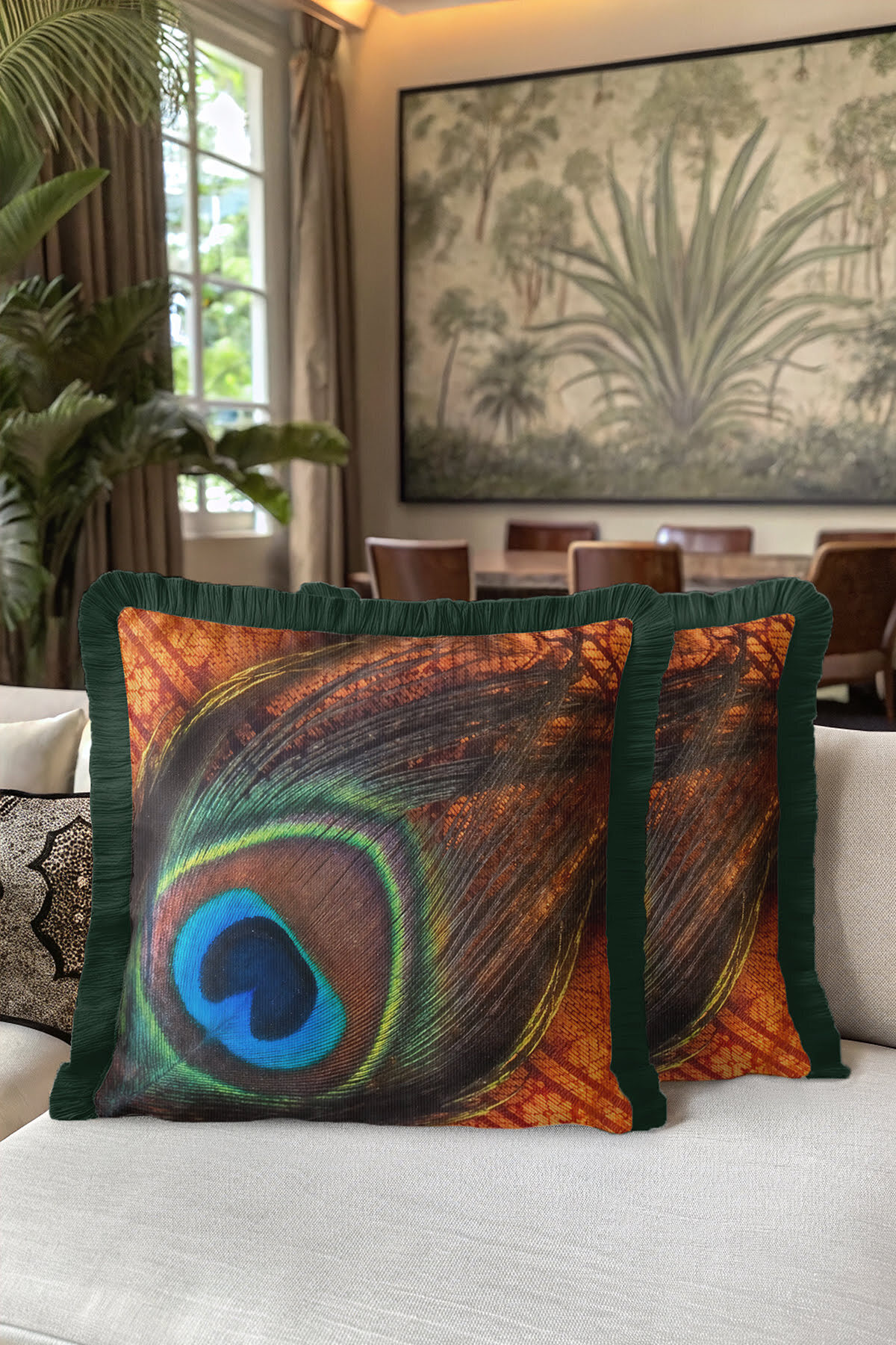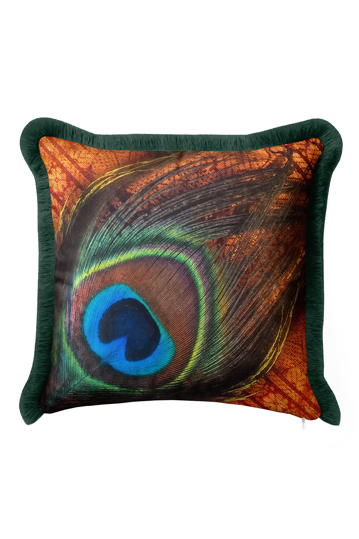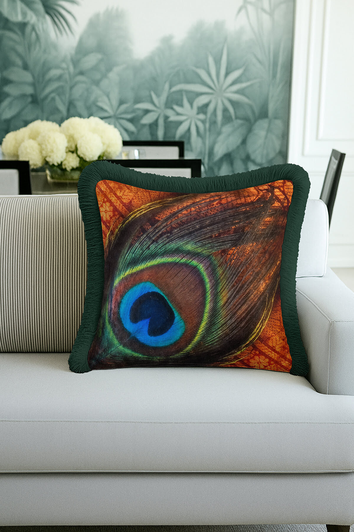 Göz Alıcı Tavuskuşu Tüyü Saçaklı Yastık Kılıfı - Bohem Zarif Yeşil Turuncu Püsküllü Kırlent Kılıfı Göz Alıcı Tavuskuşu Tüyü Saçaklı Yastık Kılıfı - Bohem Zarif Yeşil Turuncu Püsküllü Kırlent Kılıfı GRS30 40 x 40