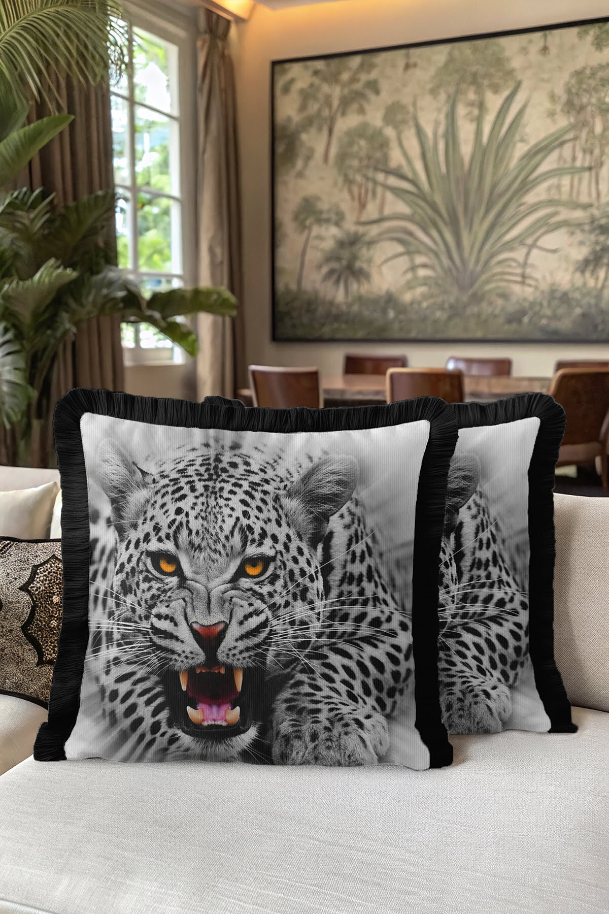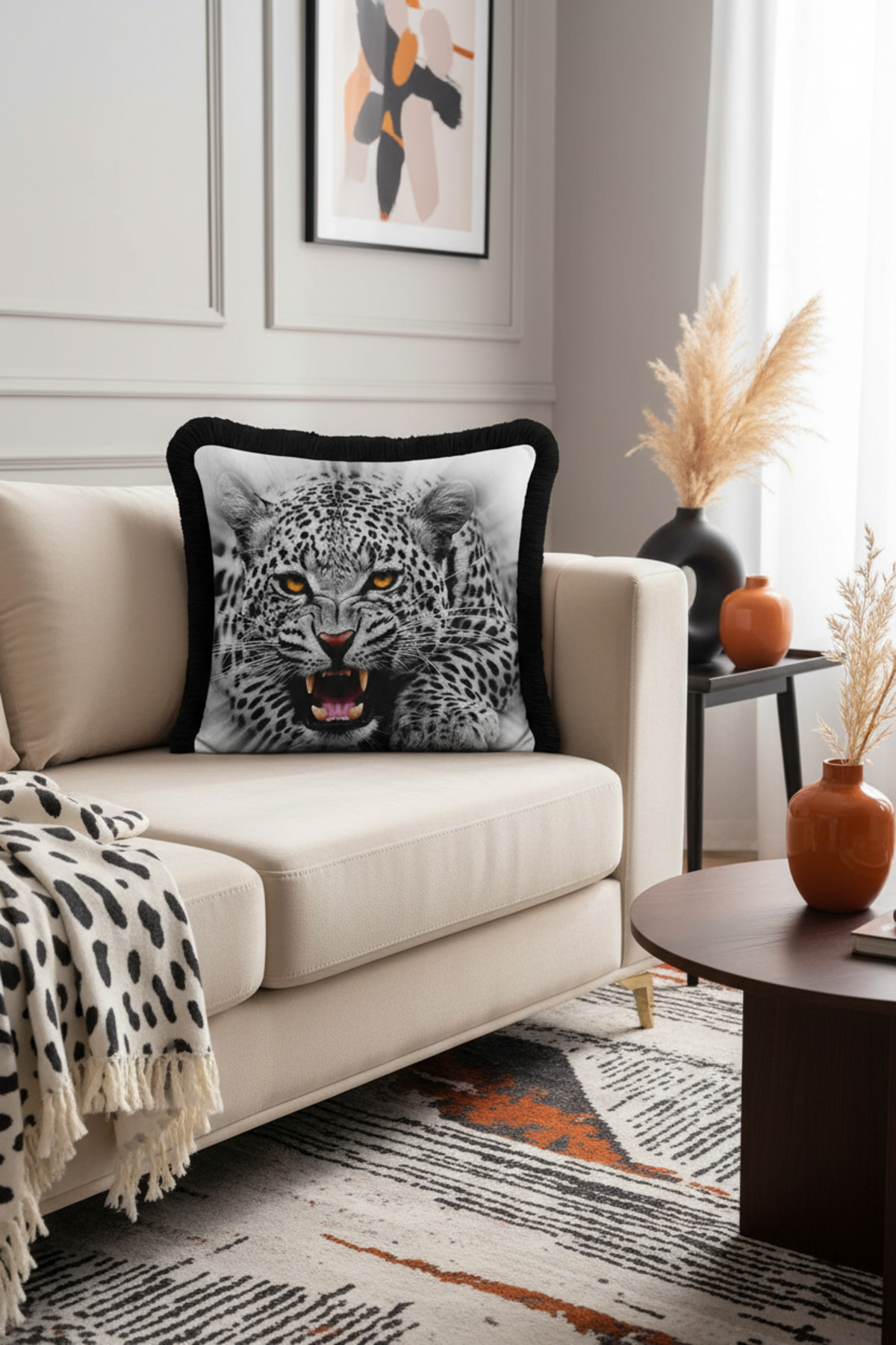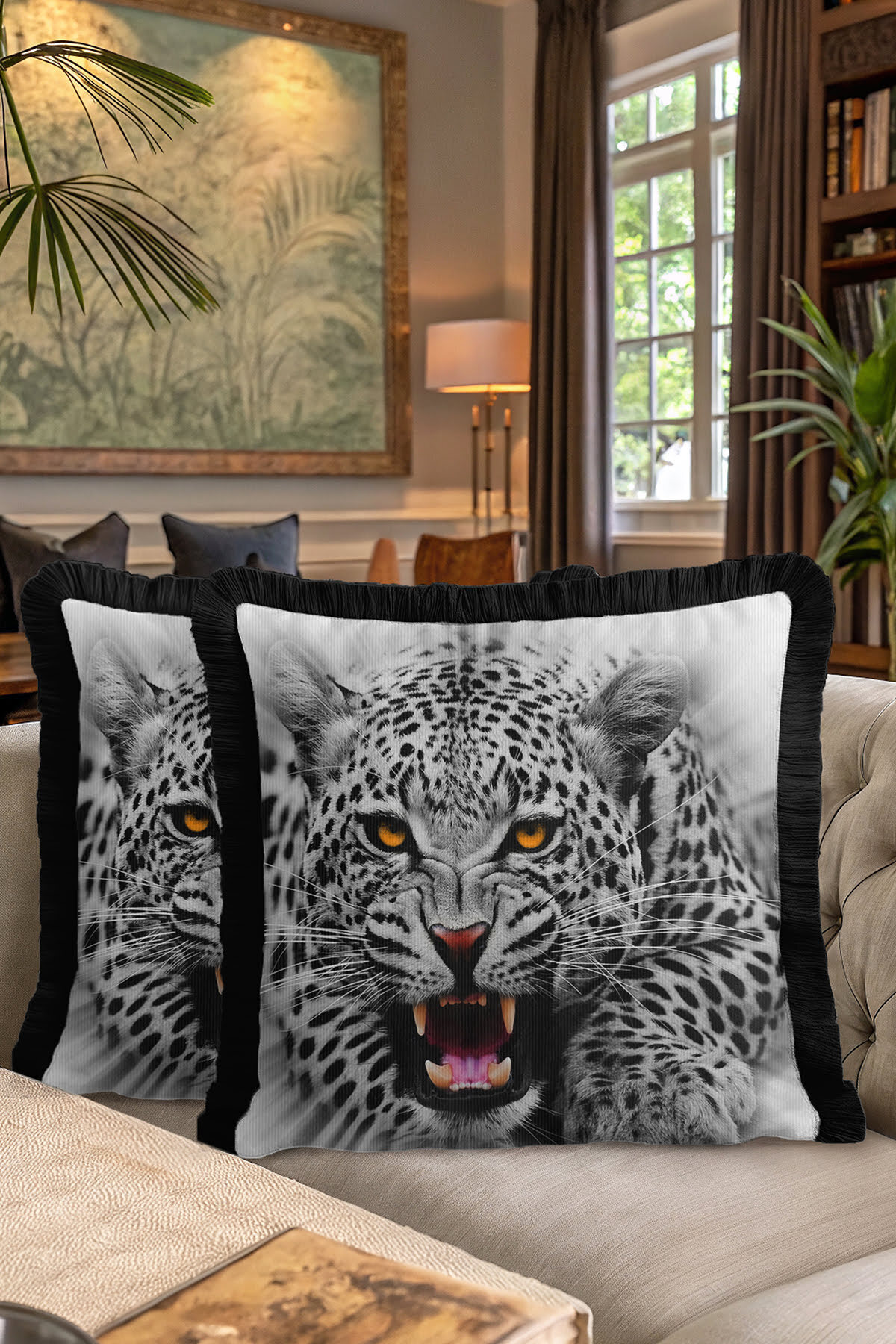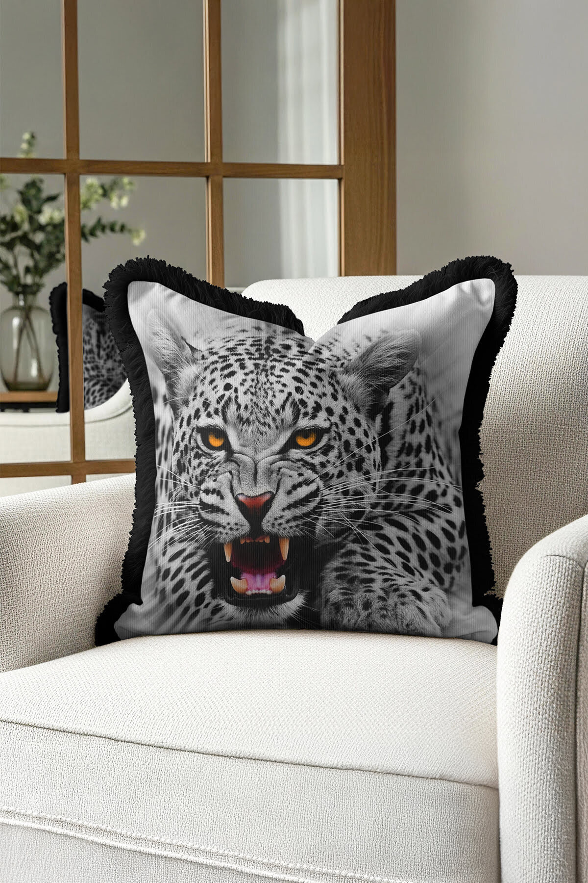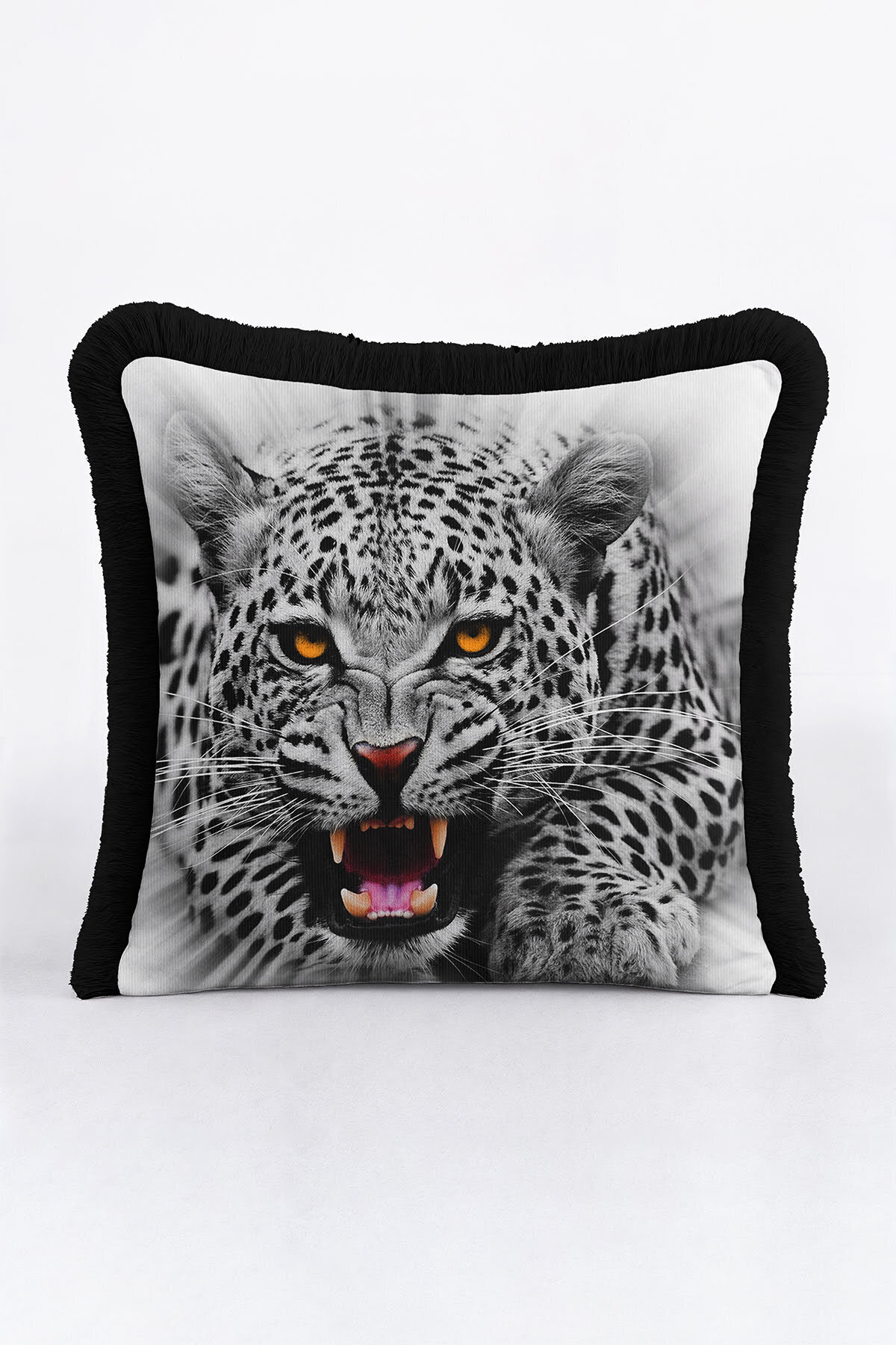 Vahşi Asil Leopar Saçaklı Yastık Kılıfı-Asalet Siyah Gri Modern Altın Renkli Püsküllü Kırlent Kılıfı Vahşi Asil Leopar Saçaklı Yastık Kılıfı-Asalet Siyah Gri Modern Altın Renkli Püsküllü Kırlent Kılıfı GRS12 40 x 40