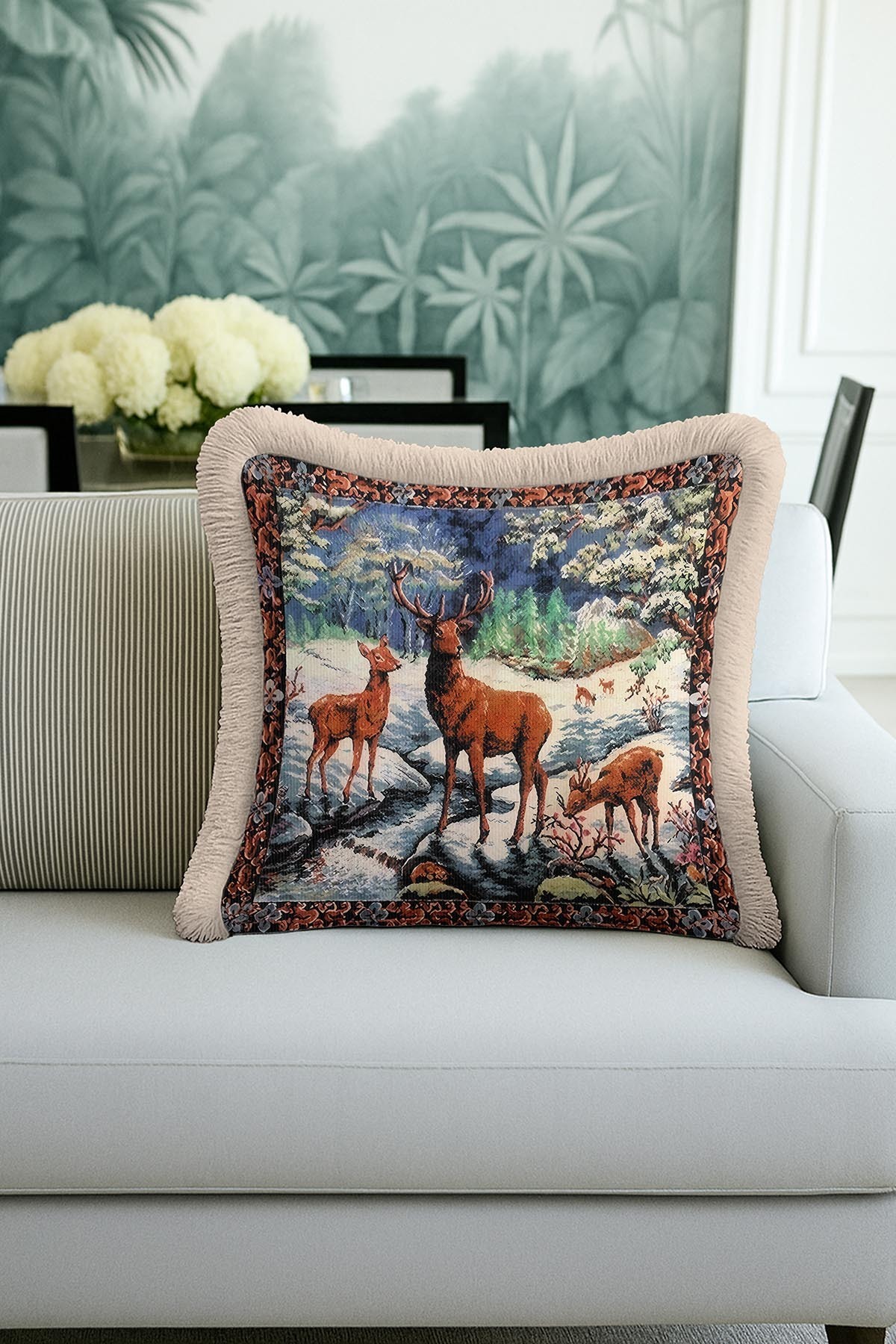 Vintage Orman Manzaralı Saçaklı Yastık Kılıfı - Doğal Vahşi Yaşam Rustik Püsküllü Kırlent Kılıfı Vintage Orman Manzaralı Saçaklı Yastık Kılıfı - Doğal Vahşi Yaşam Rustik Püsküllü Kırlent Kılıfı GRS51 40 x 40