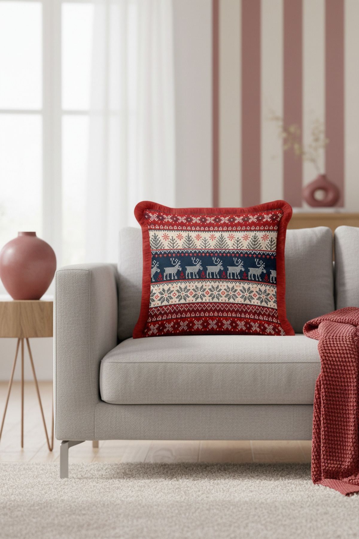 Nordik Geyikli Saçaklı Yastık Kılıfı - Kış Noel Temalı Retro Yeşil Kırmızı Püsküllü Kırlent Kılıfı Nordik Geyikli Saçaklı Yastık Kılıfı - Kış Noel Temalı Retro Yeşil Kırmızı Püsküllü Kırlent Kılıfı GRS54 40 x 40