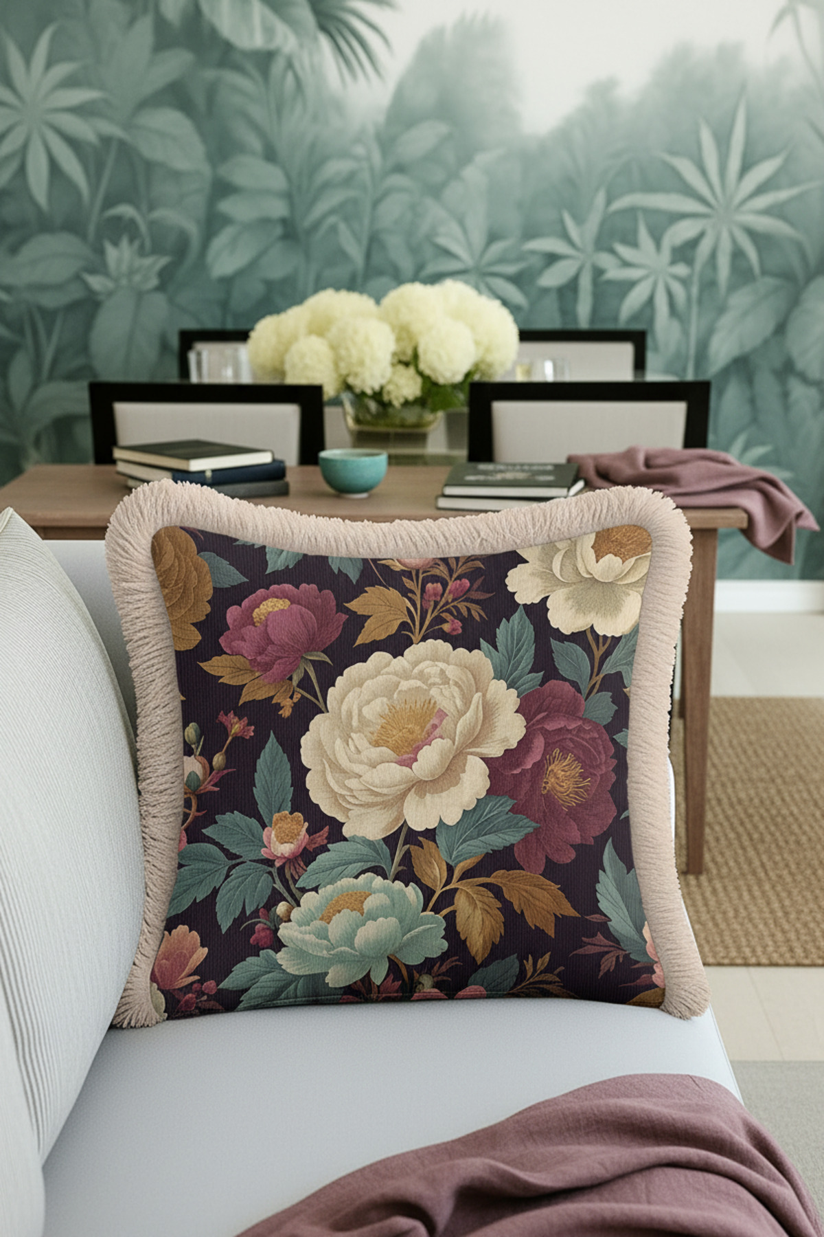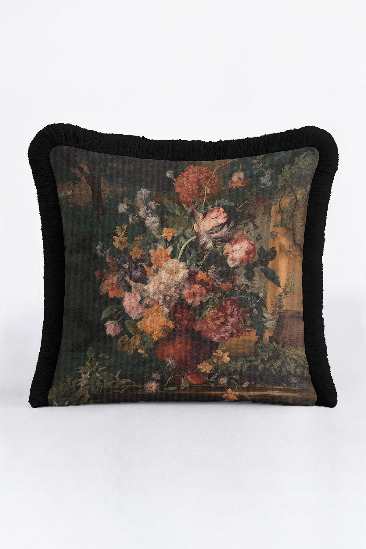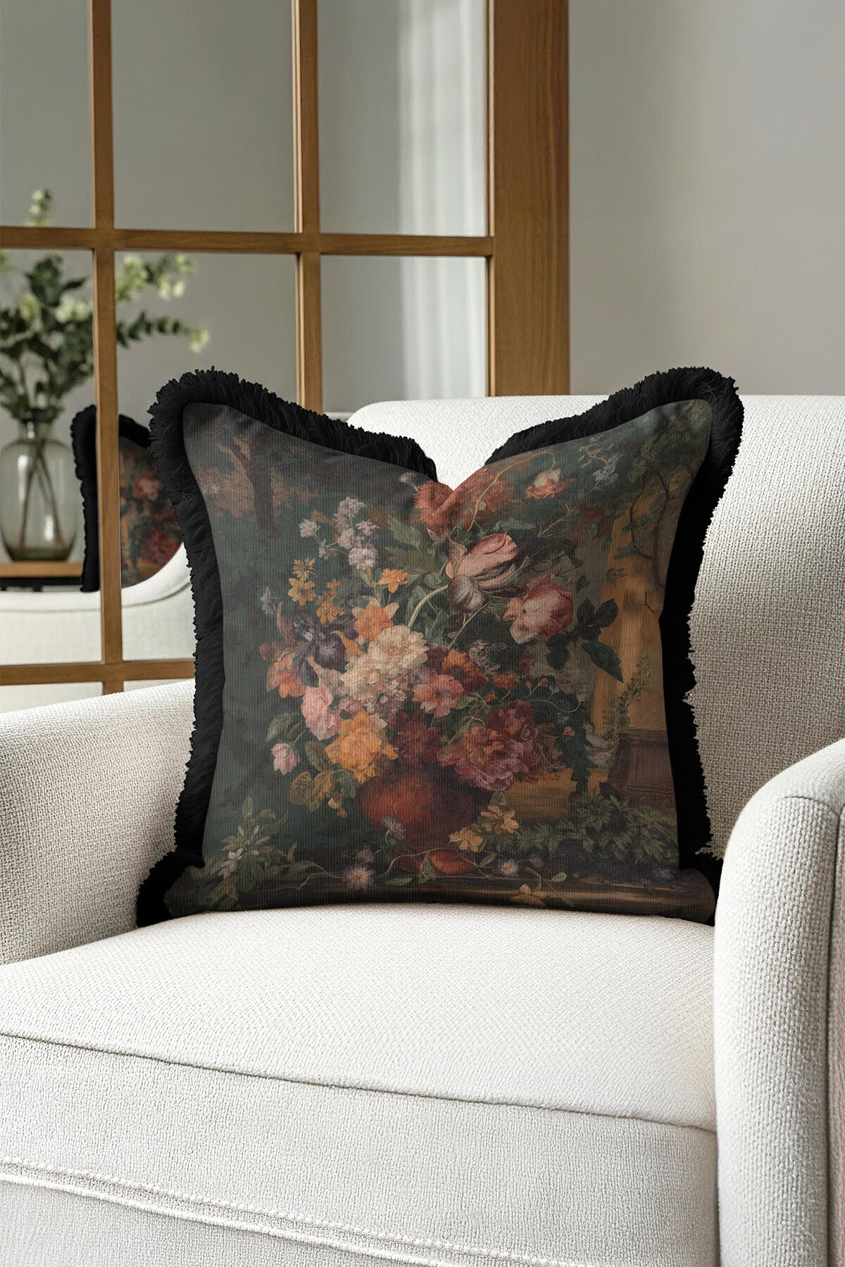Barok Çiçek Bahçesi Lüx Saçaklı Yastık Kılıfı-Bahçe Nostaljik Yeşil Siyah Püsküllü Kırlent Kılıfı Barok Çiçek Bahçesi Lüx Saçaklı Yastık Kılıfı-Bahçe Nostaljik Yeşil Siyah Püsküllü Kırlent Kılıfı GRS22 40 x 40