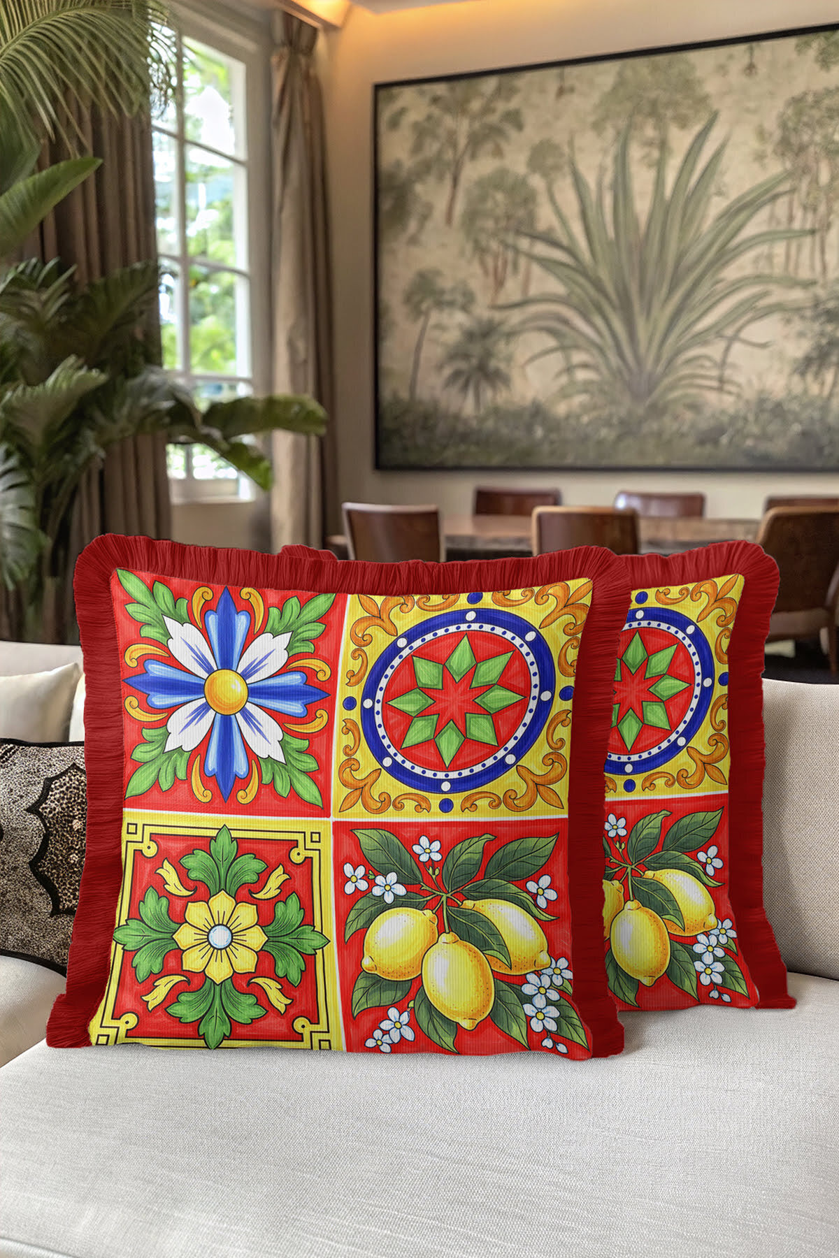 Renkli Akdeniz Lüx Saçaklı Yastık Kılıfı-Limon Çiçek Motifli Retro Kırmızı Püsküllü Kırlent Kılıfı Renkli Akdeniz Lüx Saçaklı Yastık Kılıfı-Limon Çiçek Motifli Retro Kırmızı Püsküllü Kırlent Kılıfı GRS26 40 x 40