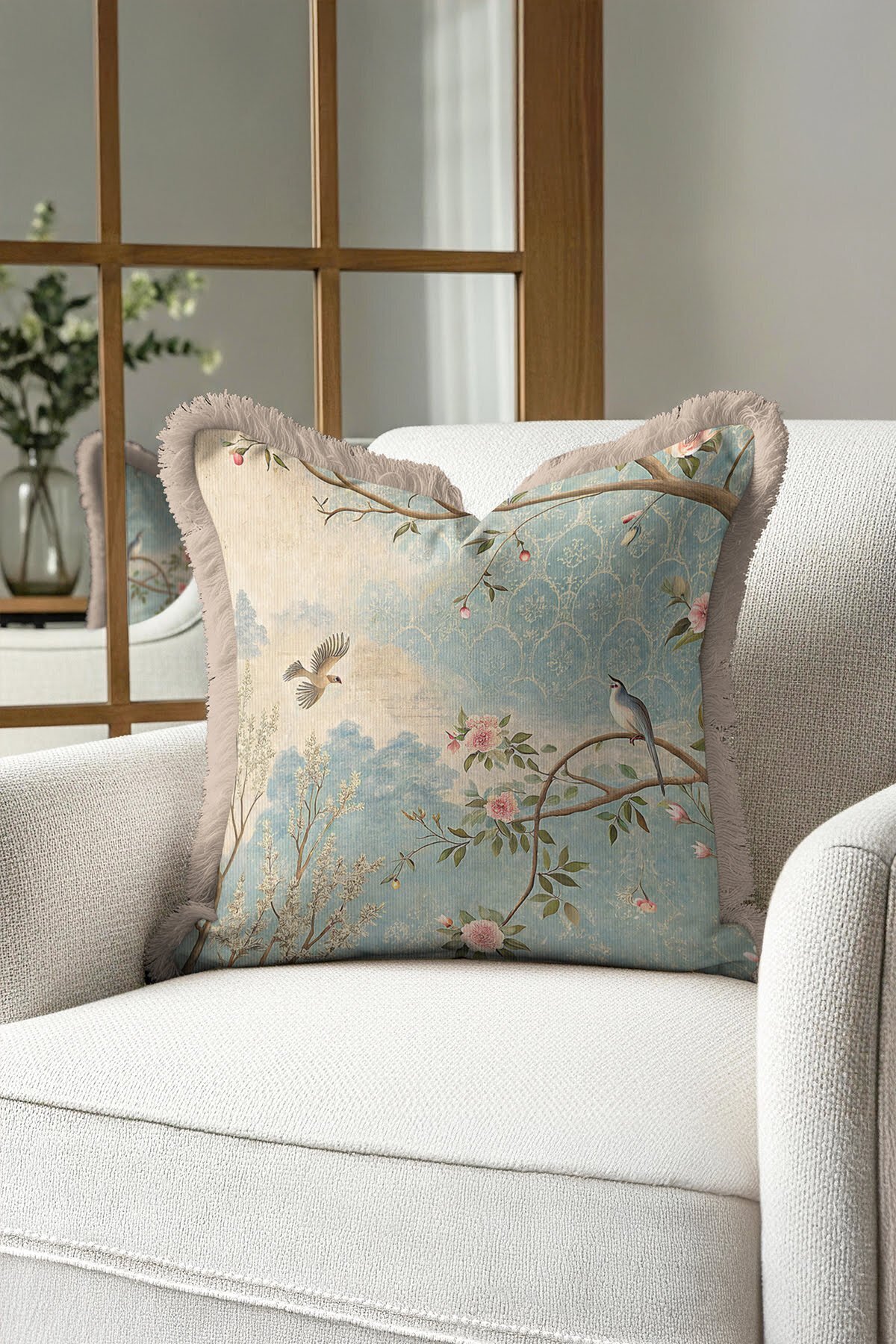 Doğal Zarif Çiçek Motifli Lüx Saçaklı Yastık Kılıfı-Krem Bej Modern Stil Püsküllü Kırlent Kılıfı Doğal Zarif Çiçek Motifli Lüx Saçaklı Yastık Kılıfı-Krem Bej Modern Stil Püsküllü Kırlent Kılıfı GRS19 40 x 40