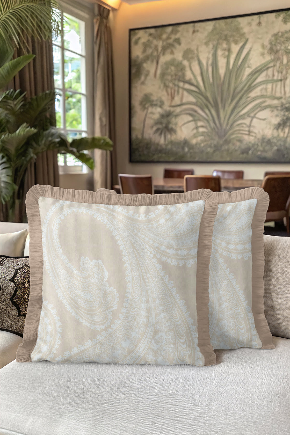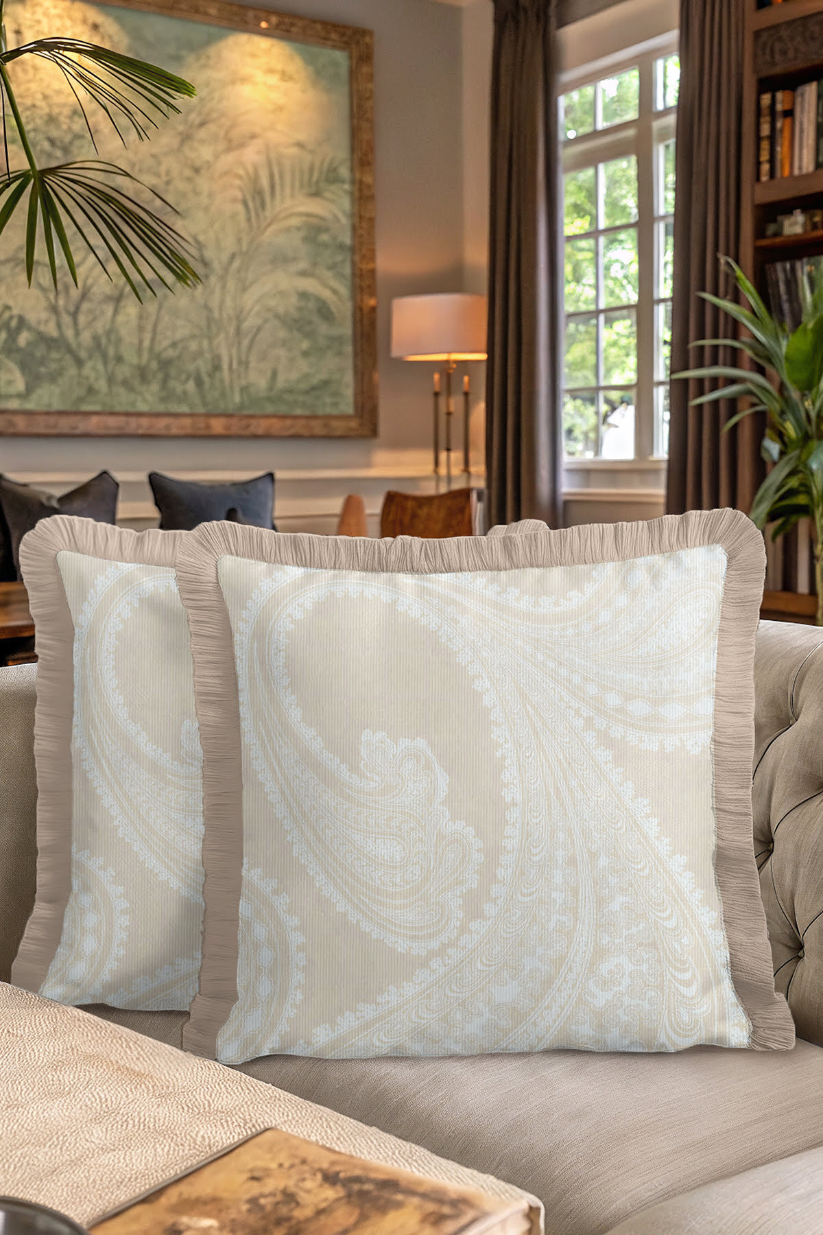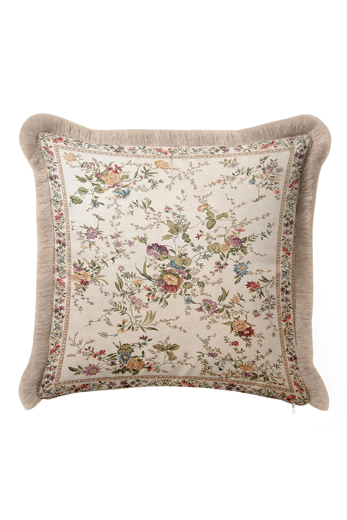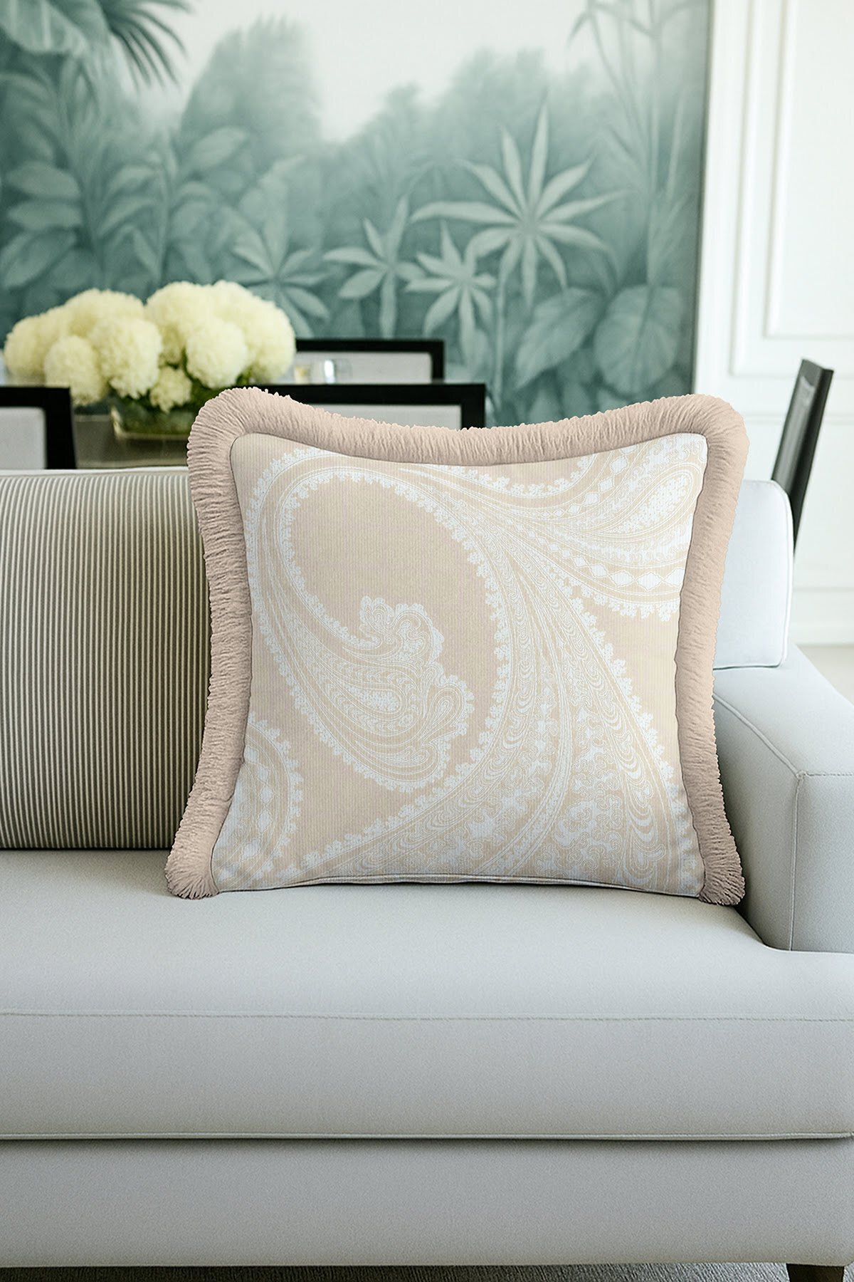 Zarif Damask Motif Lüx Saçaklı Yastık Kılıfı-Krem Bej Altın Renkli Klasik Püsküllü Kırlent Kılıfı Zarif Damask Motif Lüx Saçaklı Yastık Kılıfı-Krem Bej Altın Renkli Klasik Püsküllü Kırlent Kılıfı GRS19 40 x 40