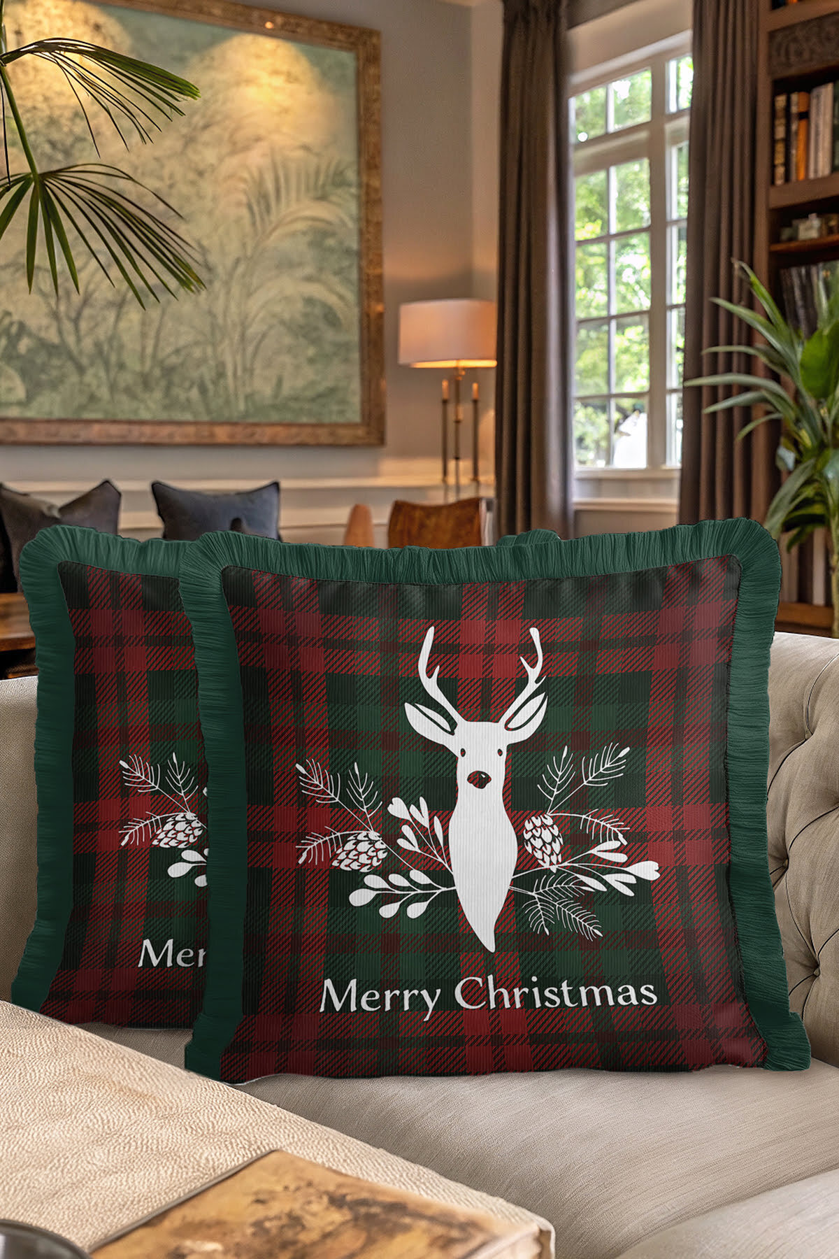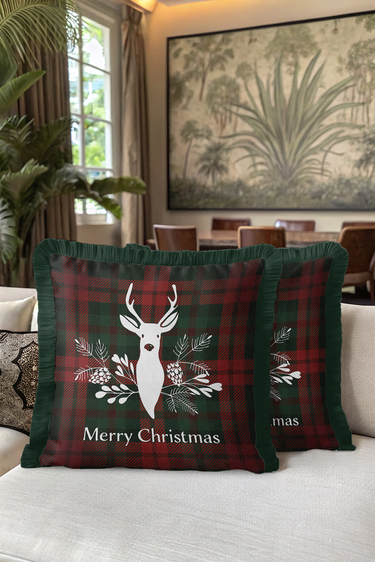 Lüks Ekose Geyik Temalı Saçaklı Yastık Kılıfı - Yılbaşı Rustik Kırmızı Yeşil Püsküllü Kırlent Kılıfı Lüks Ekose Geyik Temalı Saçaklı Yastık Kılıfı - Yılbaşı Rustik Kırmızı Yeşil Püsküllü Kırlent Kılıfı GRS55 40 x 40