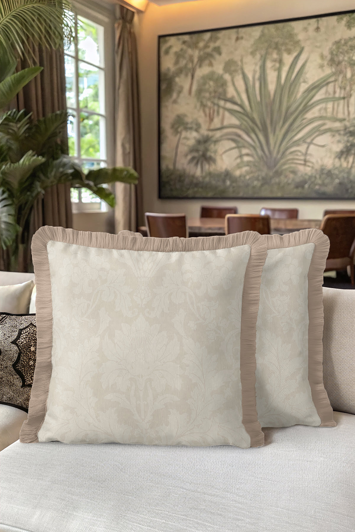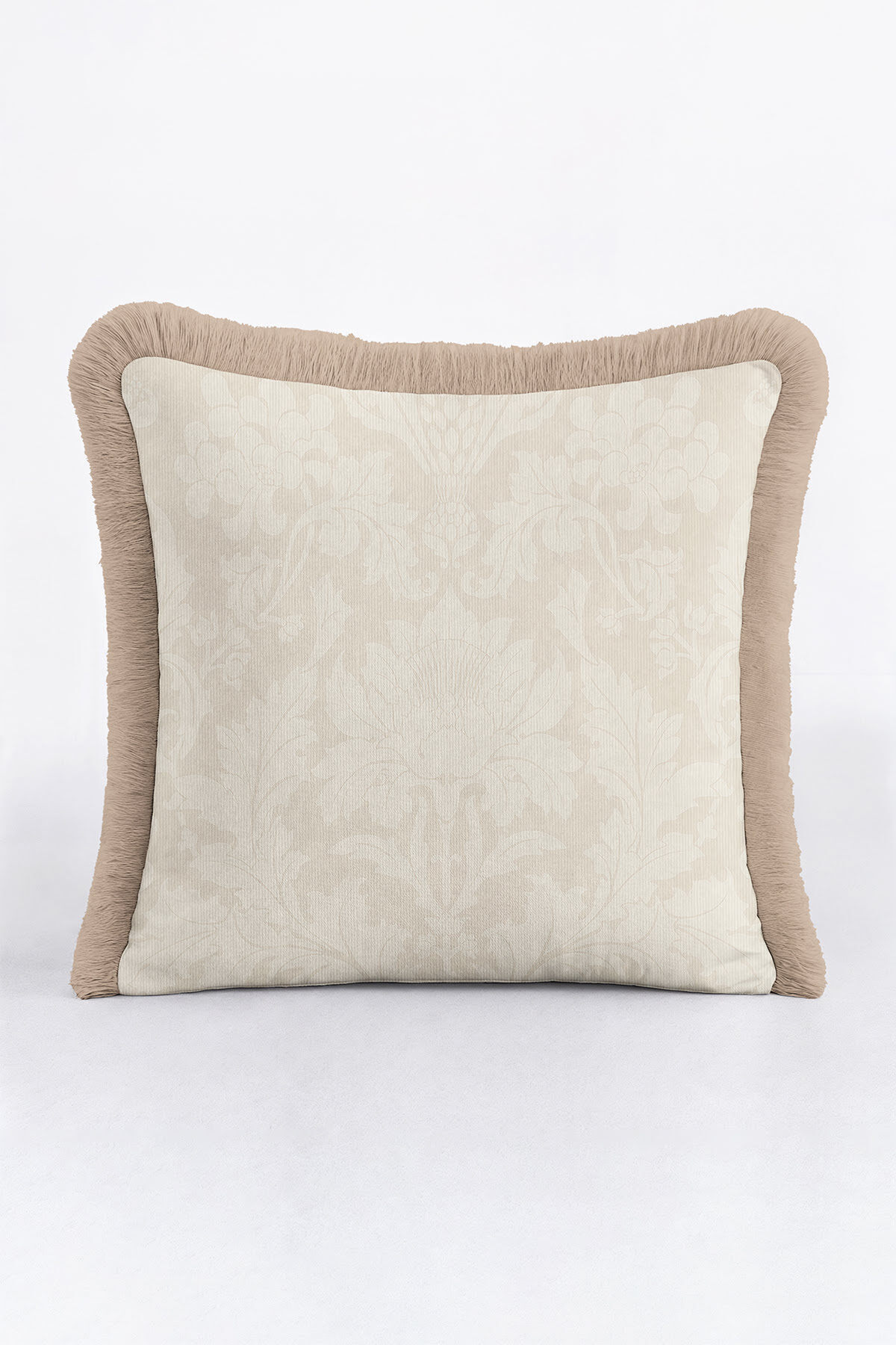 Barok Zarif Lüx Saçaklı Yastık Kılıfı-Krem Çiçek Motifli Klasik Stil Bej Püsküllü Kırlent Kılıfı Barok Zarif Lüx Saçaklı Yastık Kılıfı-Krem Çiçek Motifli Klasik Stil Bej Püsküllü Kırlent Kılıfı GRS19 40 x 40