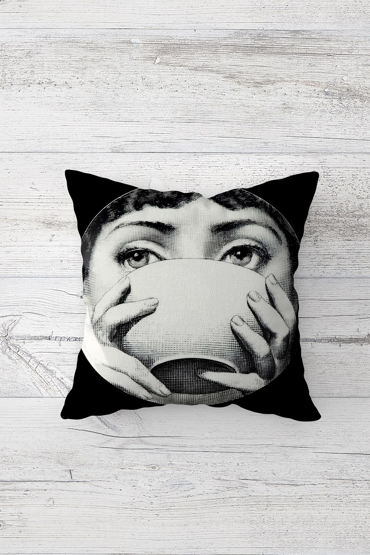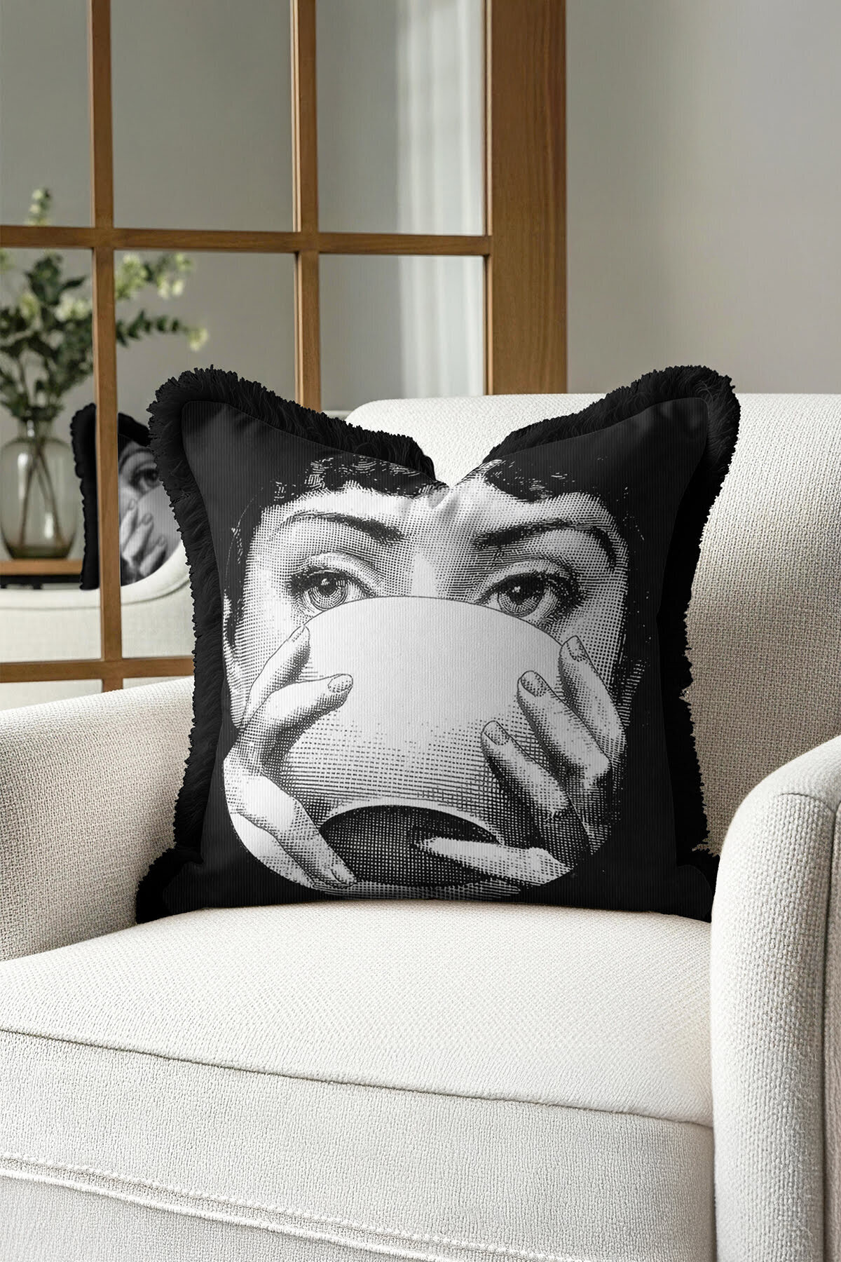 Sürreal Siyah Beyaz Portre Saçaklı Yastık Kılıfı - Sanatsal Retro Monokrom Püsküllü Kırlent Kılıfı Sürreal Siyah Beyaz Portre Saçaklı Yastık Kılıfı - Sanatsal Retro Monokrom Püsküllü Kırlent Kılıfı GRS60 40 x 40