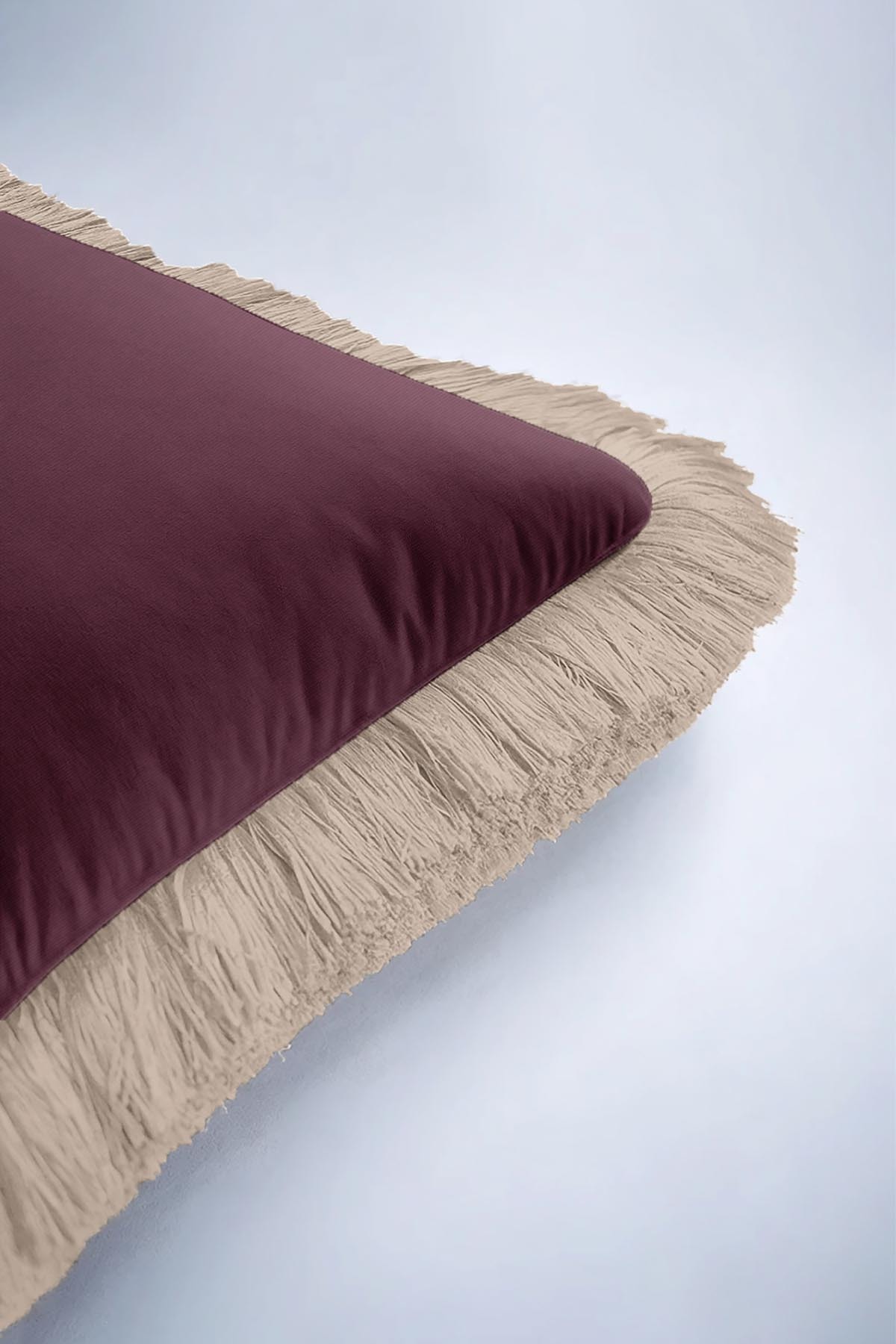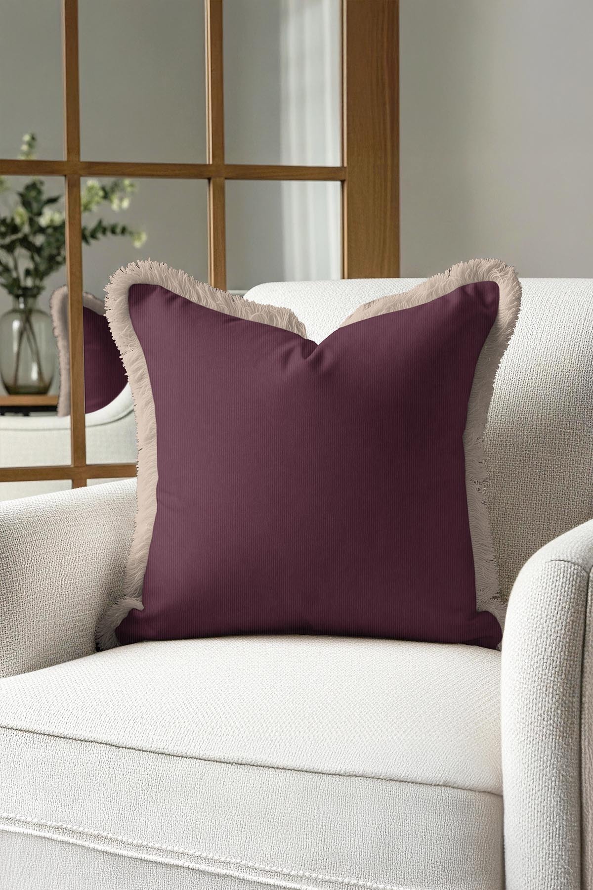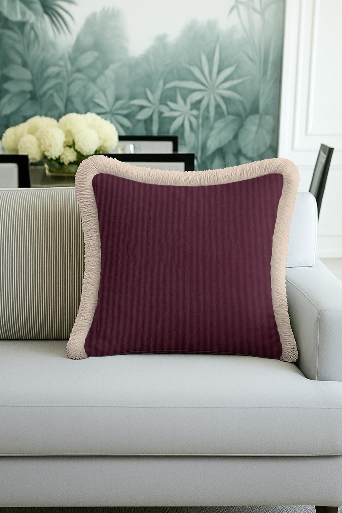 Zarif Mor Saçaklı Yastık Kılıfı - Şarap Bordo Modern Bej Püsküllü Kırlent Kılıfı Zarif Mor Saçaklı Yastık Kılıfı - Şarap Bordo Modern Bej Püsküllü Kırlent Kılıfı GRS51 40 x 40