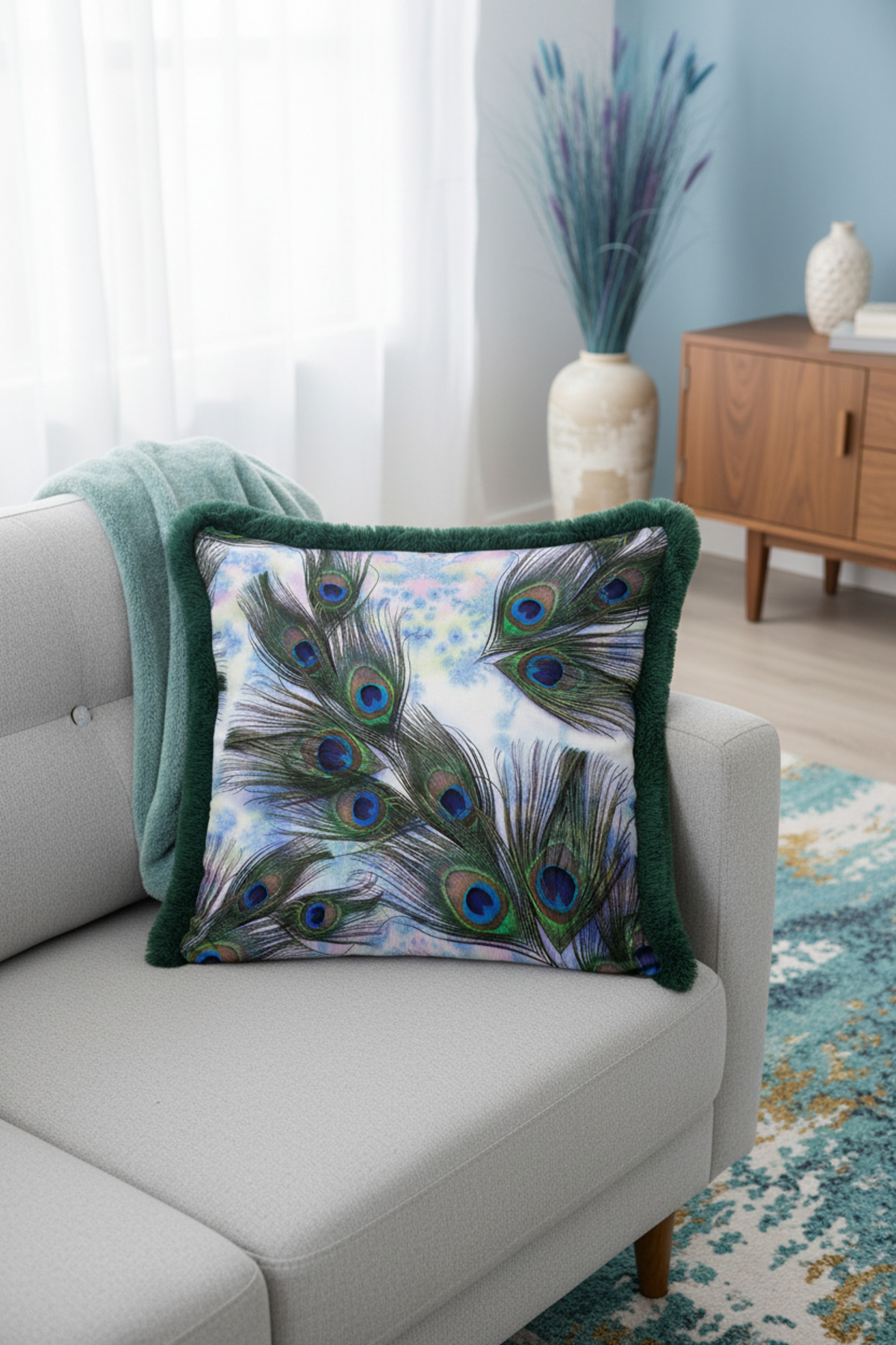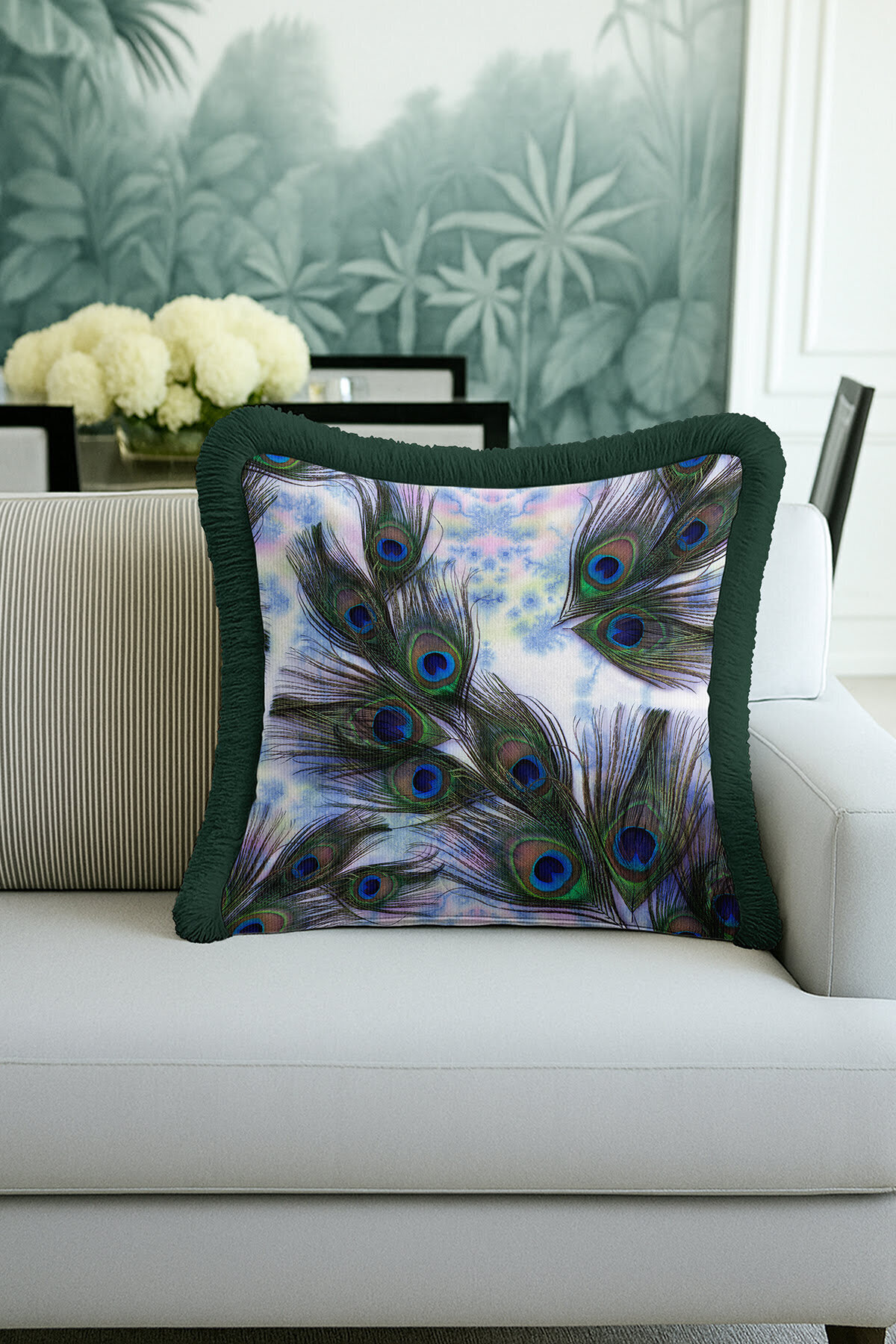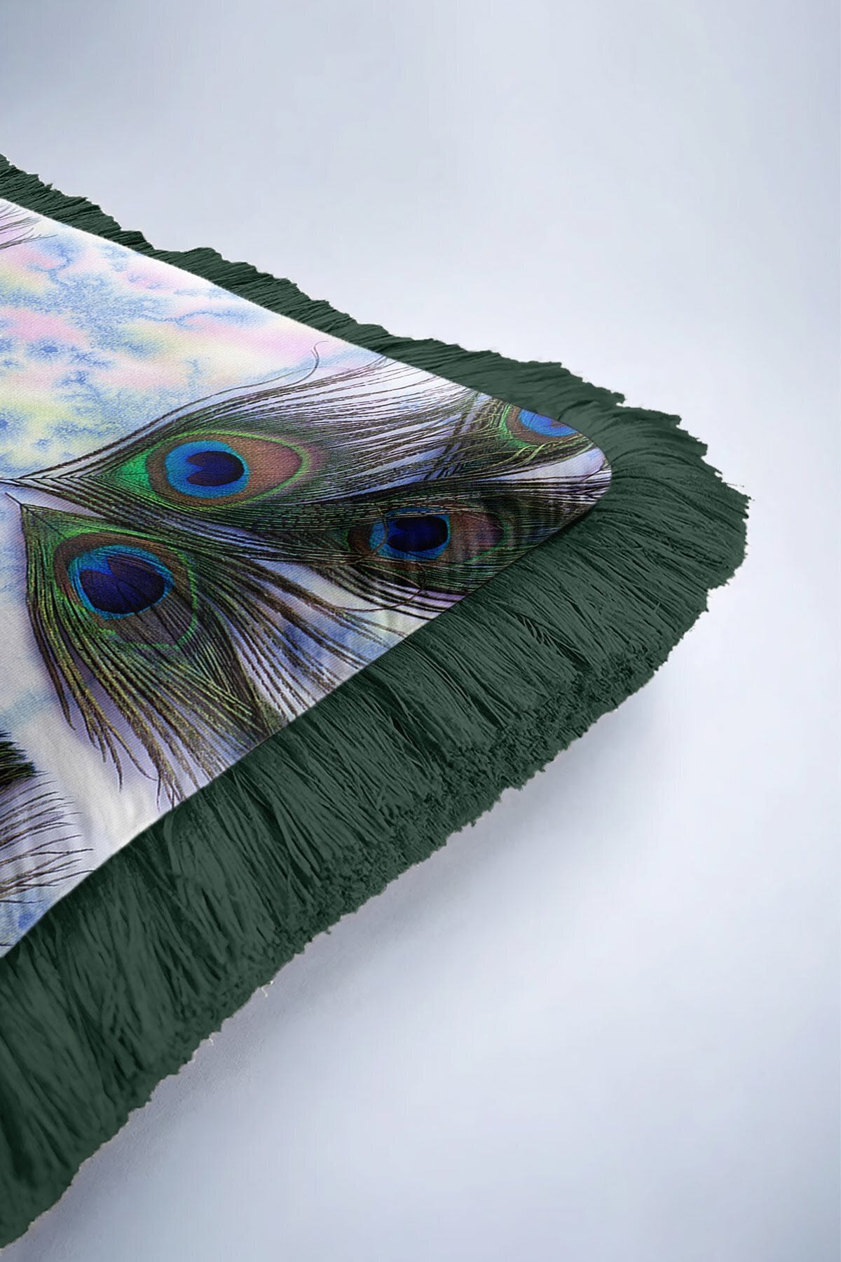 Göz Alıcı Tavuskuşu Tüyü Saçaklı Yastık Kılıfı - Bohem Yeşil Mavi Püsküllü Kırlent Kılıfı Göz Alıcı Tavuskuşu Tüyü Saçaklı Yastık Kılıfı - Bohem Yeşil Mavi Püsküllü Kırlent Kılıfı GRS63 40 x 40