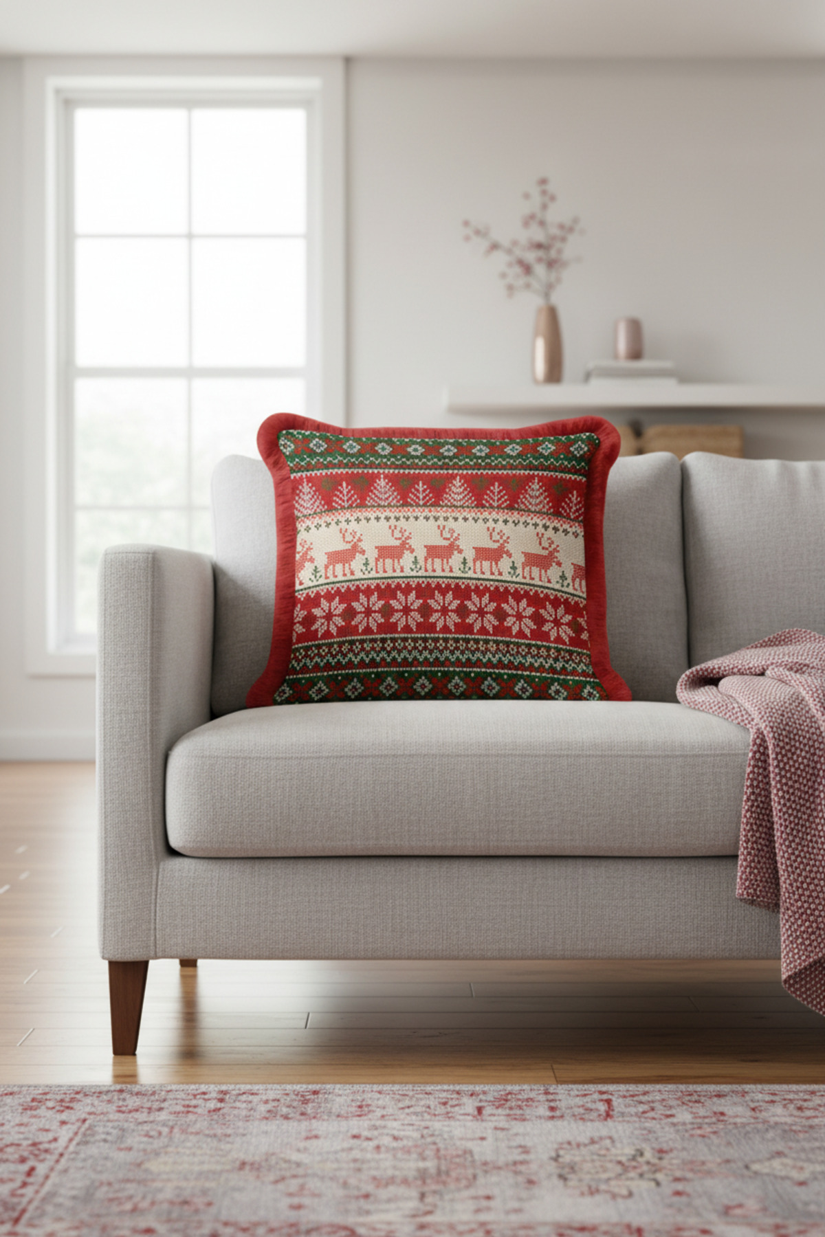 Nordik Kar Tanesi Saçaklı Yastık Kılıfı - Yılbaşı Temalı Kırmızı Yeşil Püsküllü Kırlent Kılıfı Nordik Kar Tanesi Saçaklı Yastık Kılıfı - Yılbaşı Temalı Kırmızı Yeşil Püsküllü Kırlent Kılıfı GRS54 40 x 40