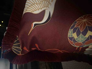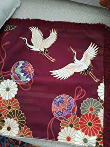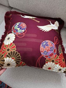 Japon Turna Kuşu Motifli Saçaklı Yastık Kılıfı - Geleneksel Bohem Bordo Krem Püsküllü Kırlent Kılıfı Japon Turna Kuşu Motifli Saçaklı Yastık Kılıfı - Geleneksel Bohem Bordo Krem Püsküllü Kırlent Kılıfı GRS30 40 x 40