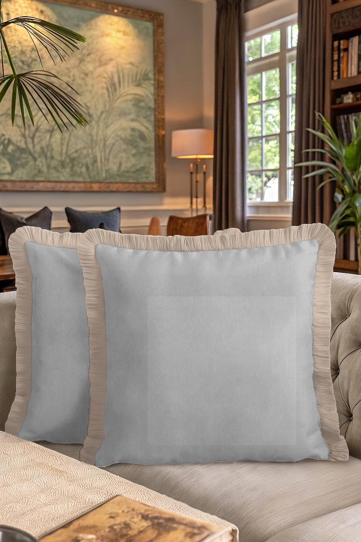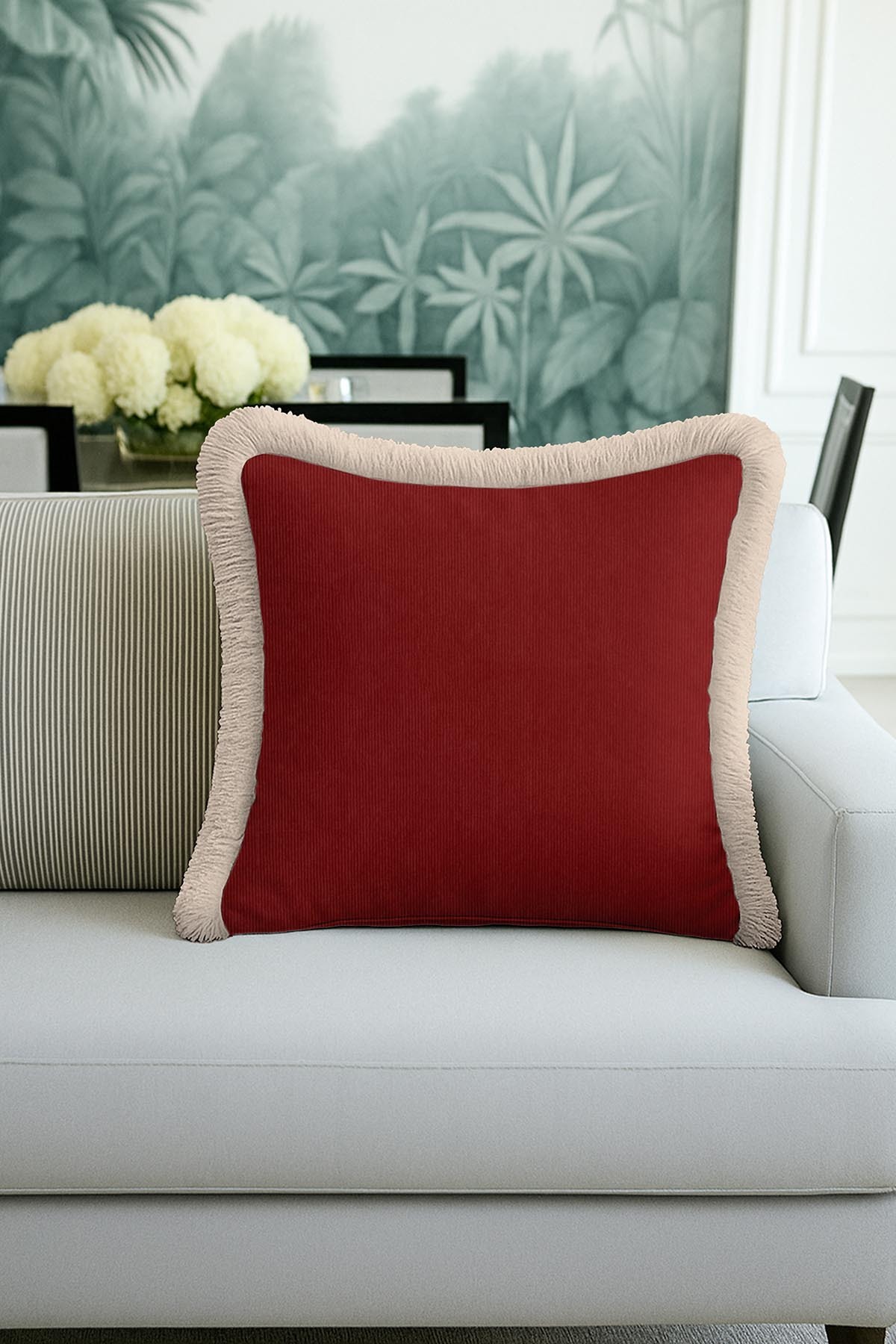 Luxury Elegance Saçaklı Yastık Kılıfı - Sofistike Modern Bej Gri Püsküllü Kırlent Kılıfı Luxury Elegance Saçaklı Yastık Kılıfı - Sofistike Modern Bej Gri Püsküllü Kırlent Kılıfı GRS51 40 x 40