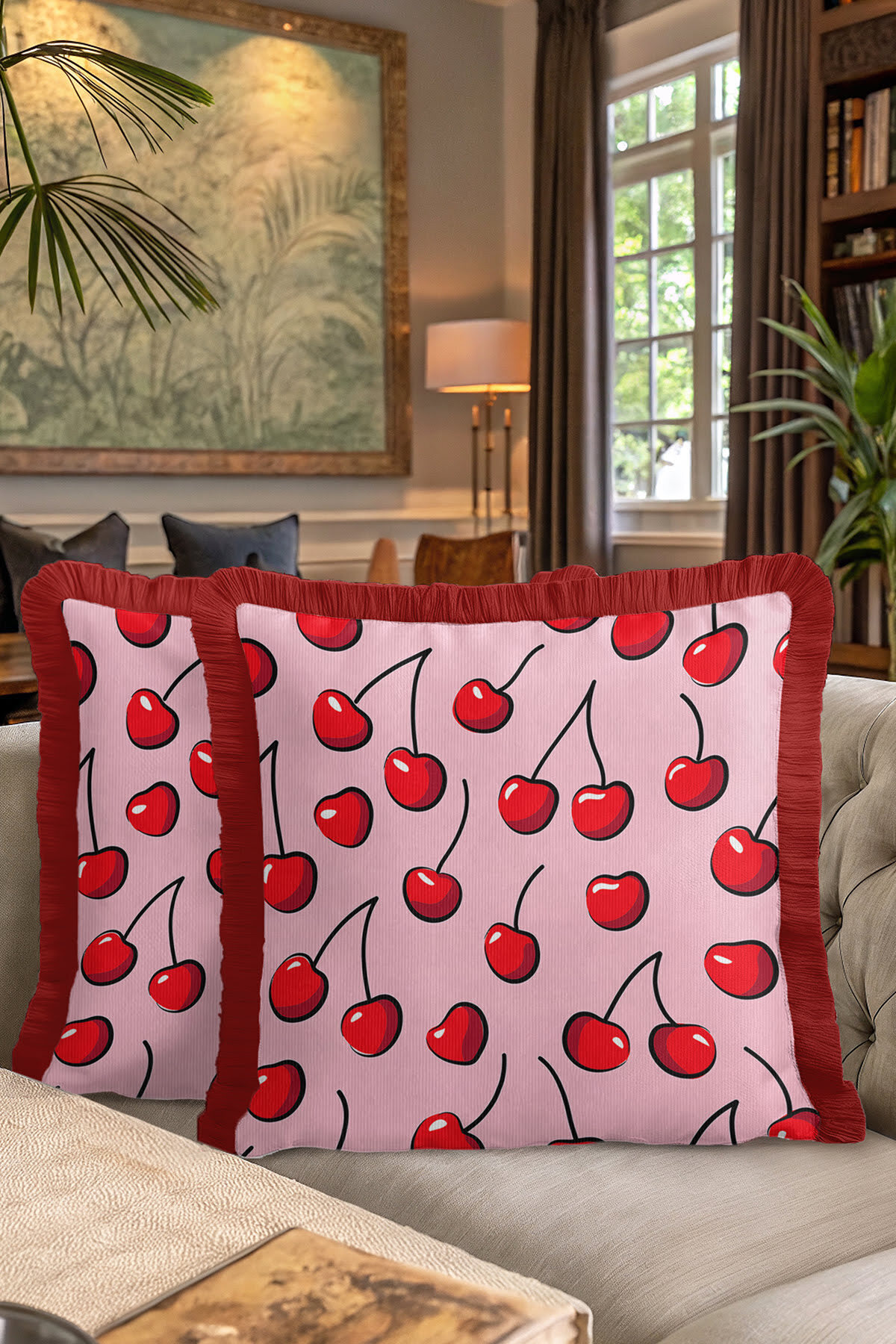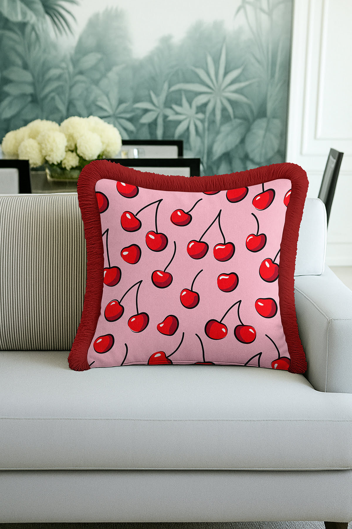 Pop Art Kiraz Saçaklı Yastık Kılıfı - Enerjik Pastel Bohem Pembe Kırmızı Püsküllü Kırlent Kılıfı Pop Art Kiraz Saçaklı Yastık Kılıfı - Enerjik Pastel Bohem Pembe Kırmızı Püsküllü Kırlent Kılıfı GRS93 40 x 40