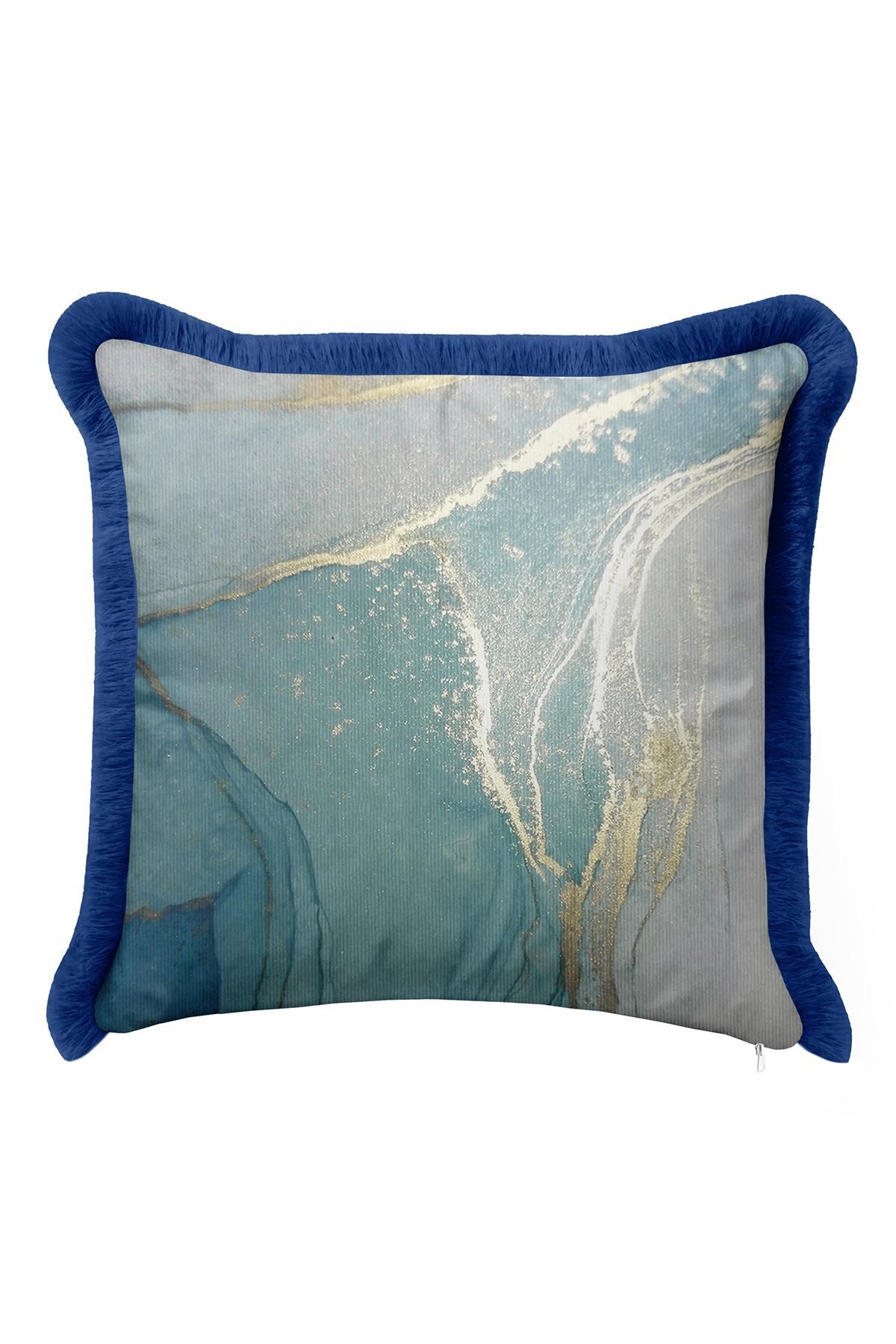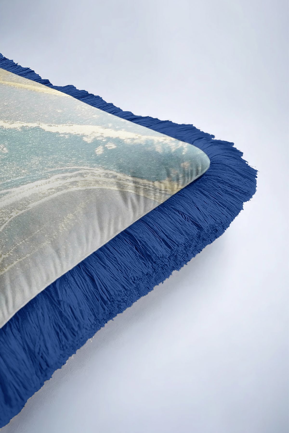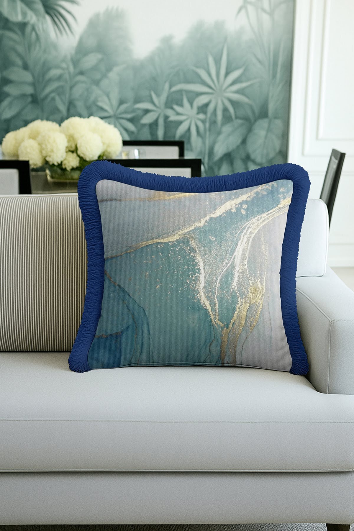 Mermer Efektli Lüks Saçaklı Yastık Kılıfı - Modern Aqua Altın Renkli Püsküllü Kırlent Kılıfı Mermer Efektli Lüks Saçaklı Yastık Kılıfı - Modern Aqua Altın Renkli Püsküllü Kırlent Kılıfı GRS78 40 x 40