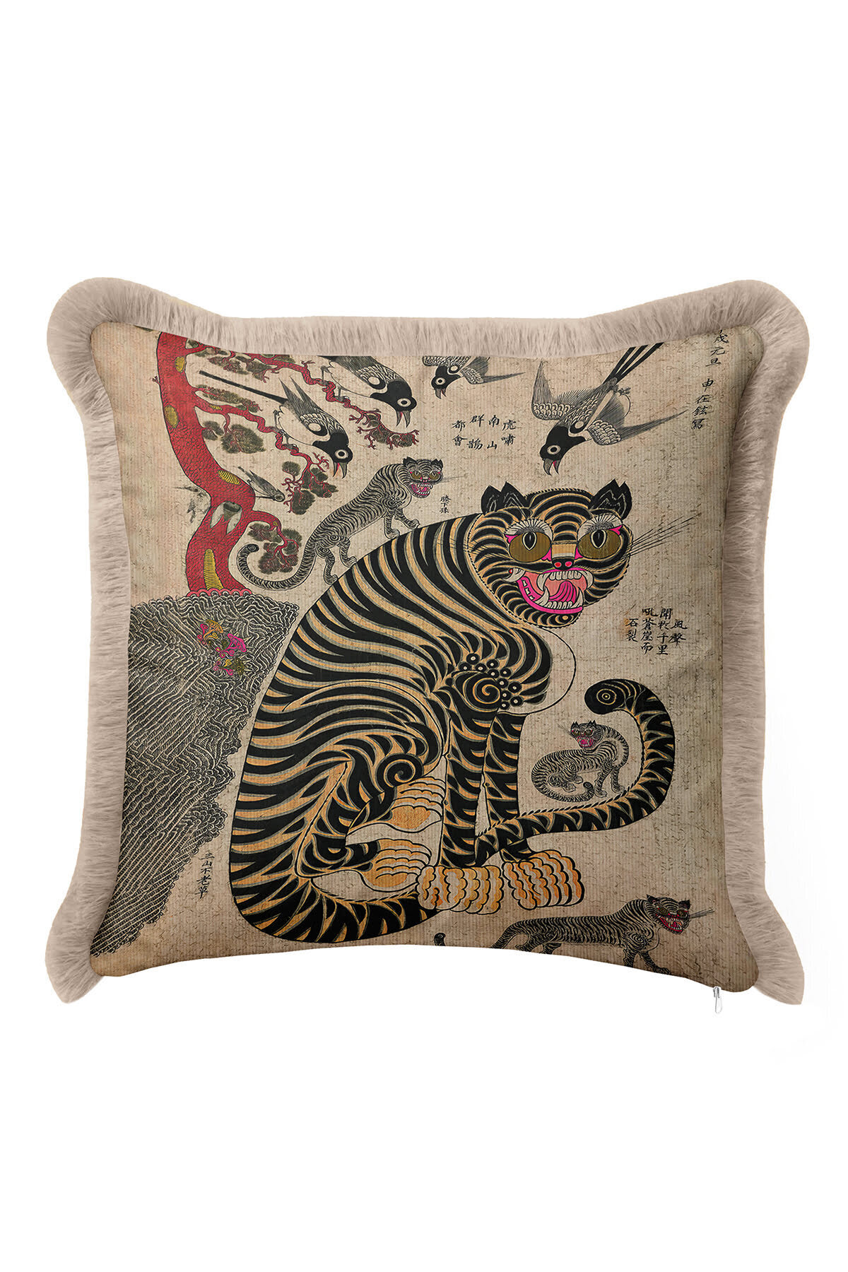 Pembe Zeminde Lüks Kaplan Figürlü Saçaklı Yastık Kılıfı - Bohem Pudra Gold Püsküllü Kırlent Kılıfı Pembe Zeminde Lüks Kaplan Figürlü Saçaklı Yastık Kılıfı - Bohem Pudra Gold Püsküllü Kırlent Kılıfı GRS89 40 x 40