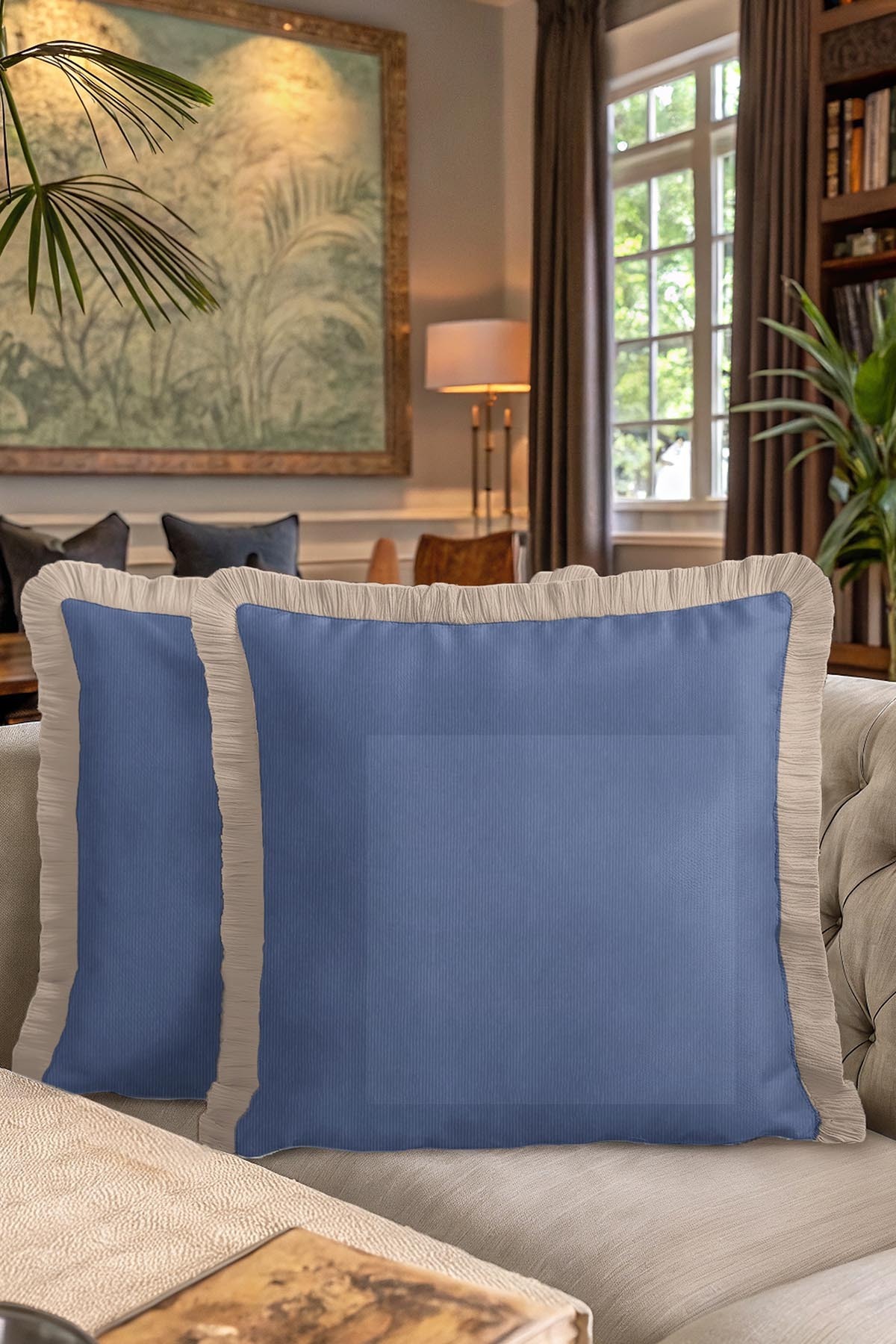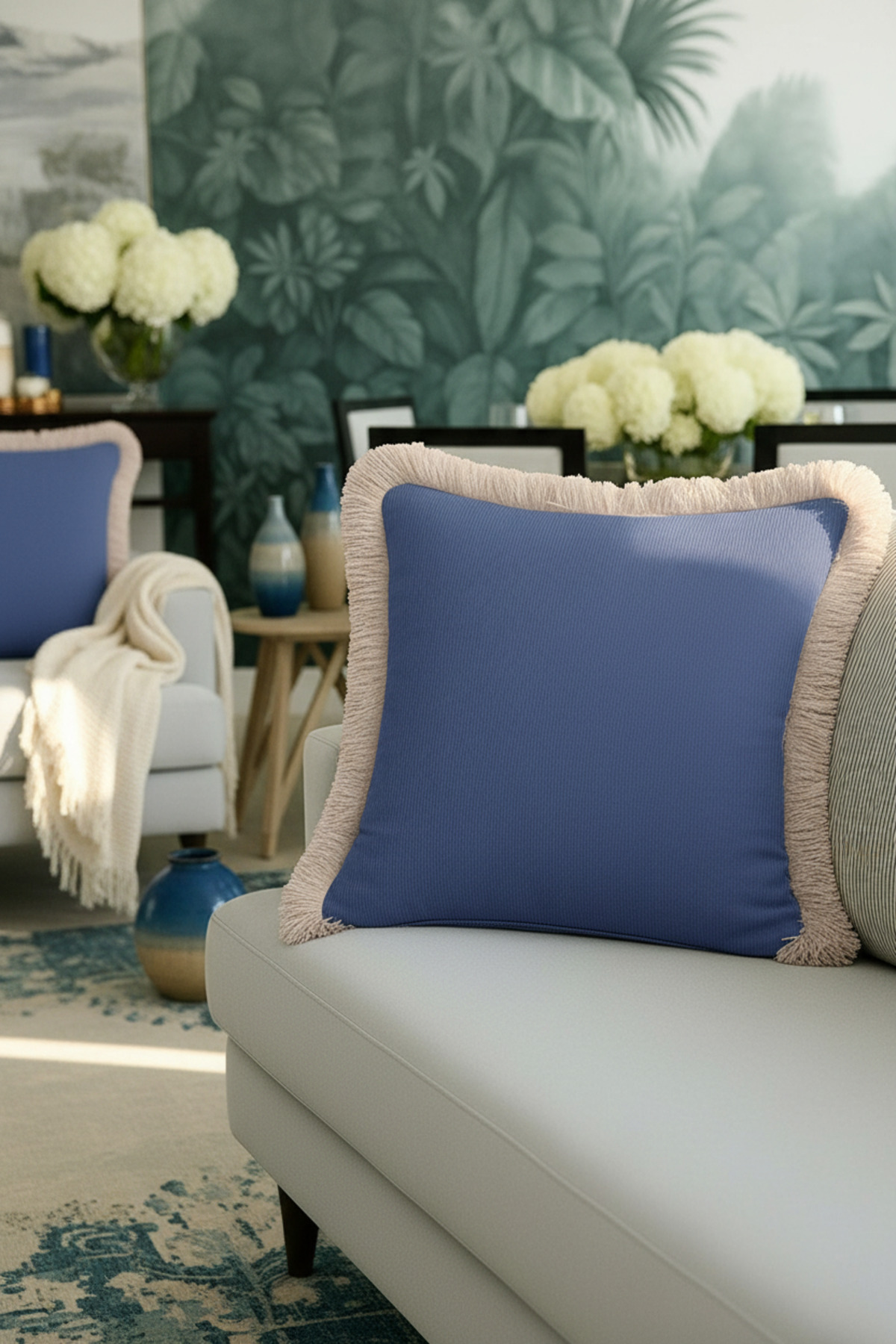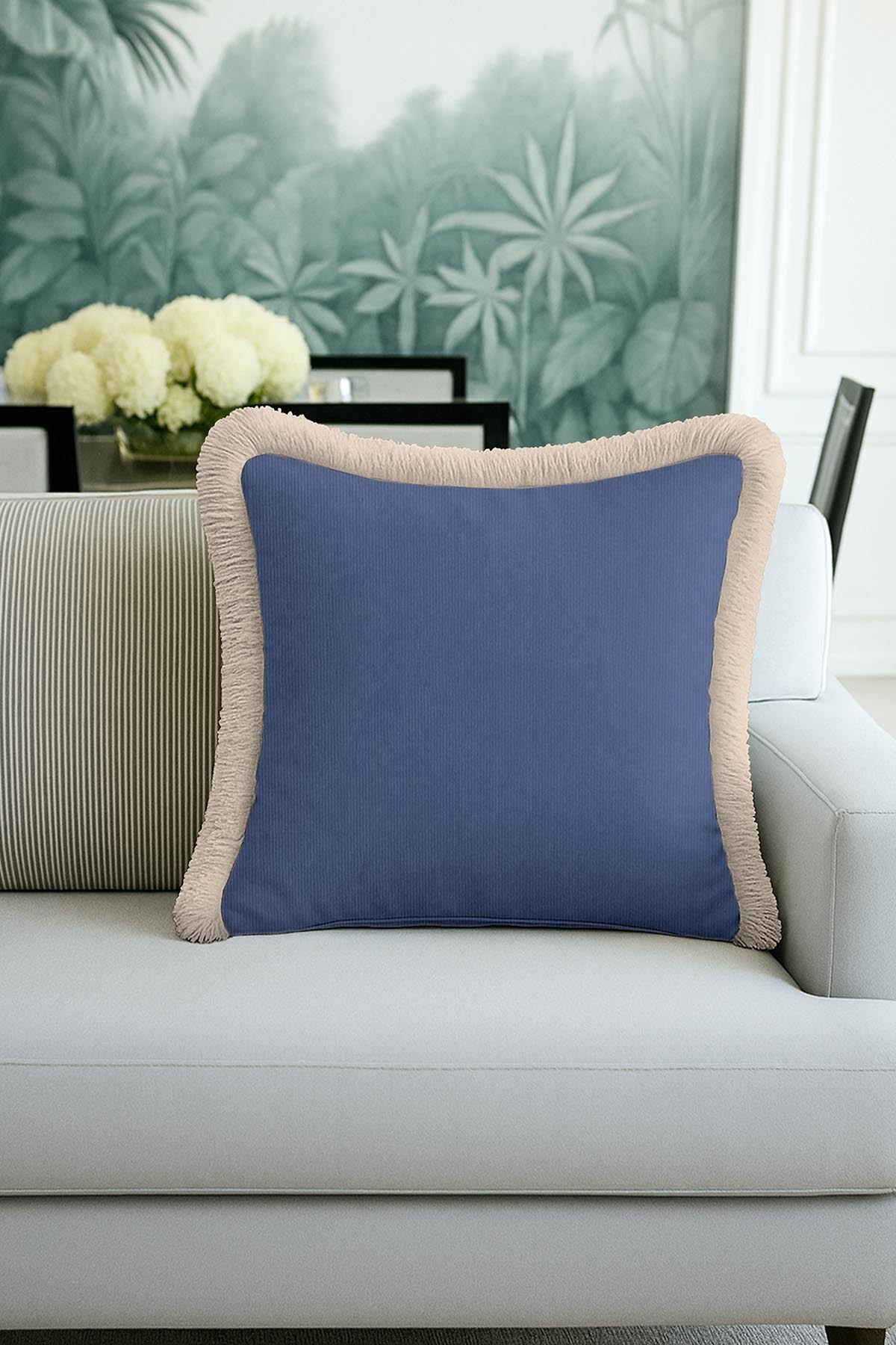 Zarif Kadife Kenarlı Saçaklı Yastık Kılıfı - İskandinav Mavi Bej Püsküllü Kırlent Kılıfı Zarif Kadife Kenarlı Saçaklı Yastık Kılıfı - İskandinav Mavi Bej Püsküllü Kırlent Kılıfı GRS50 40 x 40