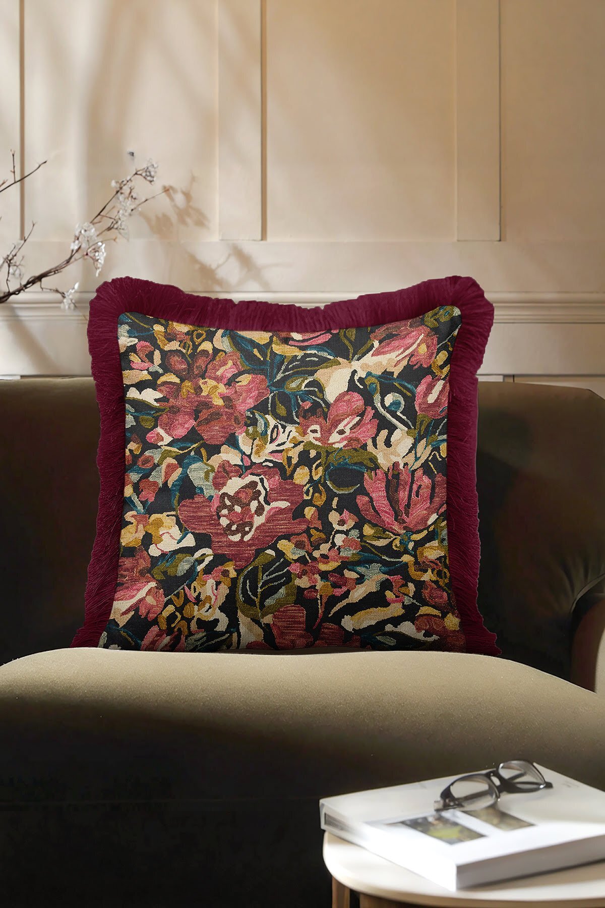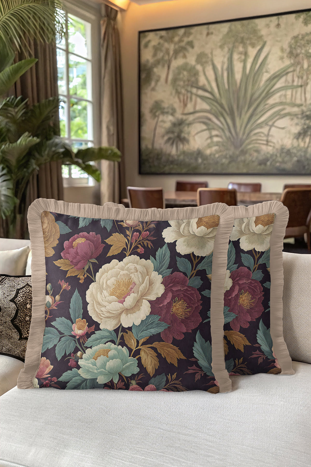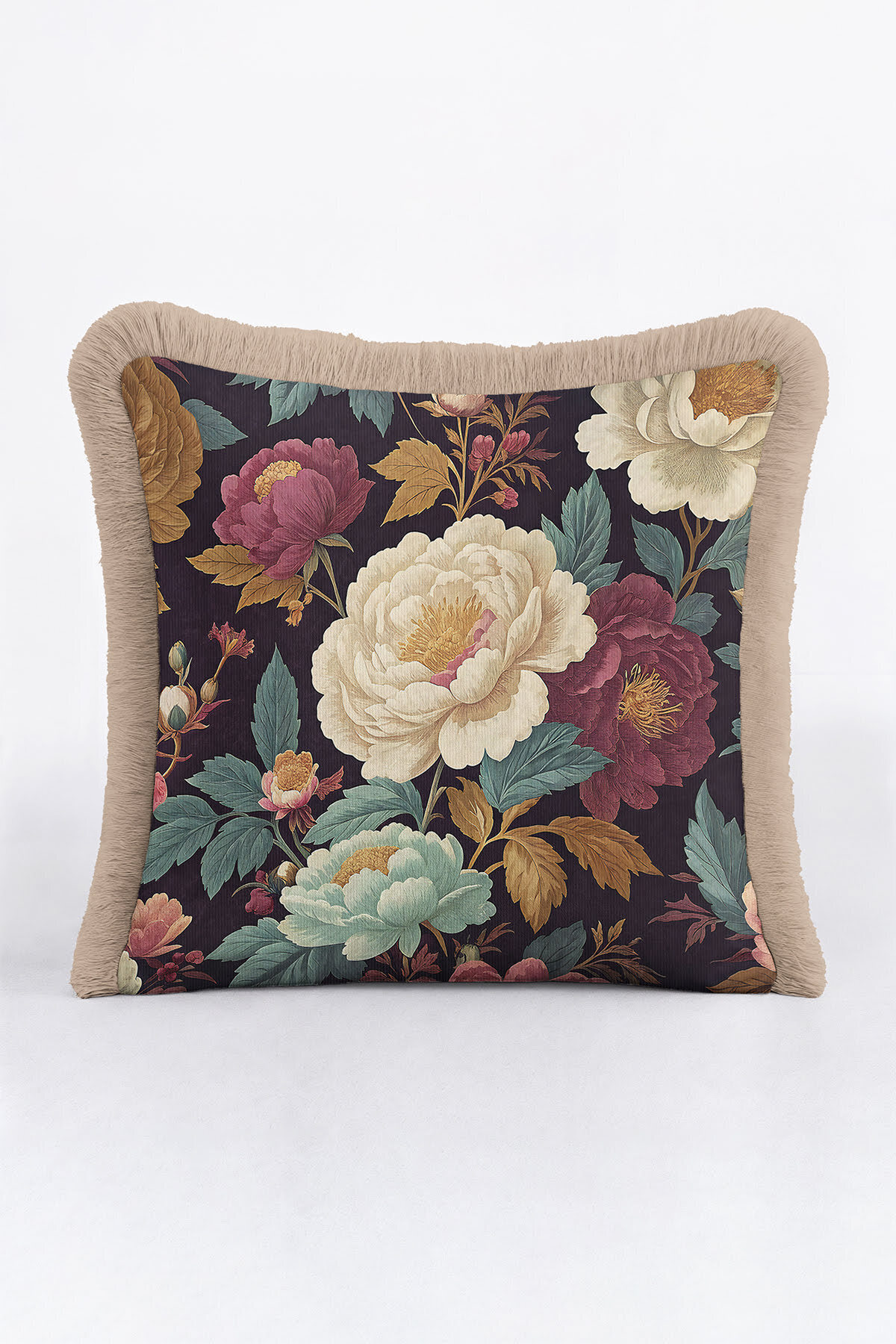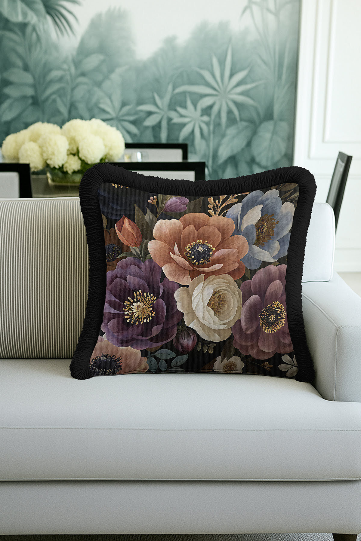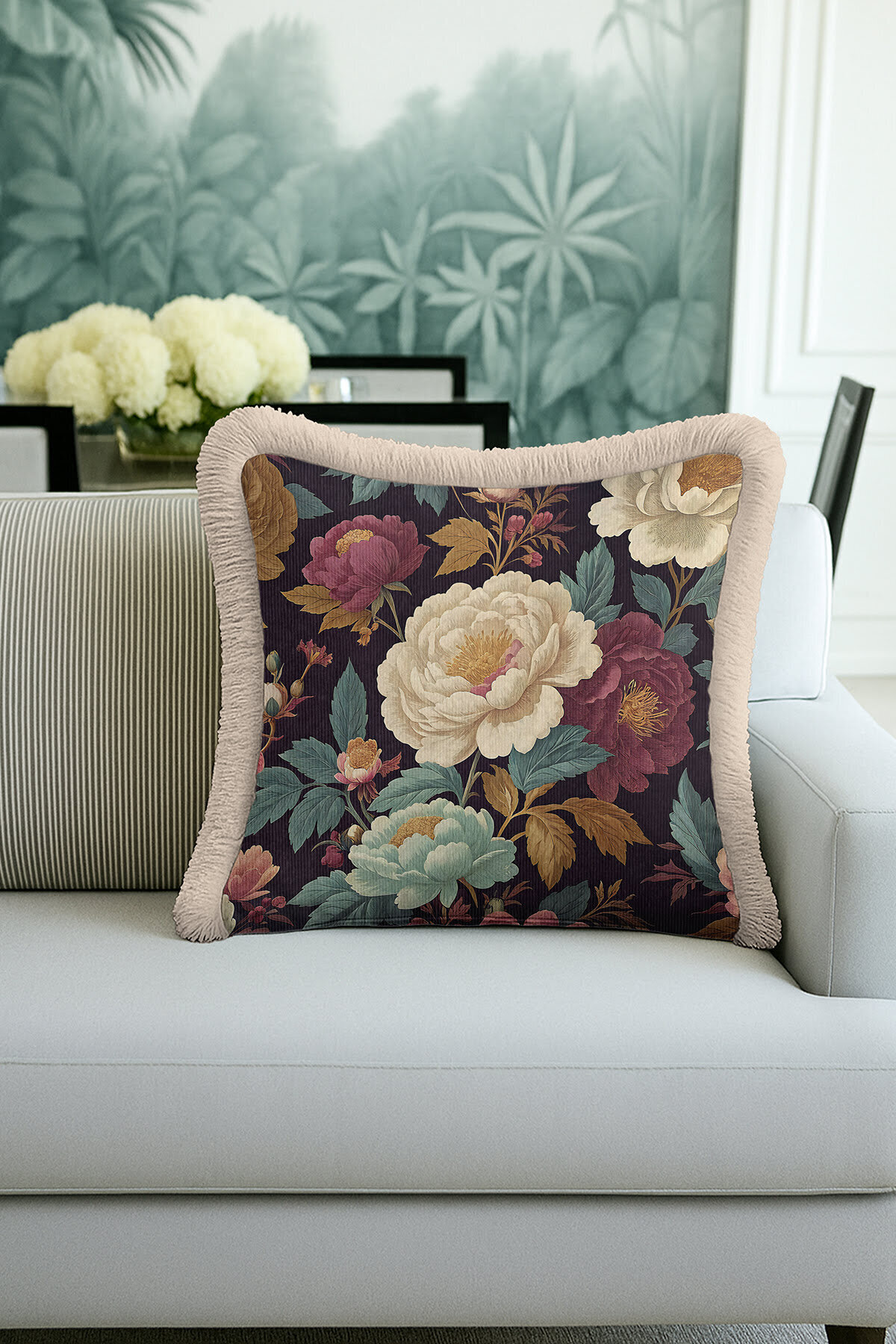 Lüks Vintage Çiçekli Saçaklı Yastık Kılıfı - Retro Klasik Krem Zemin Püsküllü Kırlent Kılıfı Lüks Vintage Çiçekli Saçaklı Yastık Kılıfı - Retro Klasik Krem Zemin Püsküllü Kırlent Kılıfı GRS31 40 x 40
