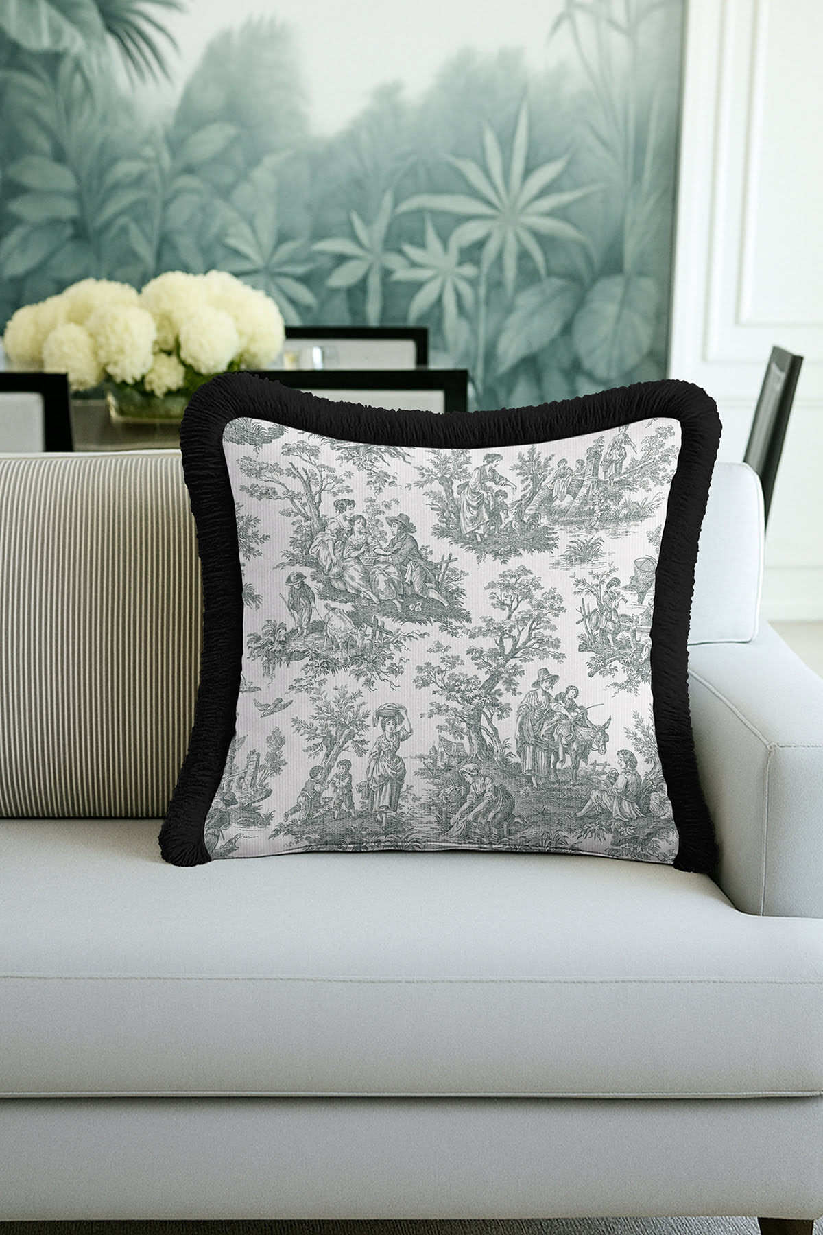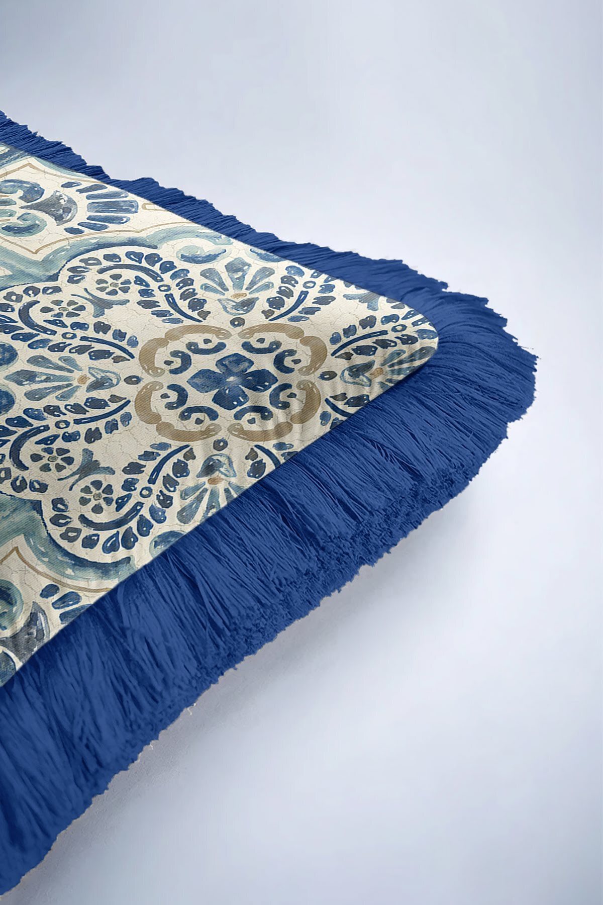 Lüks Vintage Motifli Saçaklı Yastık Kılıfı - Akdeniz Stili Mavi Altın Renkli Püsküllü Kırlent Kılıfı Lüks Vintage Motifli Saçaklı Yastık Kılıfı - Akdeniz Stili Mavi Altın Renkli Püsküllü Kırlent Kılıfı GRS35 40 x 40