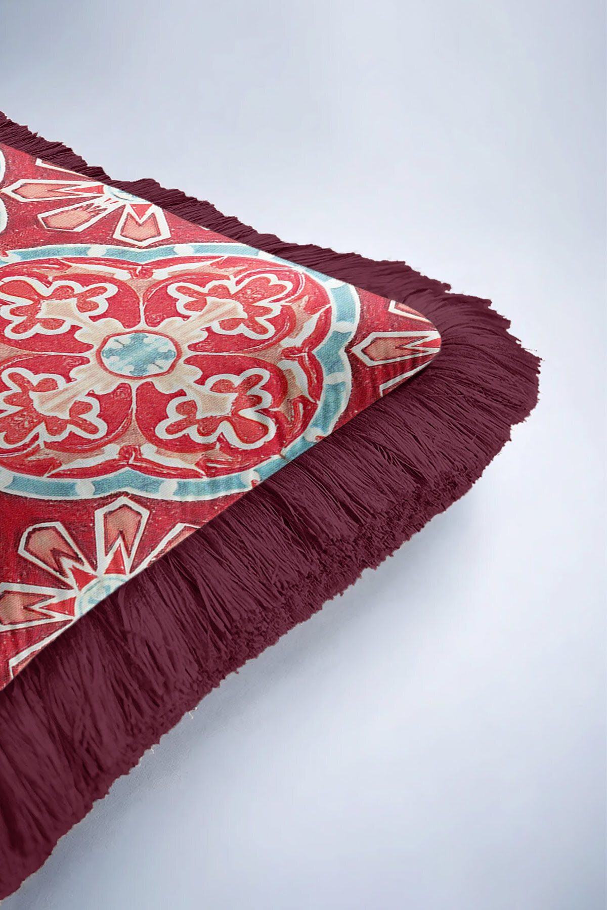Oriental Lale Motifli Lüx Saçaklı Yastık Kılıfı-Klasik Mint Kırmızı Retro Püsküllü Kırlent Kılıfı Oriental Lale Motifli Lüx Saçaklı Yastık Kılıfı-Klasik Mint Kırmızı Retro Püsküllü Kırlent Kılıfı GRS18 40 x 40