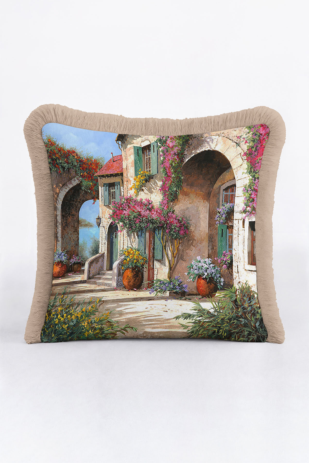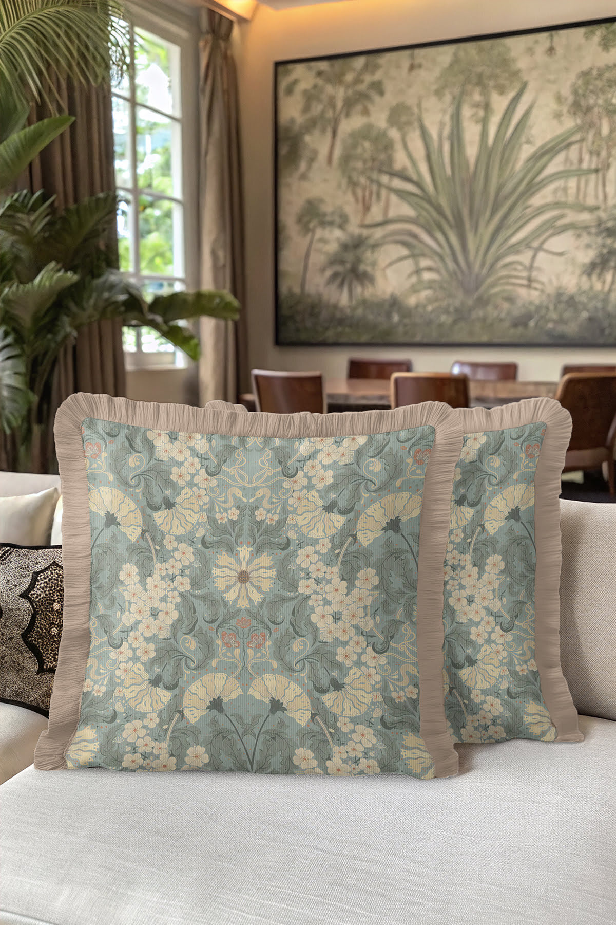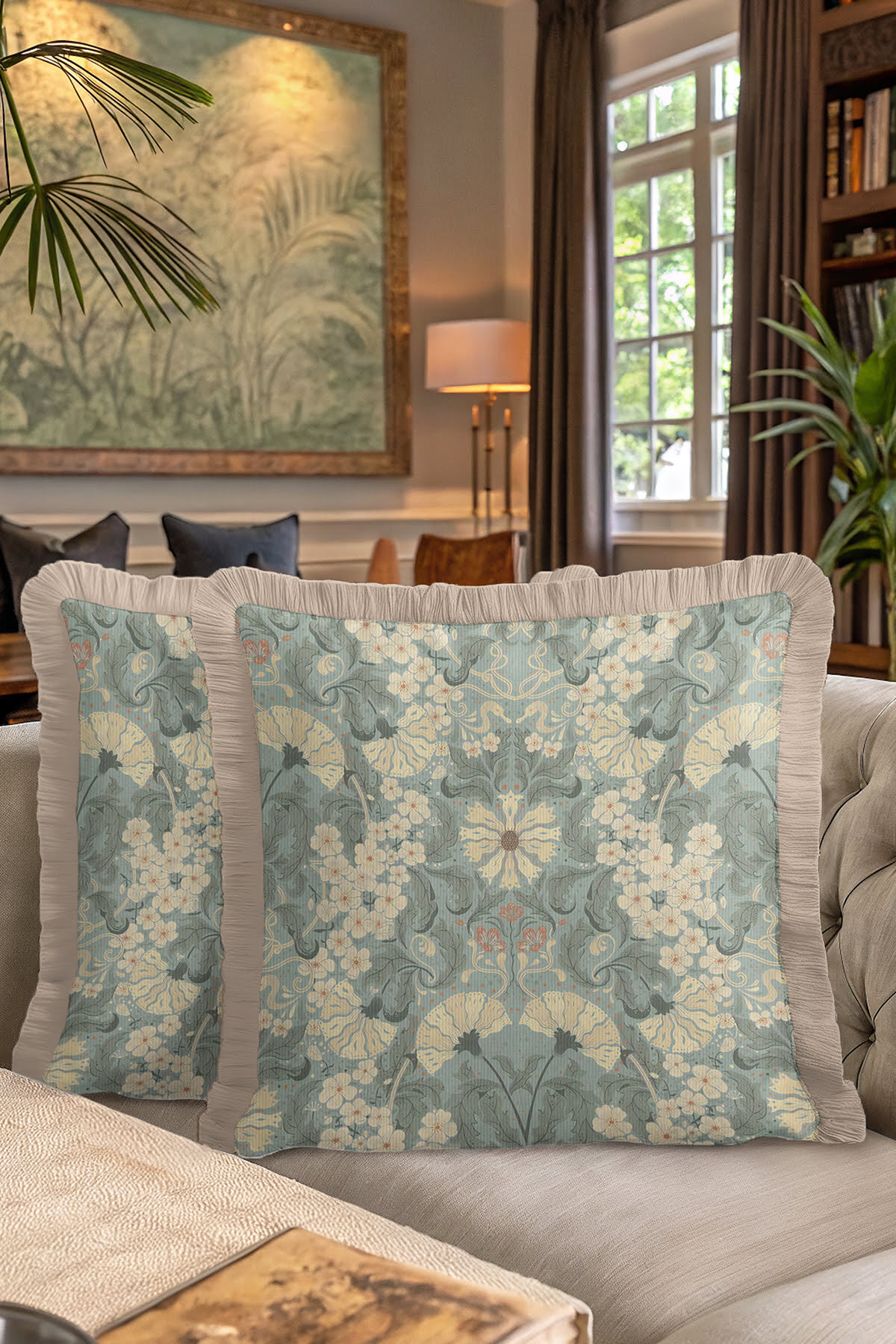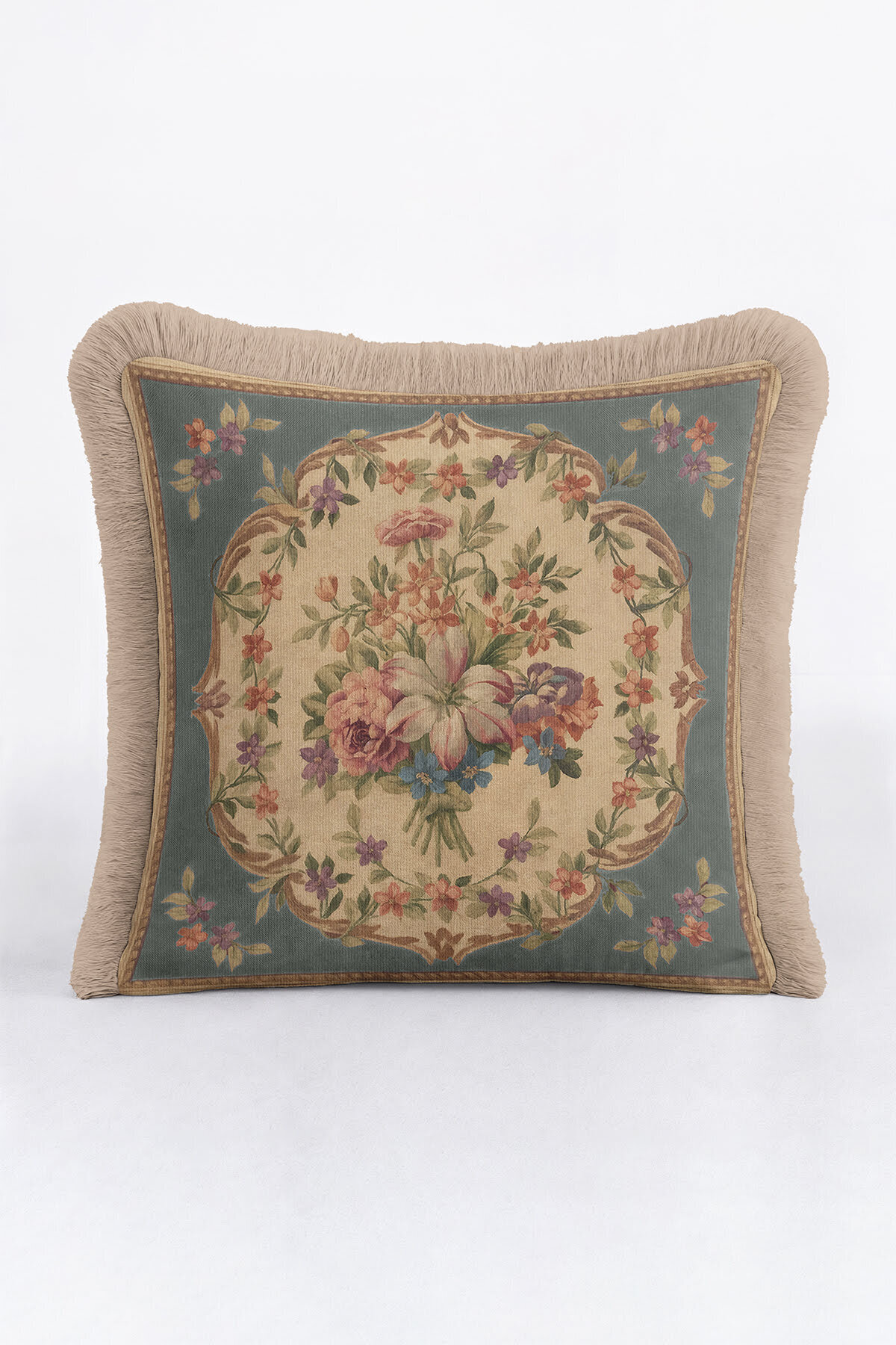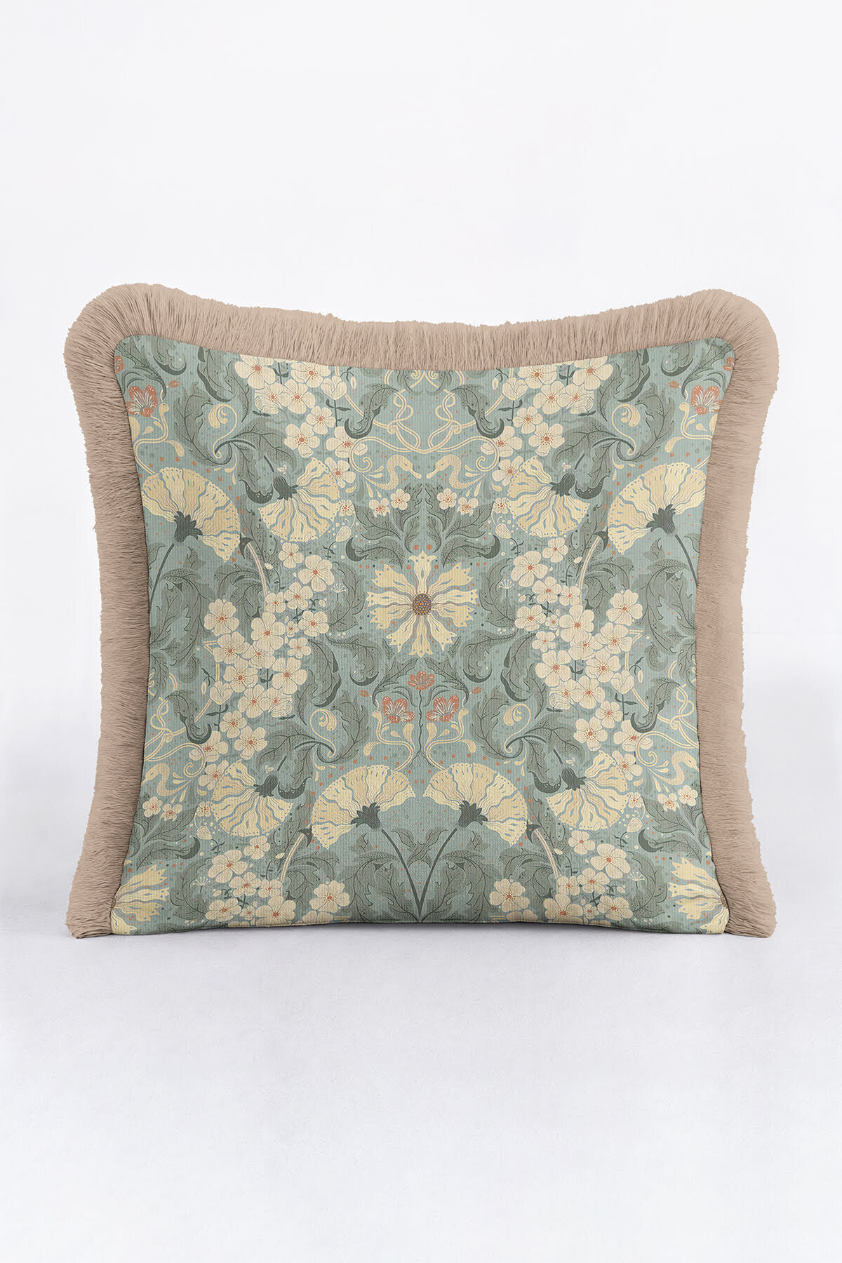 Zarif Çiçek Motifli Saçaklı Yastık Kılıfı - Vintage Bohem Mint Yeşili Püsküllü Kırlent Kılıfı Zarif Çiçek Motifli Saçaklı Yastık Kılıfı - Vintage Bohem Mint Yeşili Püsküllü Kırlent Kılıfı GRS45 40 x 40