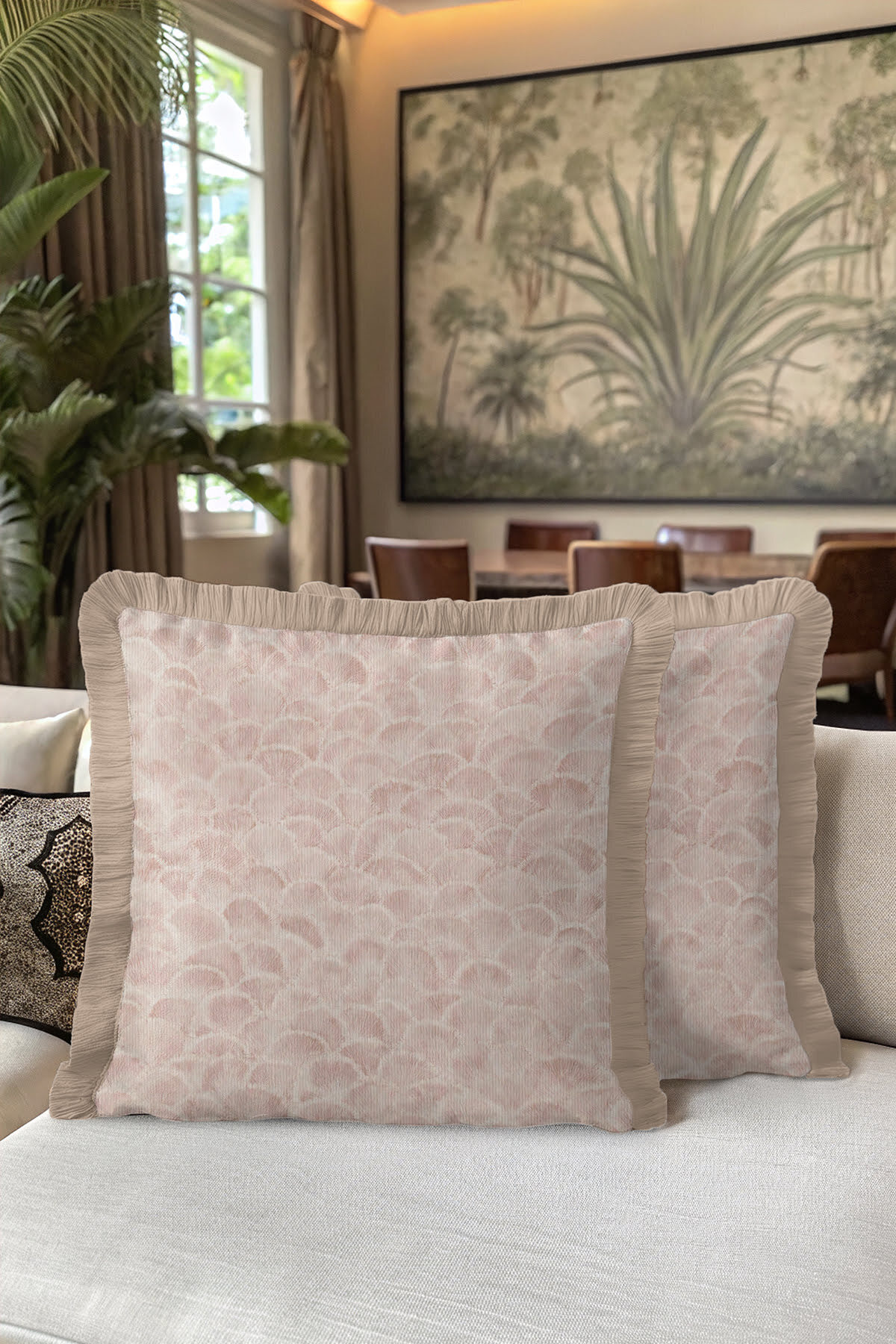 Art Deco Mermer Krem Saçaklı Yastık Kılıfı - Lüks Modern Pudra Bej Püsküllü Kırlent Kılıfı Art Deco Mermer Krem Saçaklı Yastık Kılıfı - Lüks Modern Pudra Bej Püsküllü Kırlent Kılıfı GRS32 40 x 40