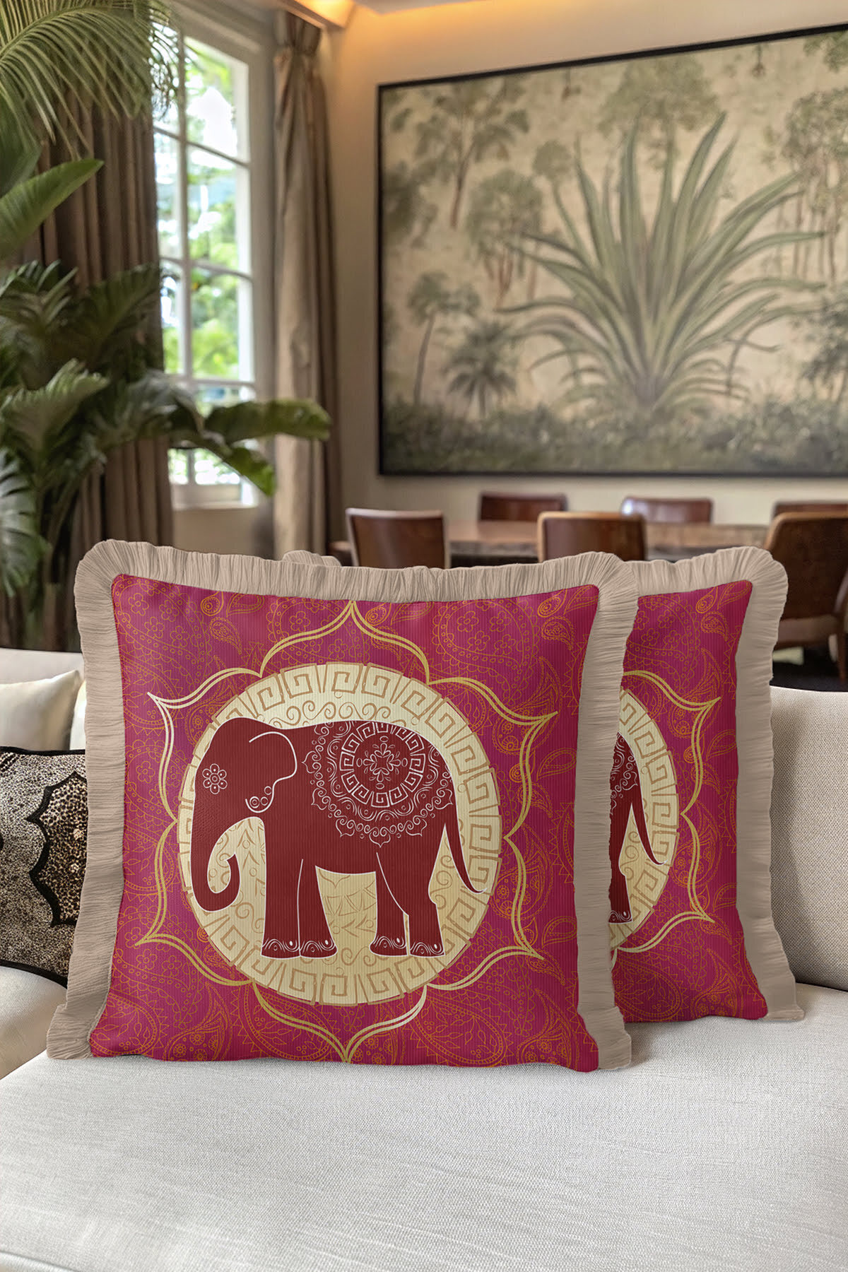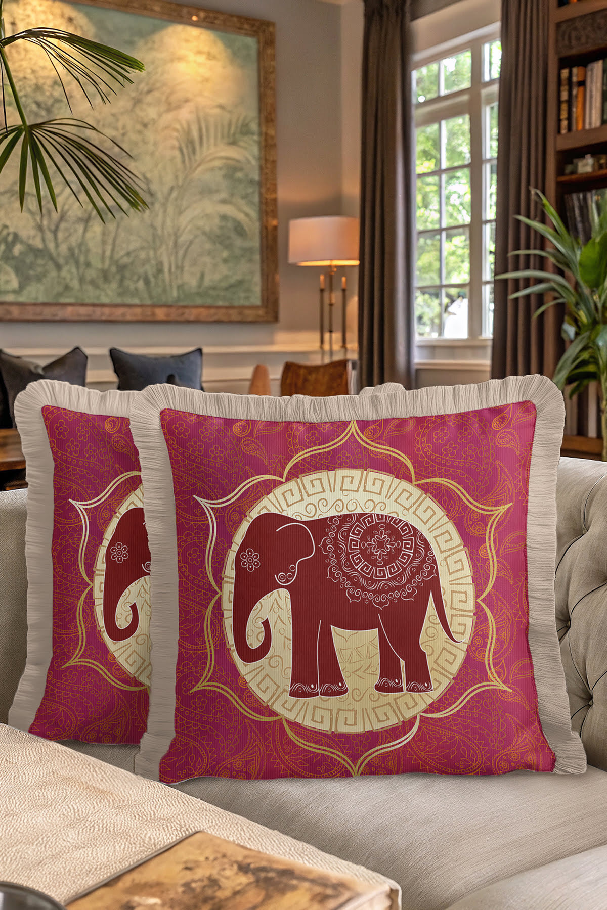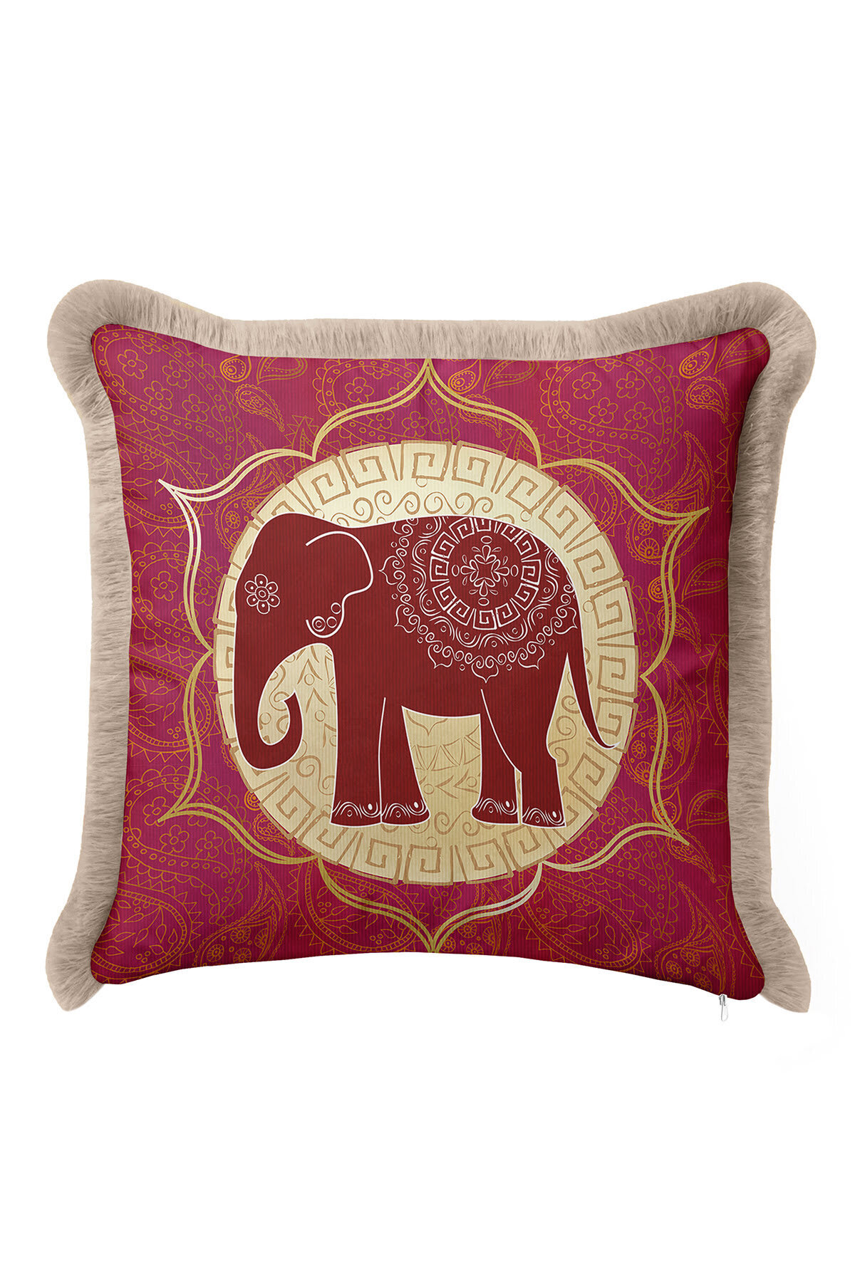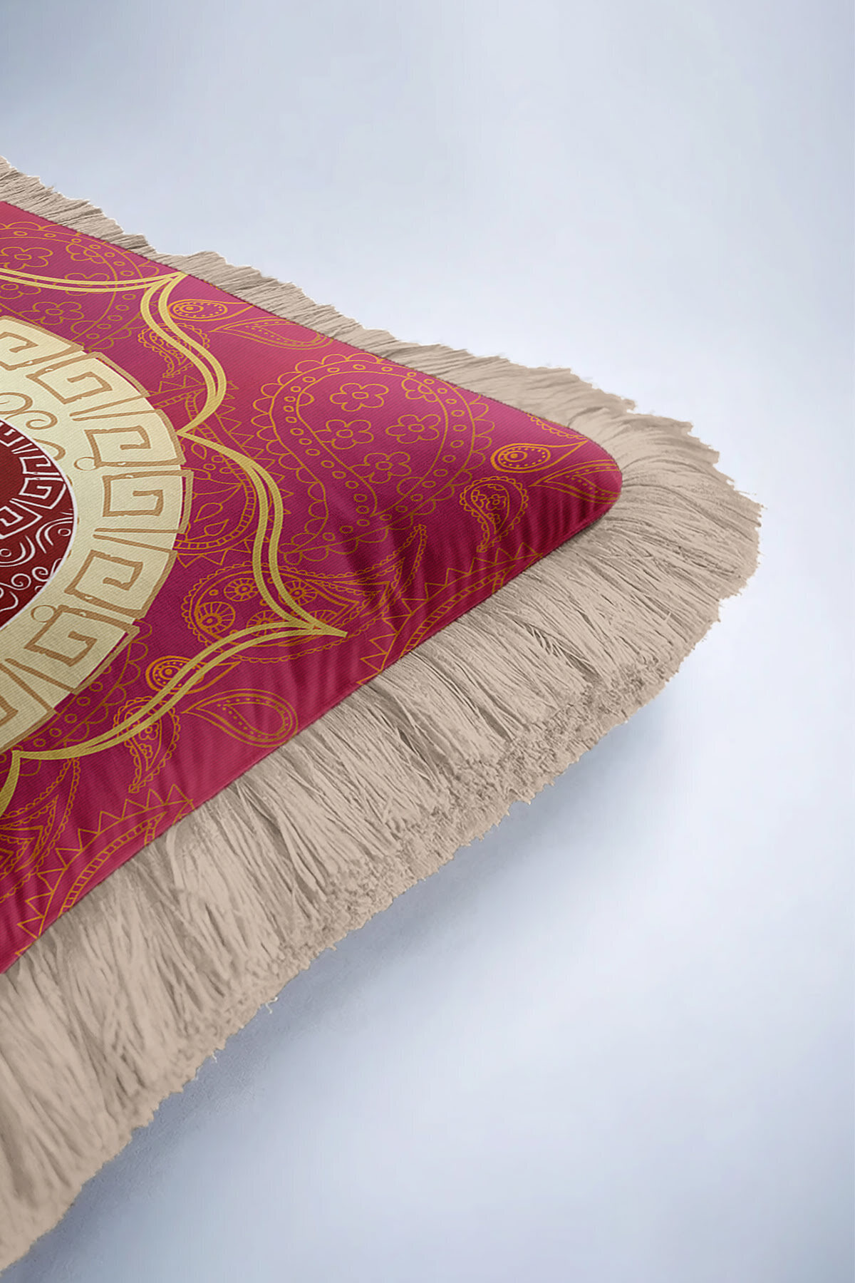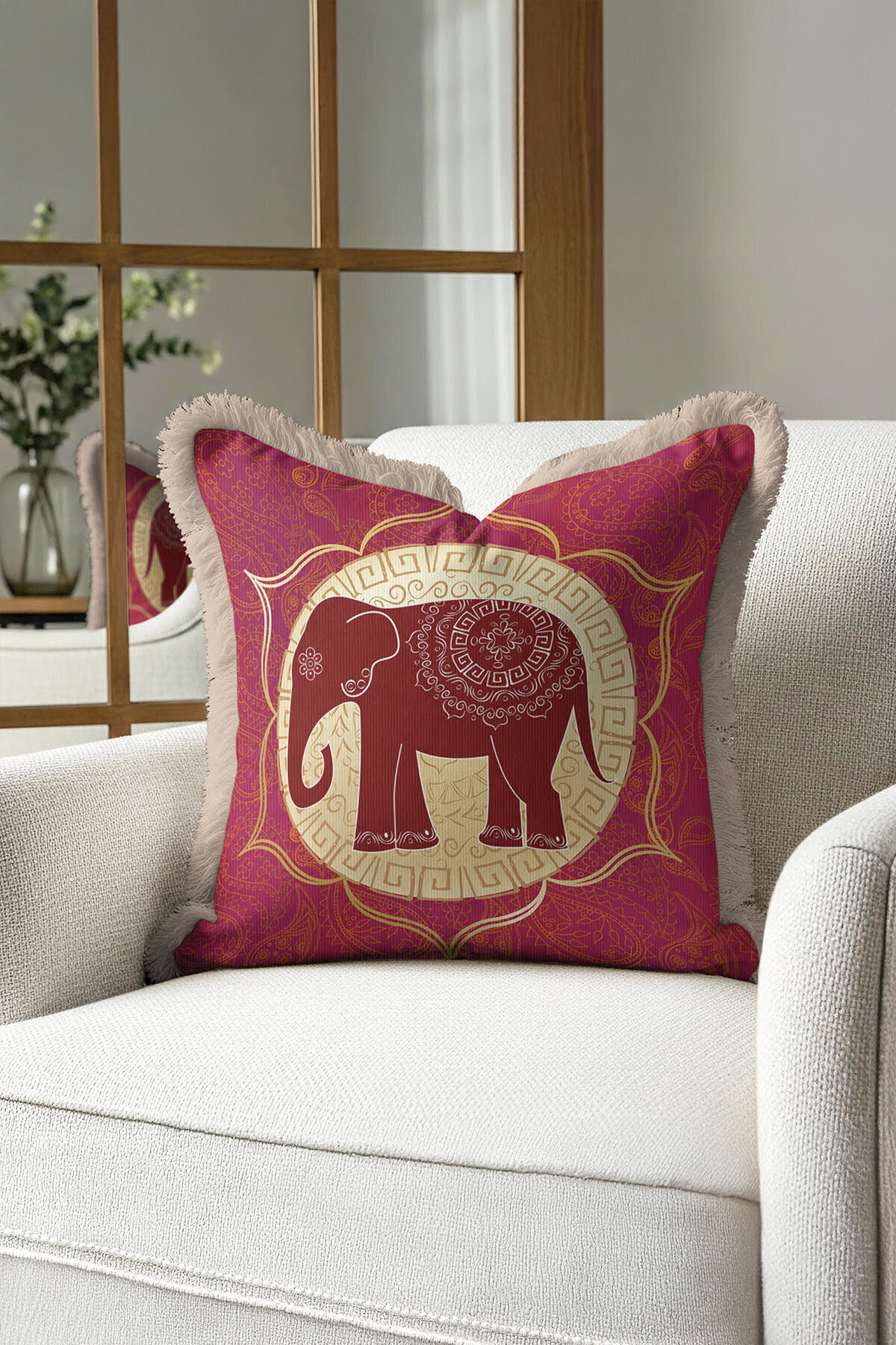 Hint Mandala Fil Figürlü Saçaklı Yastık Kılıfı - Etnik Bohem Kırmızı Krem Püsküllü Kırlent Kılıfı Hint Mandala Fil Figürlü Saçaklı Yastık Kılıfı - Etnik Bohem Kırmızı Krem Püsküllü Kırlent Kılıfı GRS73 40 x 40