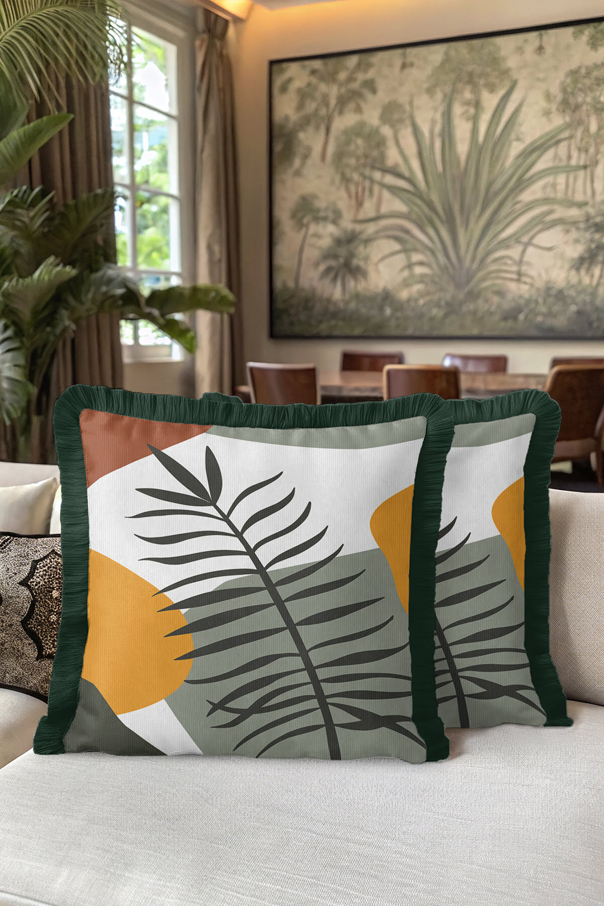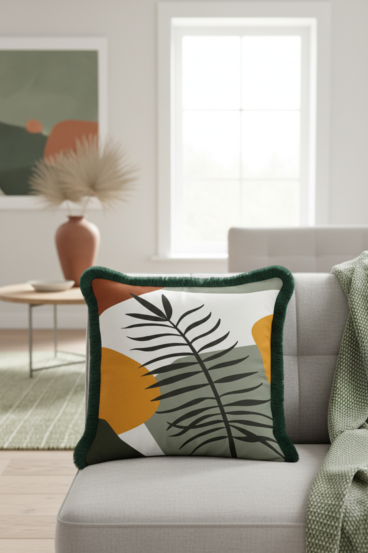 Tropikal Yaprak Altın Renkli Saçaklı Yastık Kılıfı - Doğal Palet Bohem Yeşil Püsküllü Kırlent Kılıfı Tropikal Yaprak Altın Renkli Saçaklı Yastık Kılıfı - Doğal Palet Bohem Yeşil Püsküllü Kırlent Kılıfı GRS74 40 x 40