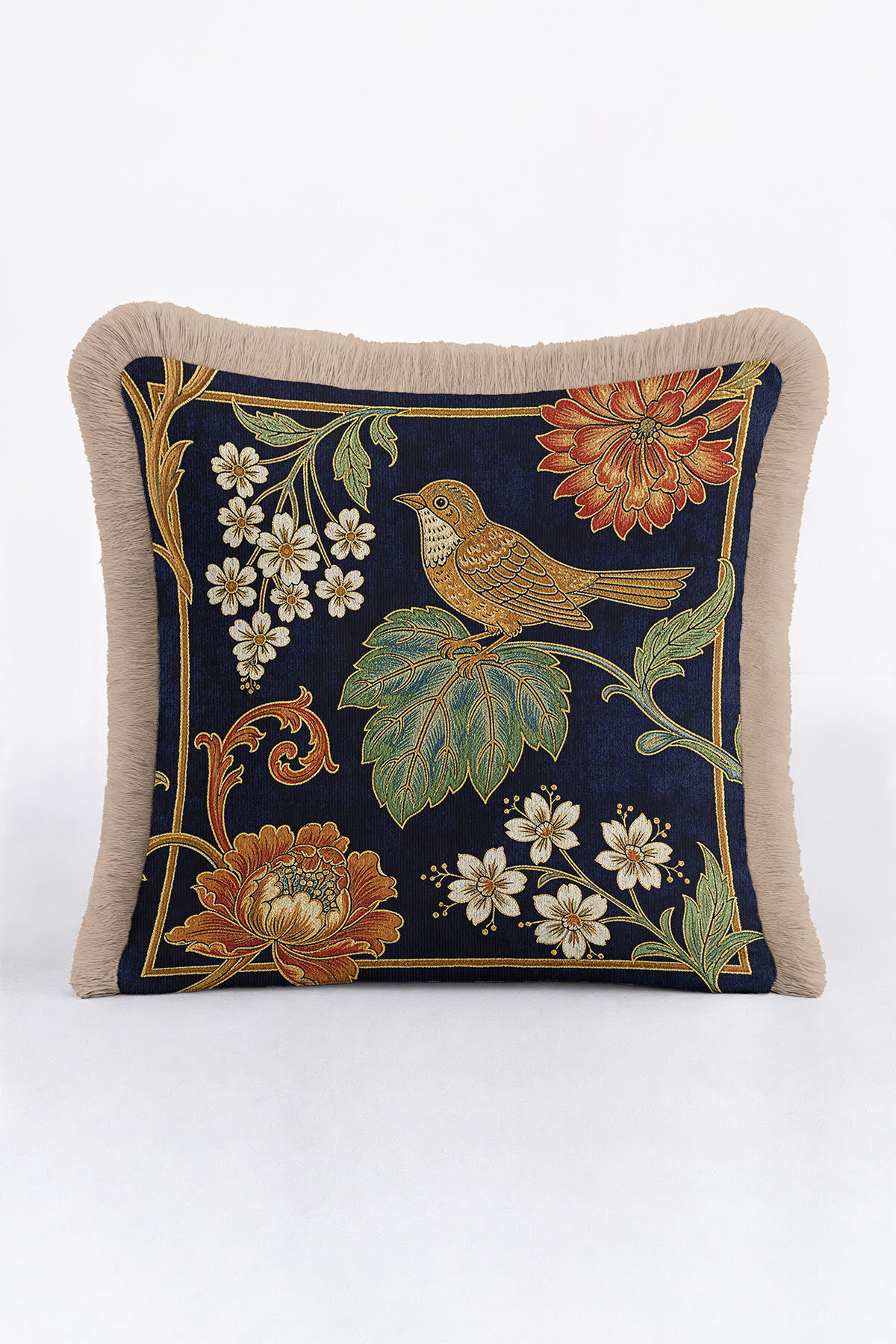 Vintage Kuşlu Çiçekli Saçaklı Yastık Kılıfı - Doğal İskandinav Lacivert Krem Püsküllü Kırlent Kılıfı Vintage Kuşlu Çiçekli Saçaklı Yastık Kılıfı - Doğal İskandinav Lacivert Krem Püsküllü Kırlent Kılıfı GRS39 40 x 40