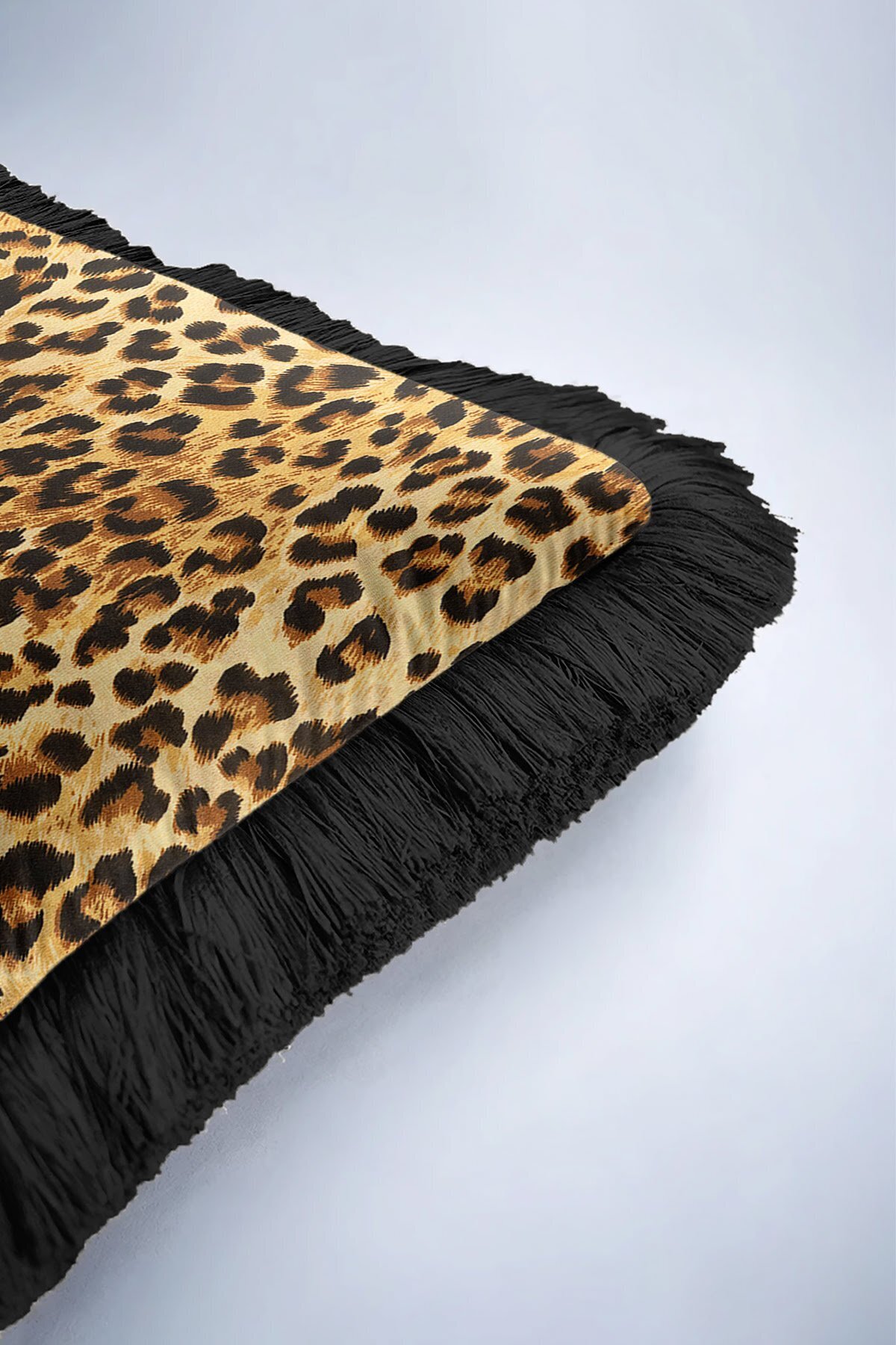 Leopar Desenli Saçaklı Yastık Kılıfı-Safari Dokulu Siyah Gold Bohem Püsküllü Kırlent Kılıfı Leopar Desenli Saçaklı Yastık Kılıfı-Safari Dokulu Siyah Gold Bohem Püsküllü Kırlent Kılıfı GRS13 40 x 40