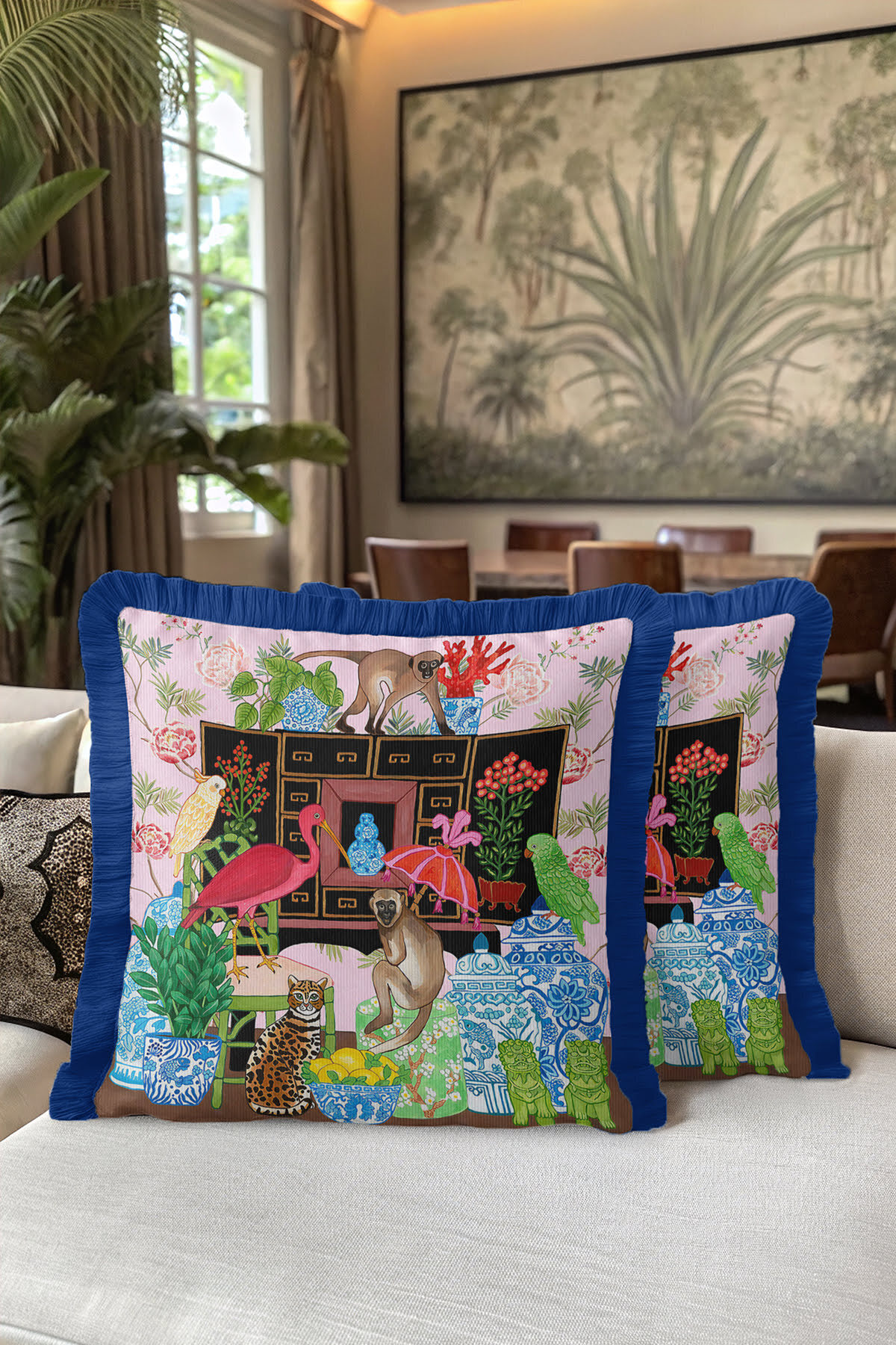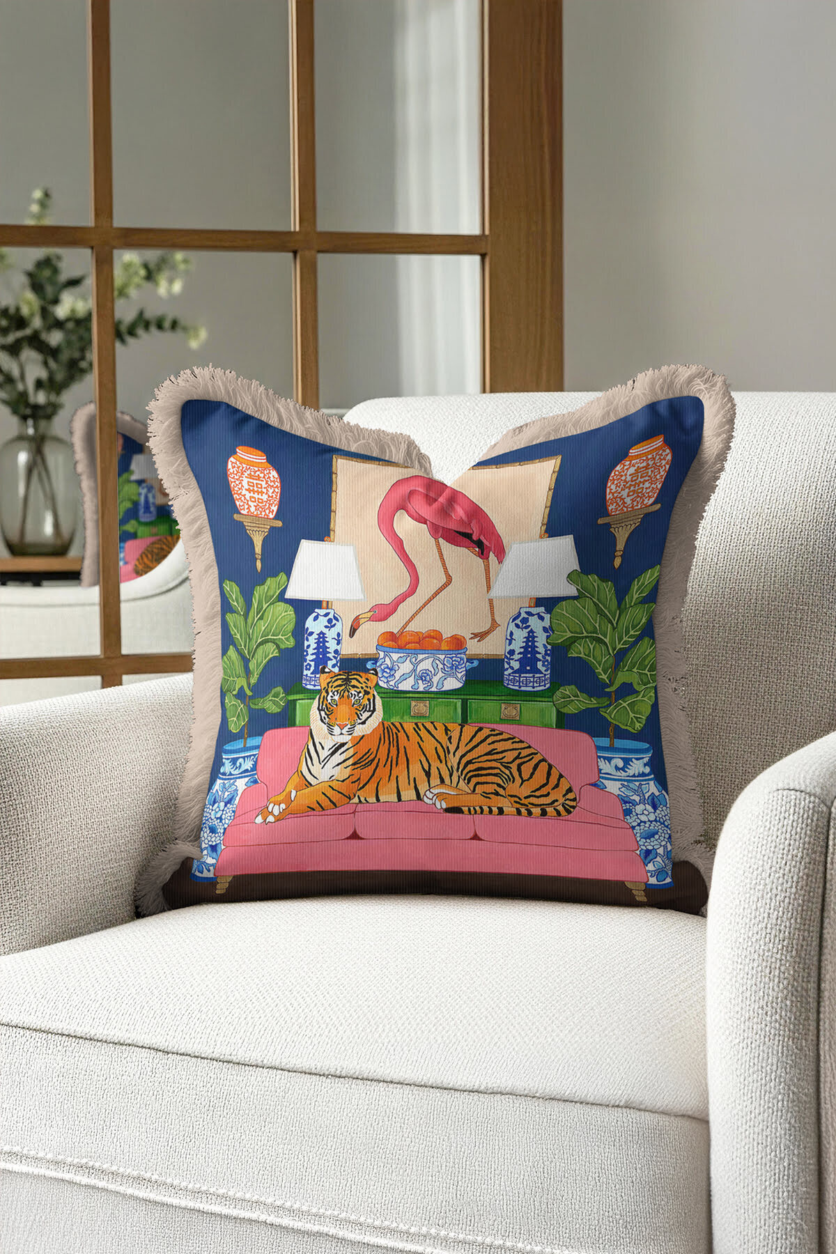 Egzotik Hayvanlar Temalı Saçaklı Yastık Kılıfı-Tropikal Çiçekler Lacivert Püsküllü Kırlent Kılıfı Egzotik Hayvanlar Temalı Saçaklı Yastık Kılıfı-Tropikal Çiçekler Lacivert Püsküllü Kırlent Kılıfı GRS21 40 x 40
