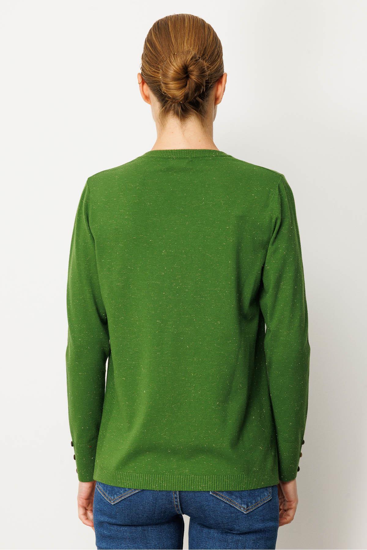 Kadın V Yaka Kolları Düğmeli Simli Bluz K.Yosun Kadın V Yaka Kolları Düğmeli Simli Bluz K.Yosun 23393 2XL