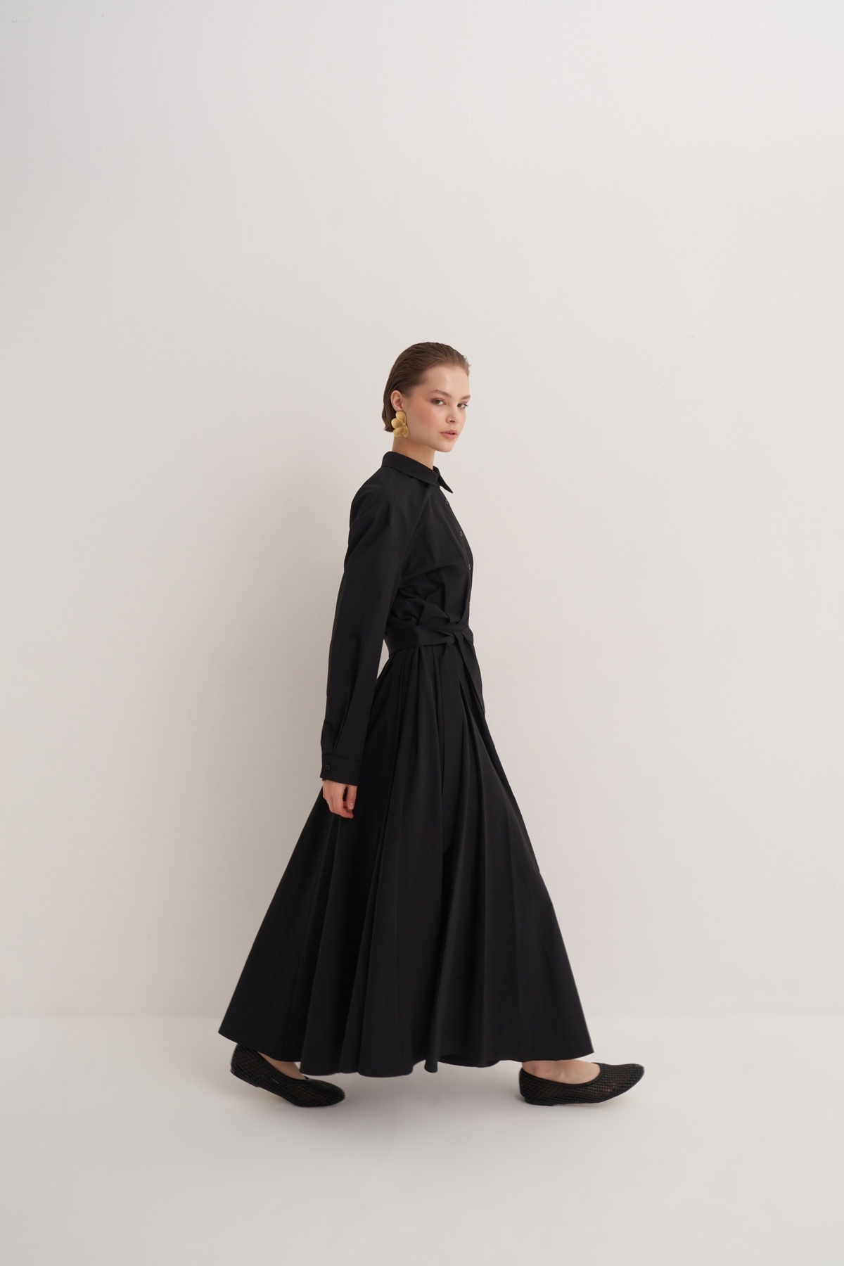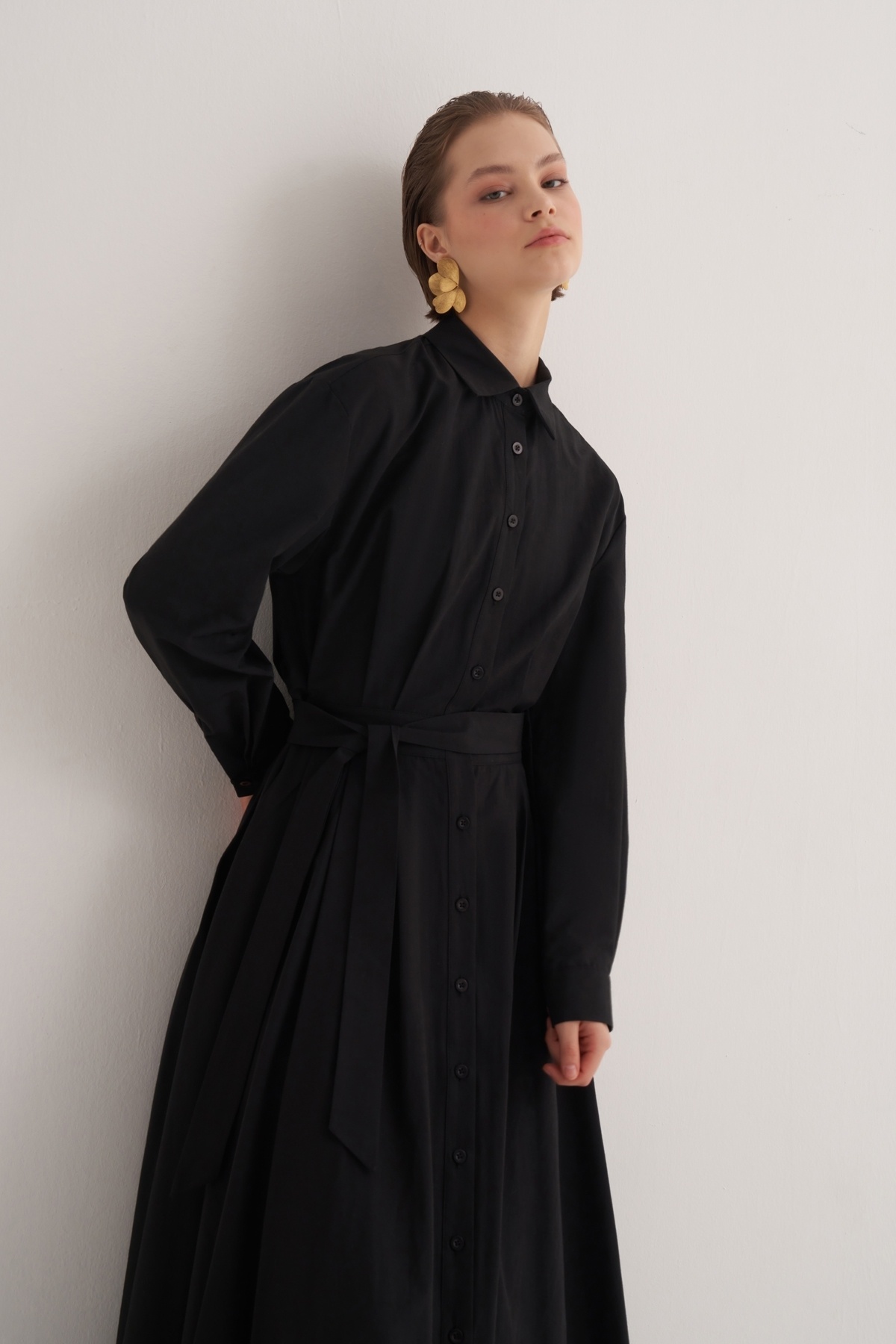 Kadın Poplin Pileli Gömlek Elbise Siyah Kadın Poplin Pileli Gömlek Elbise Siyah 25-SPR-POP-507-EBU-BHR L
