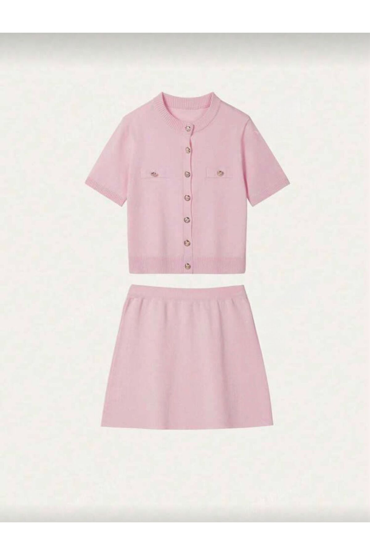 Kadın Pembe Düğme Detaylı Triko Etekli Takım Kadın Pembe Düğme Detaylı Triko Etekli Takım MS1001TK L/XL