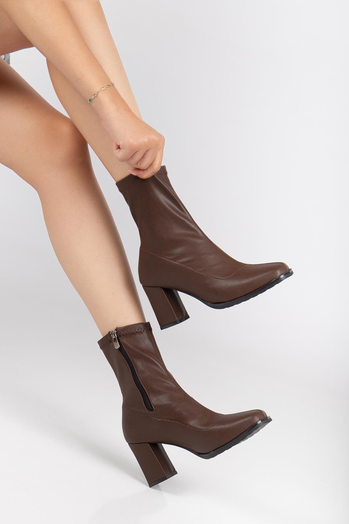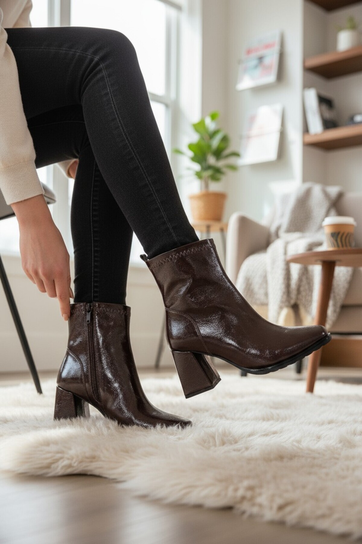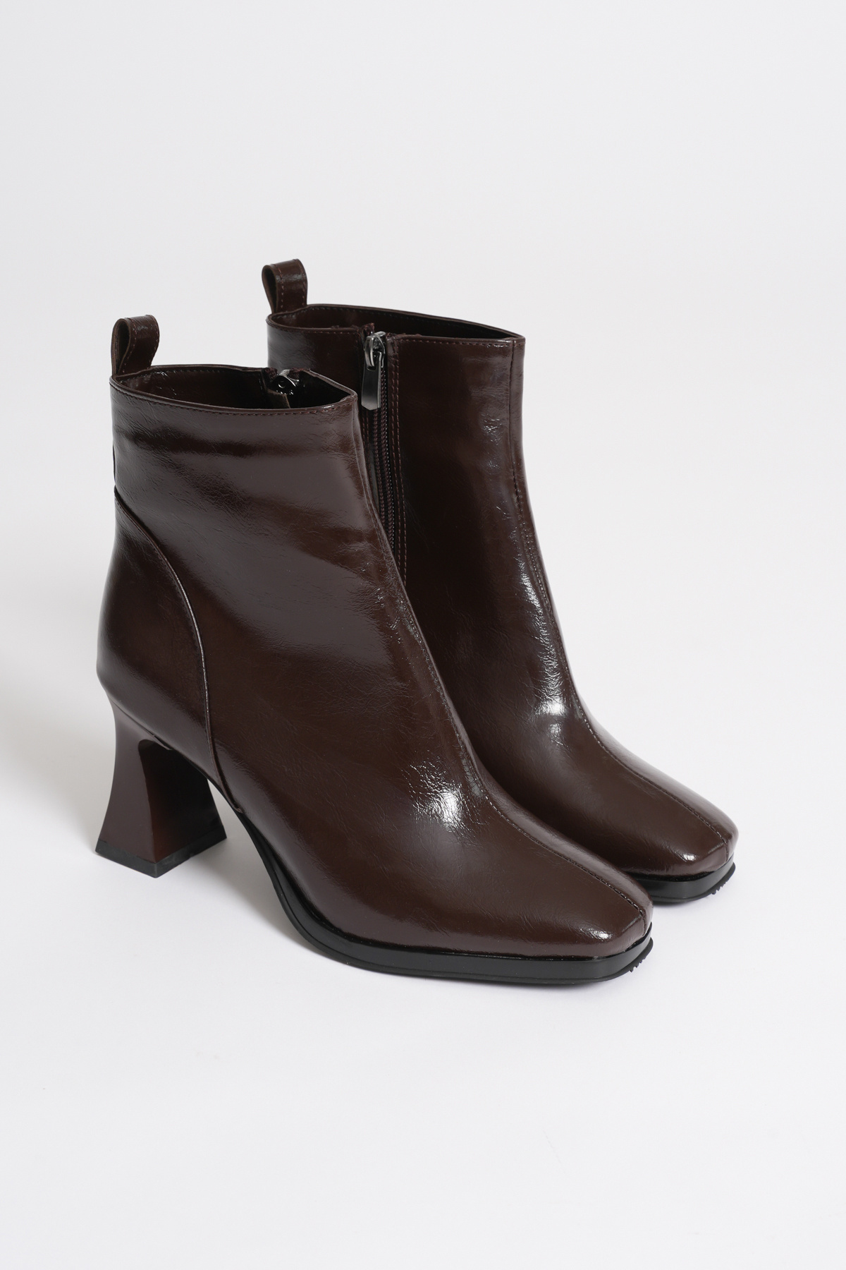 Meylin Acı Kahve Mat Rugan Küt Burunlu Kadın Bot Meylin Acı Kahve Mat Rugan Küt Burunlu Kadın Bot TPK0023 40