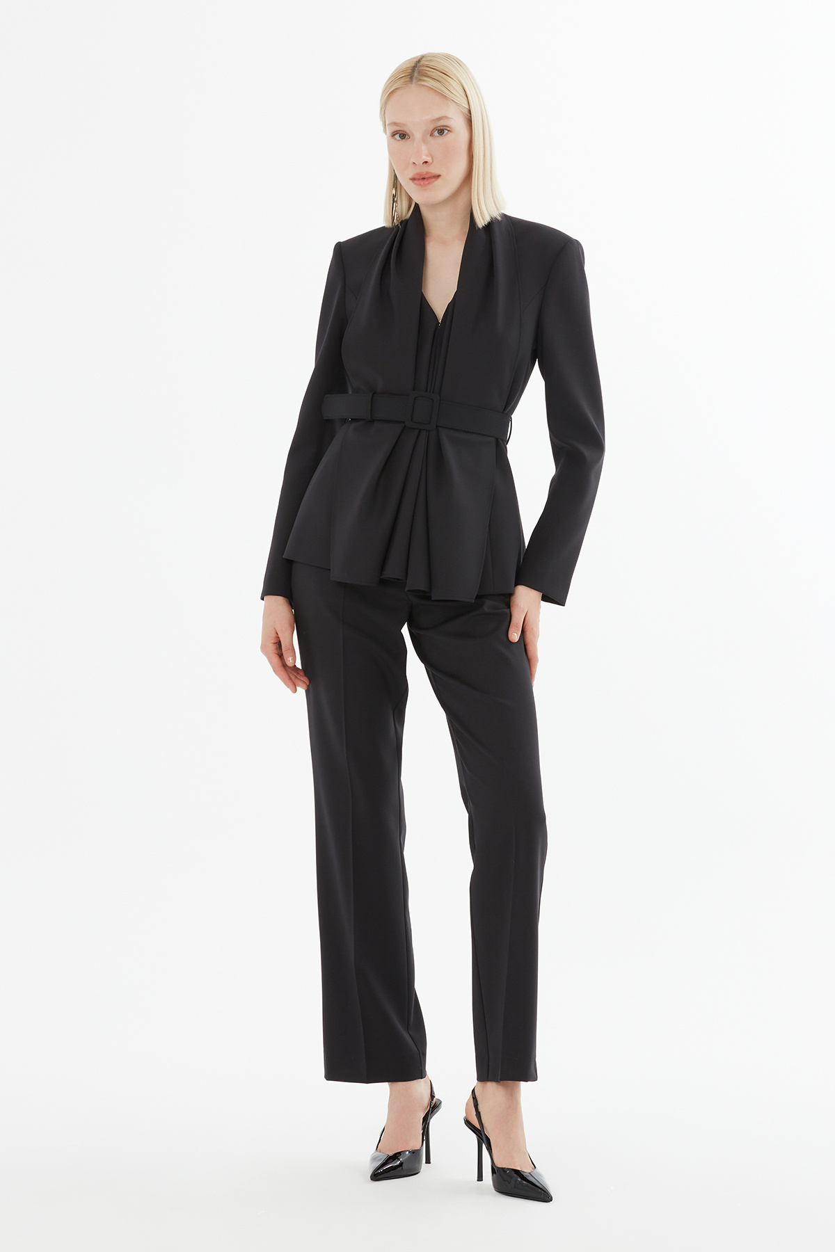 Şal Yakalı Düğme Kapamalı Pantolonlu Takım Şal Yakalı Düğme Kapamalı Pantolonlu Takım M5KMTKM322 42