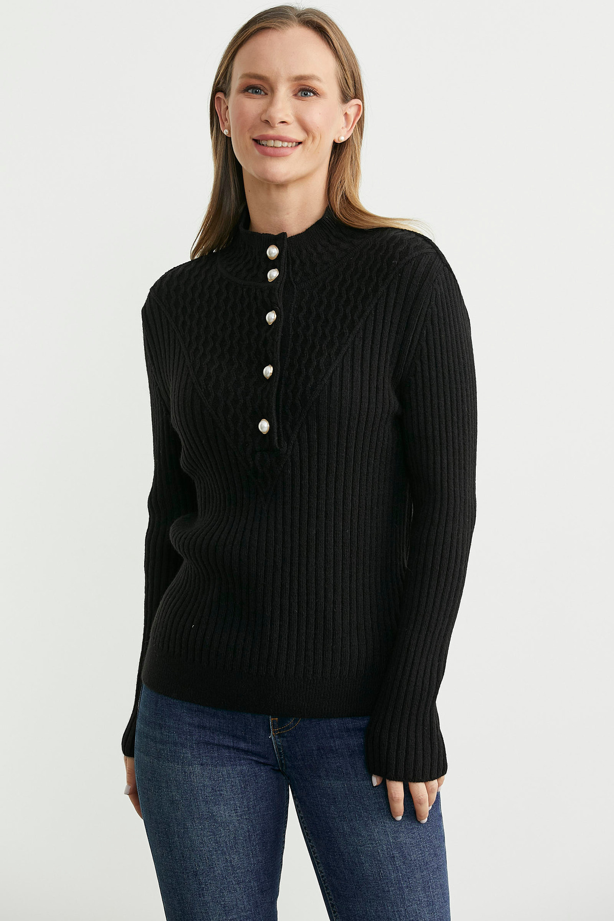 Önü Düğmeli Dik Yaka Triko Kazak - Kamel Önü Düğmeli Dik Yaka Triko Kazak - Kamel 25K2115-32611.0001 Standart