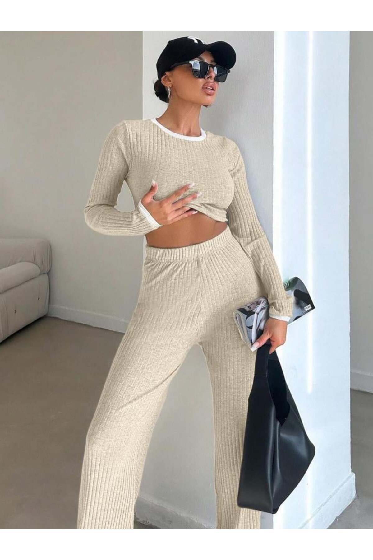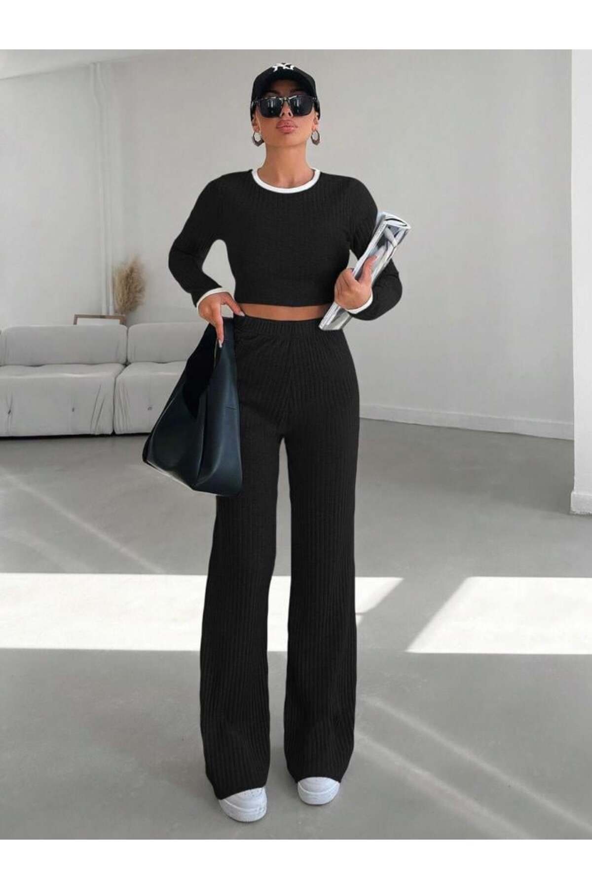 Yaka ve Kol Garnili Bol Paça Pantolon Fitilli Kaşkorse Kadın Takım Yaka ve Kol Garnili Bol Paça Pantolon Fitilli Kaşkorse Kadın Takım 1198kaşkorsetakım L