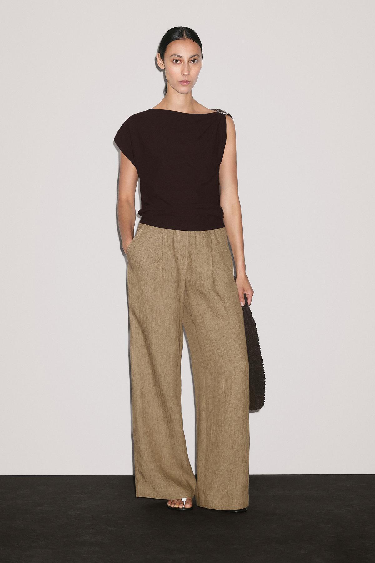 Omuz aplikeli kolsuz drapeli top Omuz aplikeli kolsuz drapeli top 00110779206244577 XL