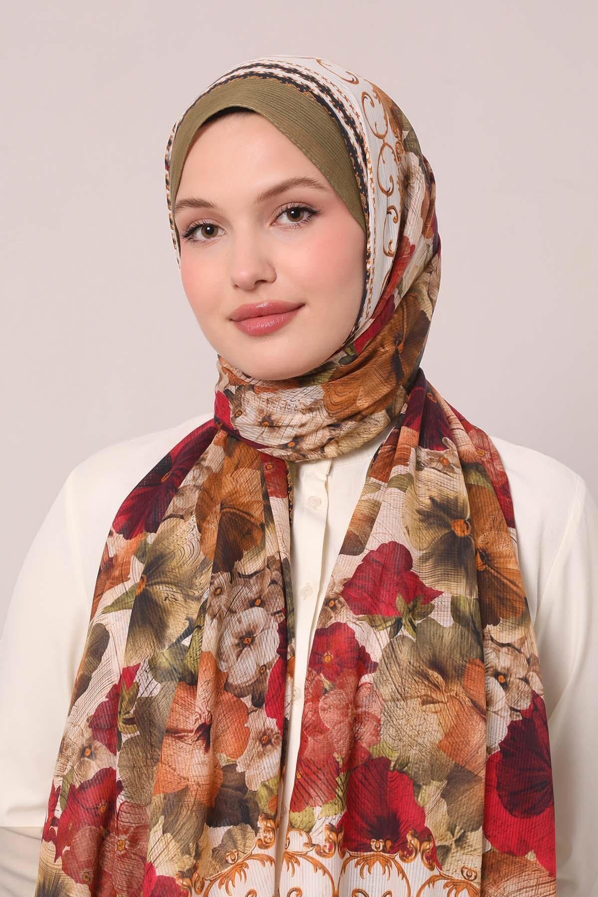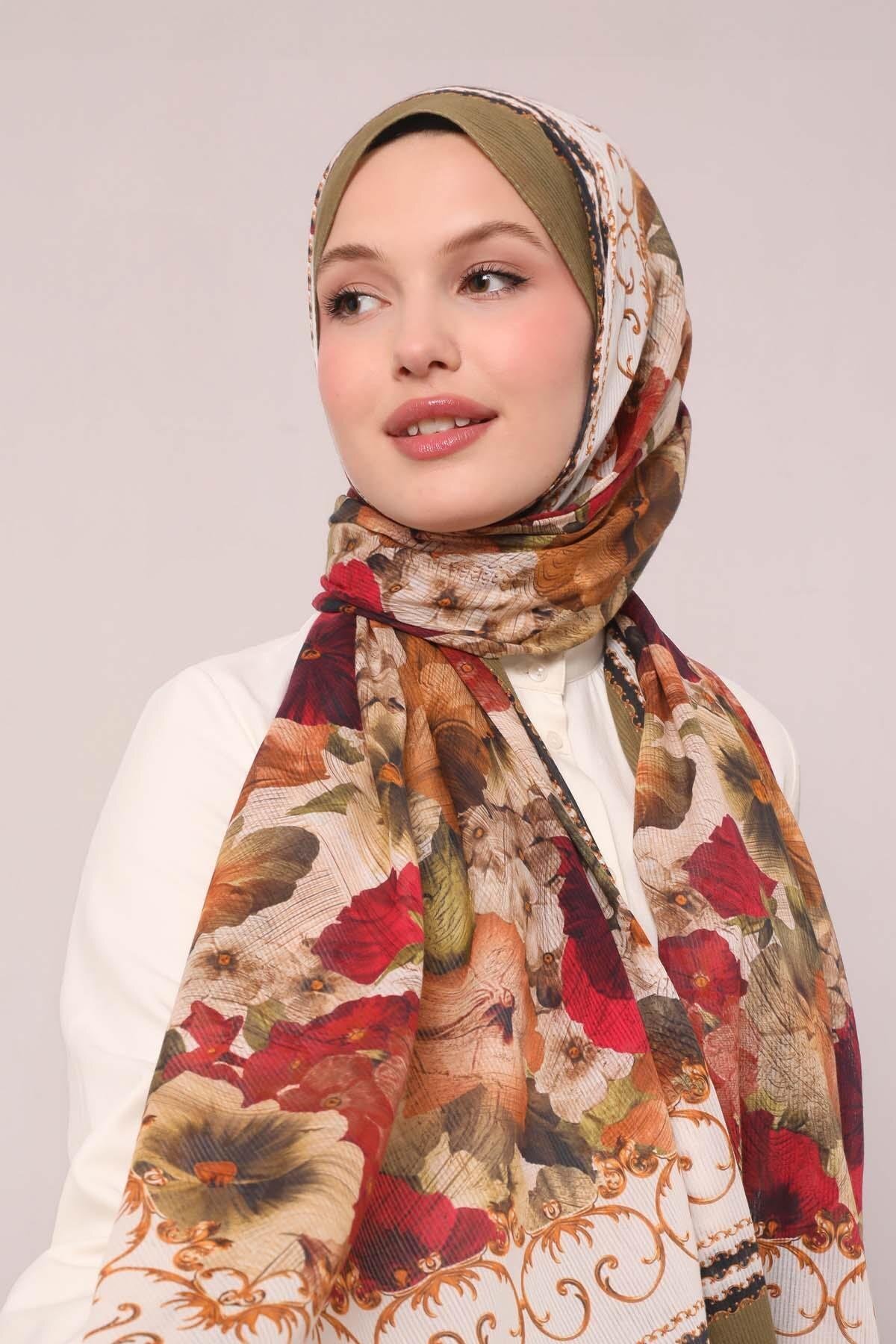 Haki Varak Desen Pamuk Şal Haki Varak Desen Pamuk Şal LVD.PME.0029 75 x 195