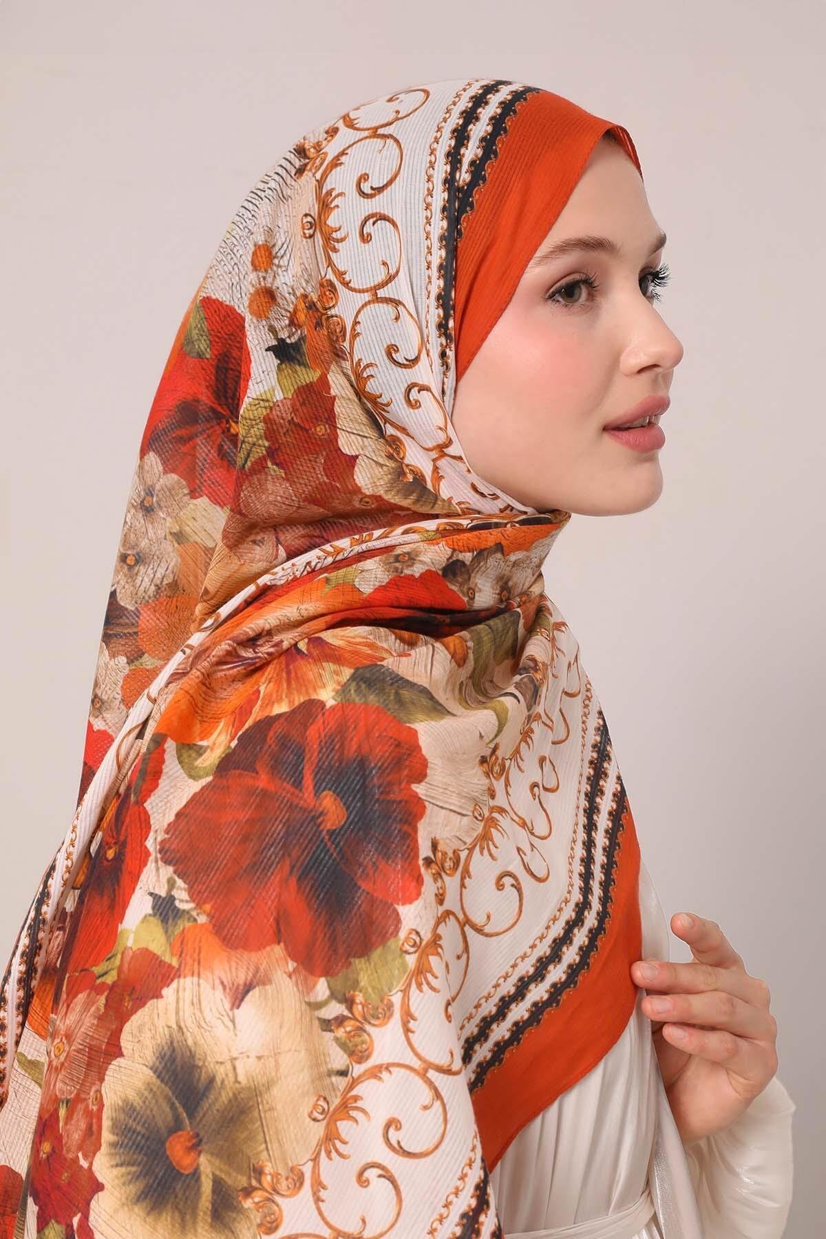 Turuncu Varak Desen Pamuk Şal Turuncu Varak Desen Pamuk Şal LVD.PME.0029 75 x 195
