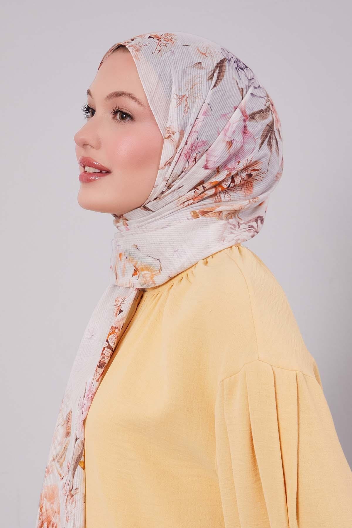 Bej Güllü Desen Pamuk Şal Bej Güllü Desen Pamuk Şal LVD.PMK.0211 75 x 195