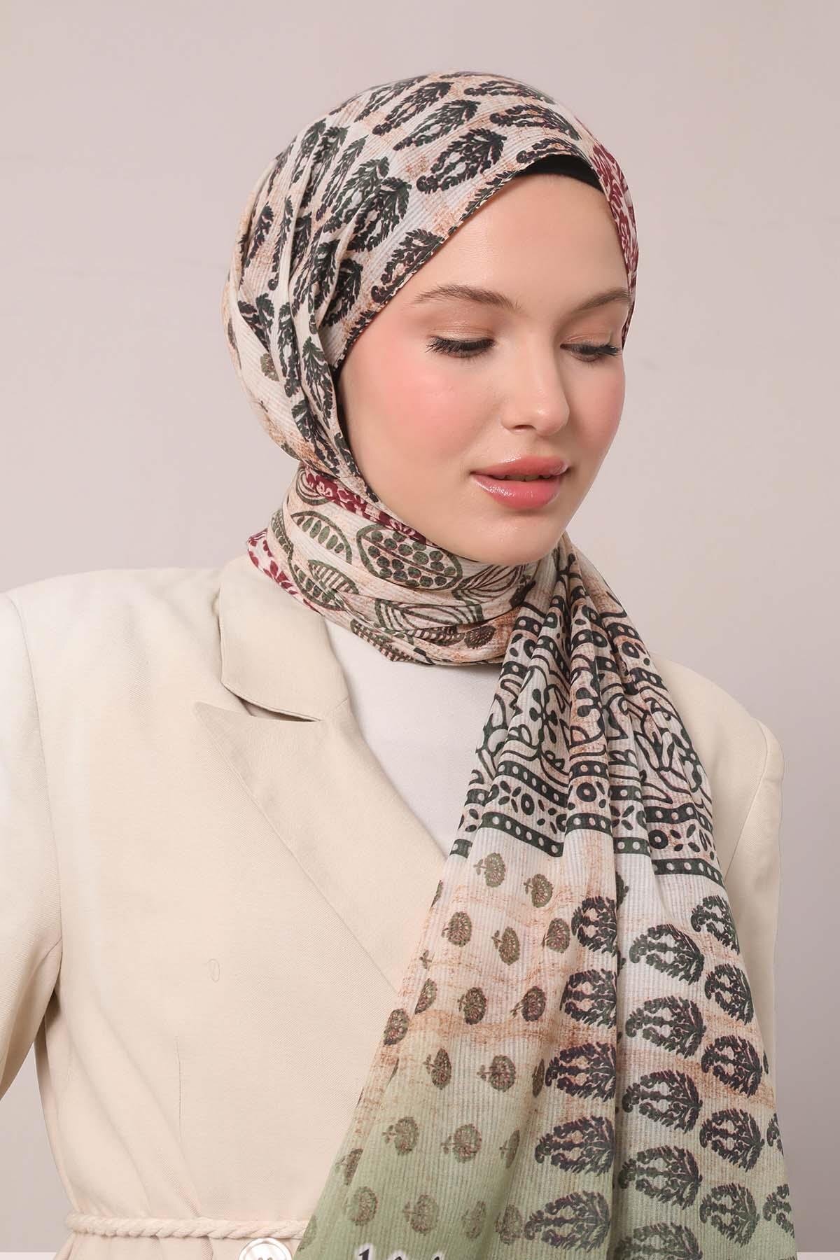 Yeşil Yaprak Desen Pamuk Şal Yeşil Yaprak Desen Pamuk Şal LVD.PMK.0222 75 x 195