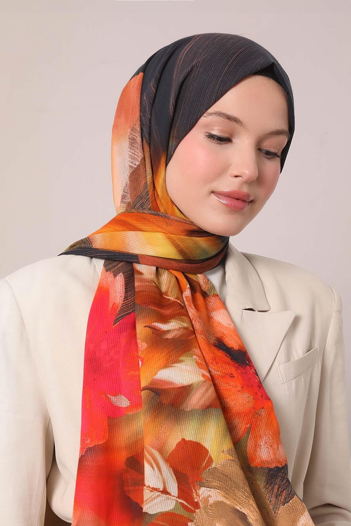 Somon Çiçekli Çizgili Pamuk Şal Somon Çiçekli Çizgili Pamuk Şal LVD.PMK.0199 75 x 195