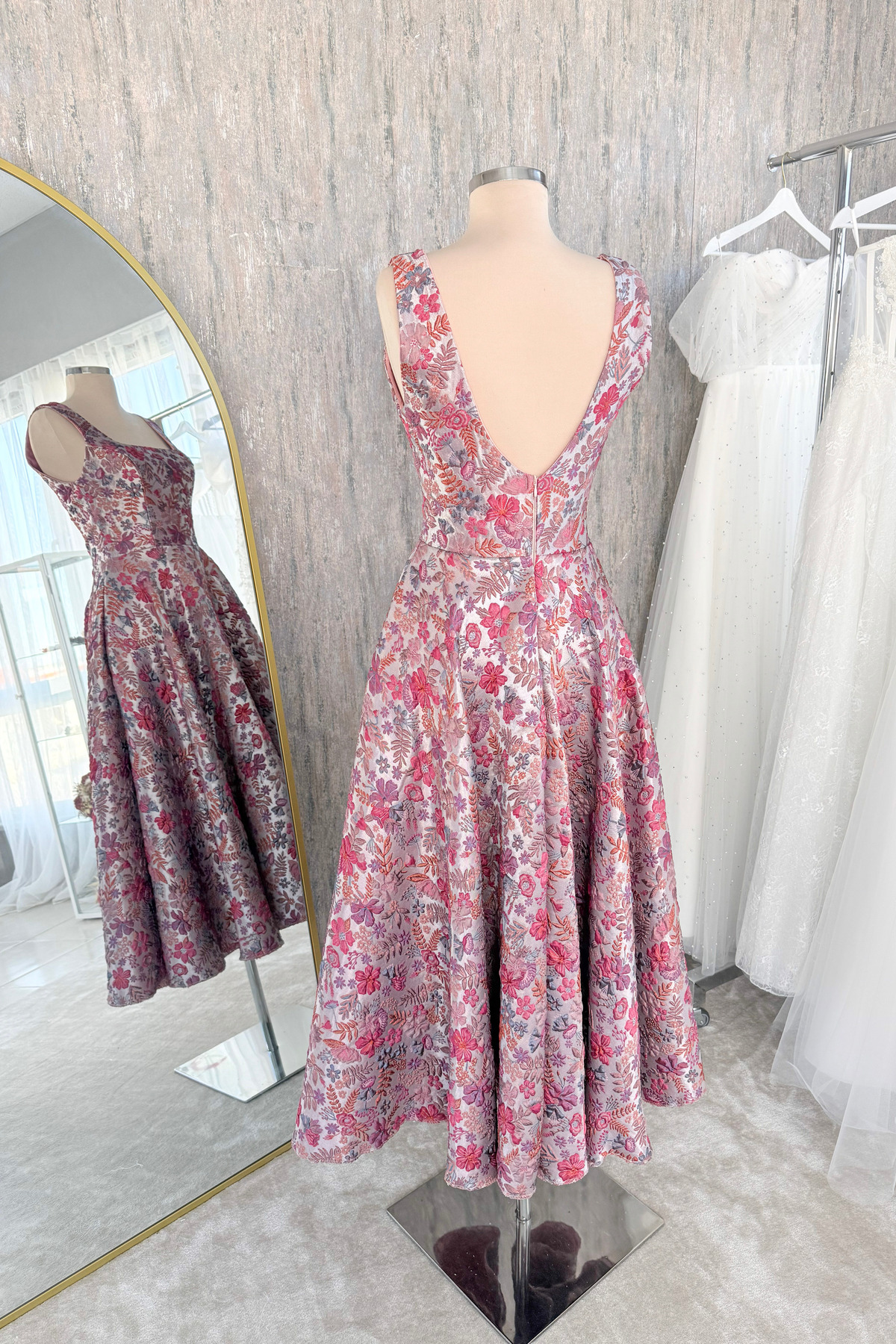 Kare Yaka Brokar Midi Boy Abiye Ve Gece Elbisesi Kare Yaka Brokar Midi Boy Abiye Ve Gece Elbisesi LM190925BM01 44