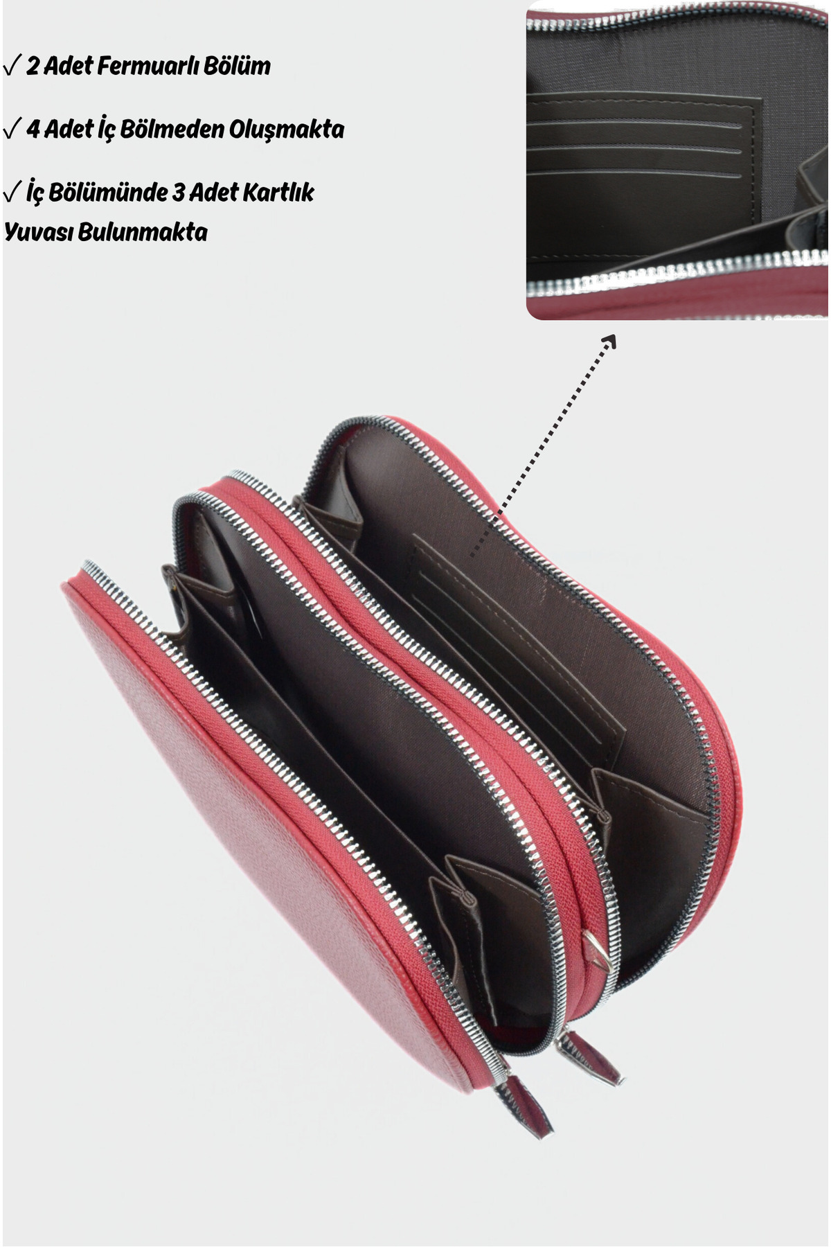 3425 Hakiki Deri Fermuarlı Mini Cüzdanlı Kalp Model İthal Kadın El, Kol ve Omuz Çantası Kırmızı 3425 Hakiki Deri Fermuarlı Mini Cüzdanlı Kalp Model İthal Kadın El, Kol ve Omuz Çantası Kırmızı Standart