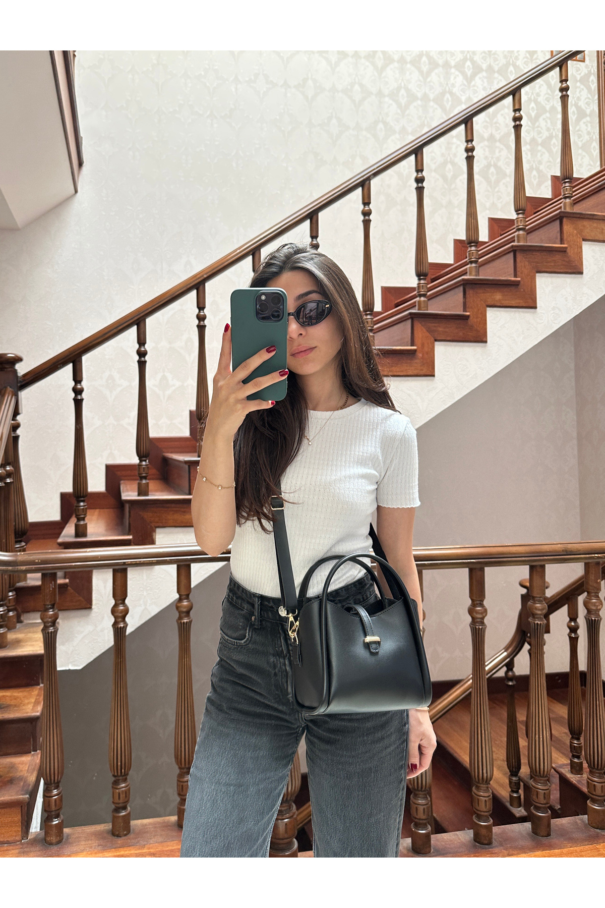 Kadın Siyah Krem Üç Bölmeli Tasarım Çıkarılabilir Makyaj Çantalı 2'li El Ve Omuz Çantası Roma Kadın Siyah Krem Üç Bölmeli Tasarım Çıkarılabilir Makyaj Çantalı 2'li El Ve Omuz Çantası Roma 2LIROMA تک سایز