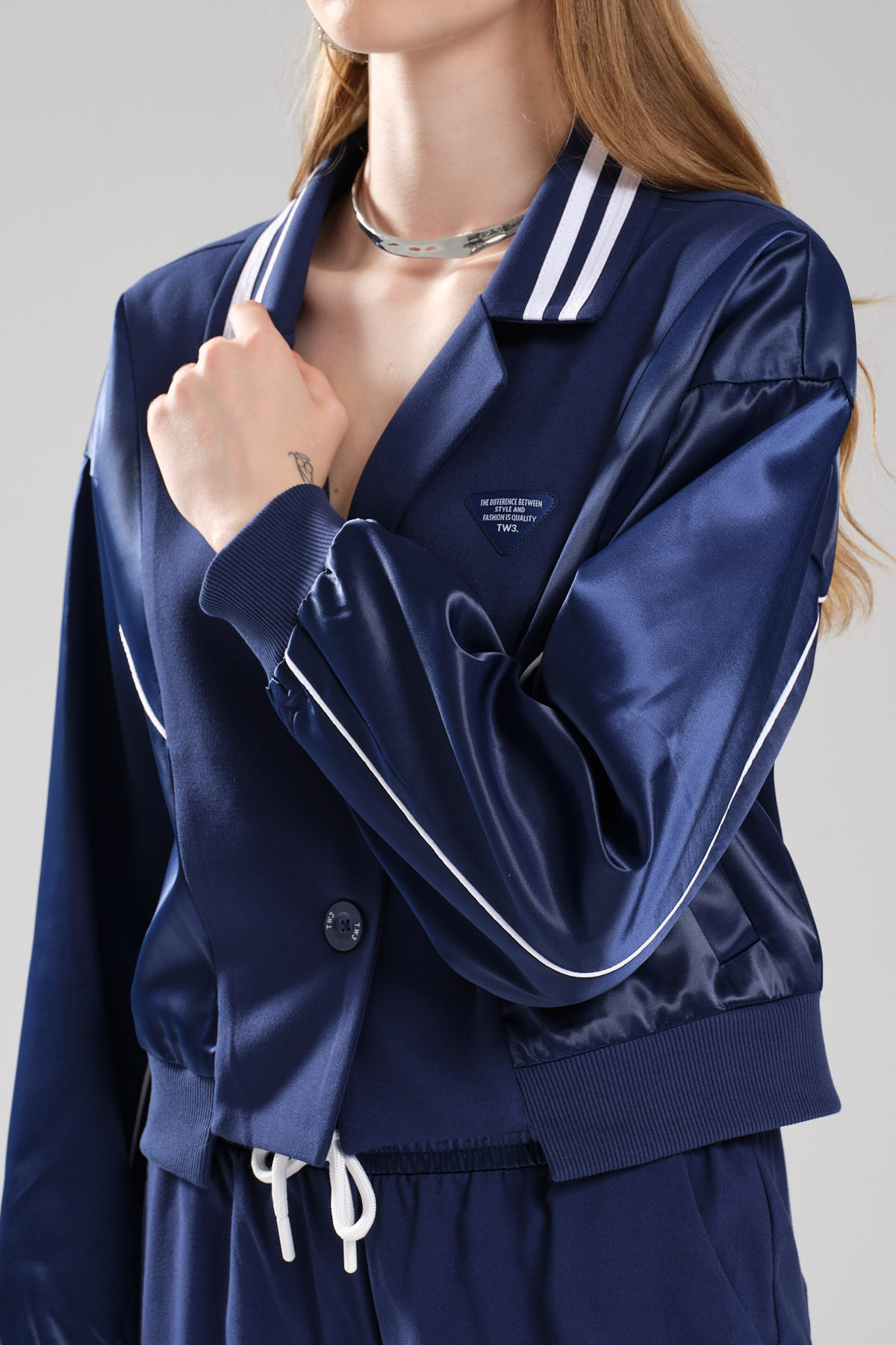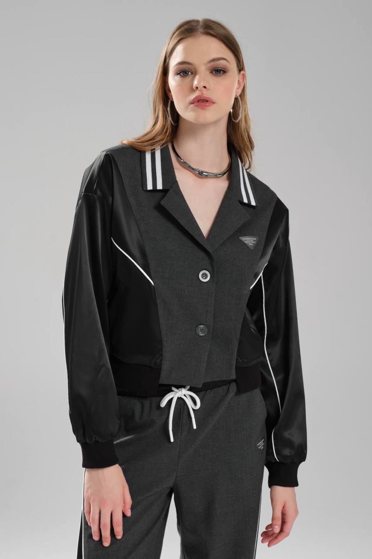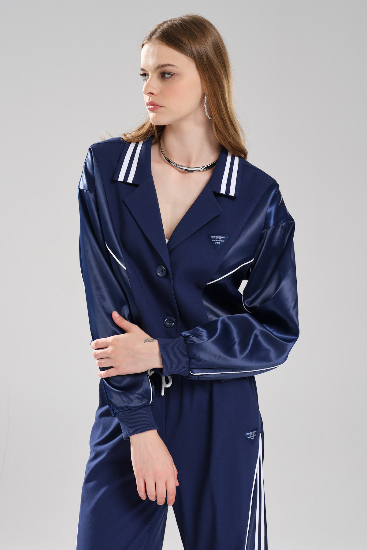 Kadın Şerit Detaylı Saten Kumaş Garnili Tasarım Blazer Ceket Kadın Şerit Detaylı Saten Kumaş Garnili Tasarım Blazer Ceket TW3-1674 L