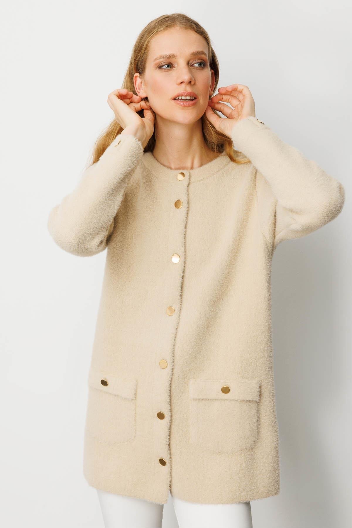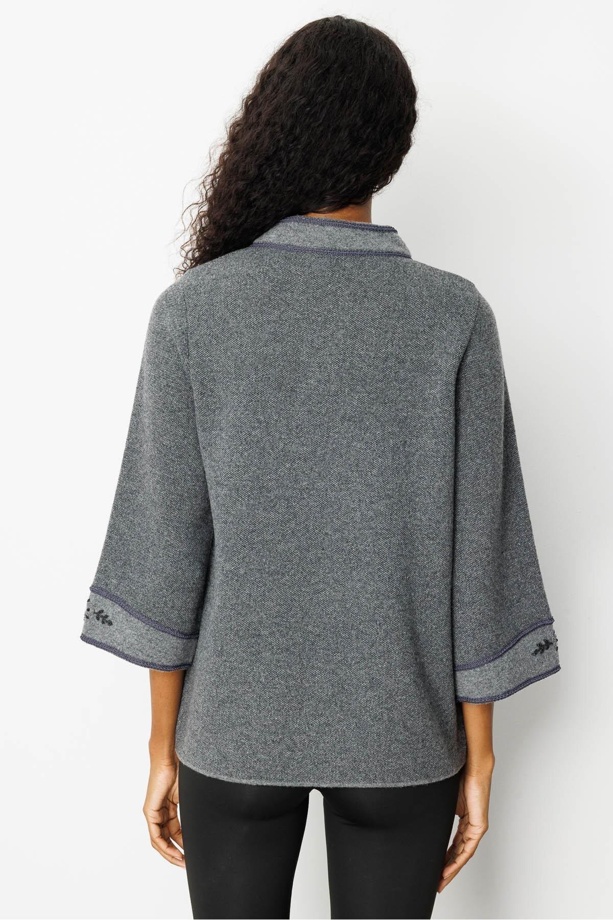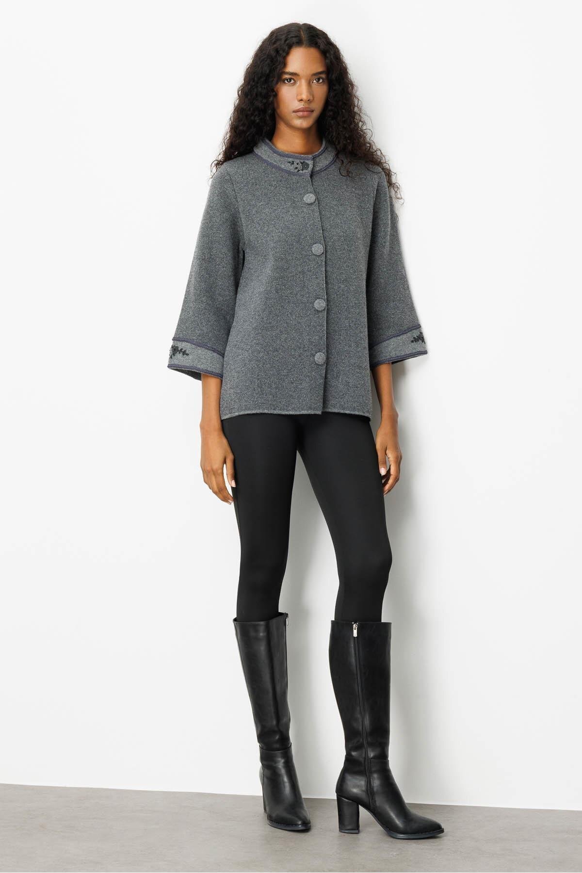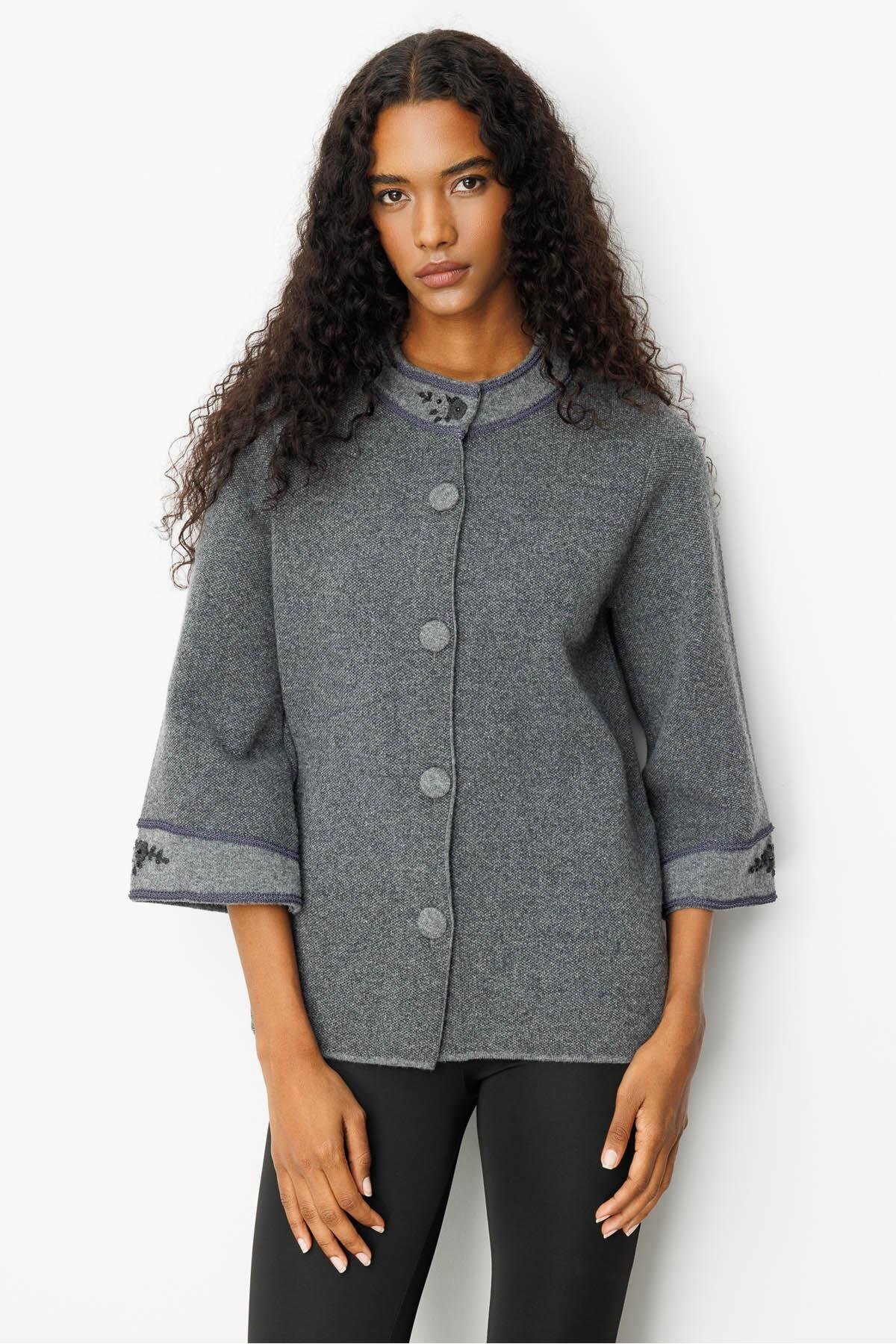 Kadın Dik Yaka Kolu ve Yakası Nakışlı Yün Ceket Füme Kadın Dik Yaka Kolu ve Yakası Nakışlı Yün Ceket Füme 25033 XL